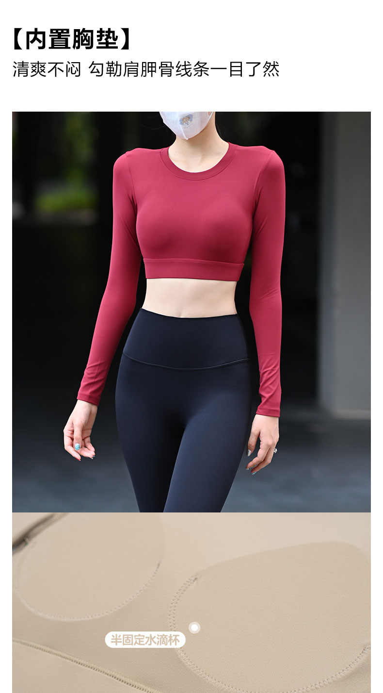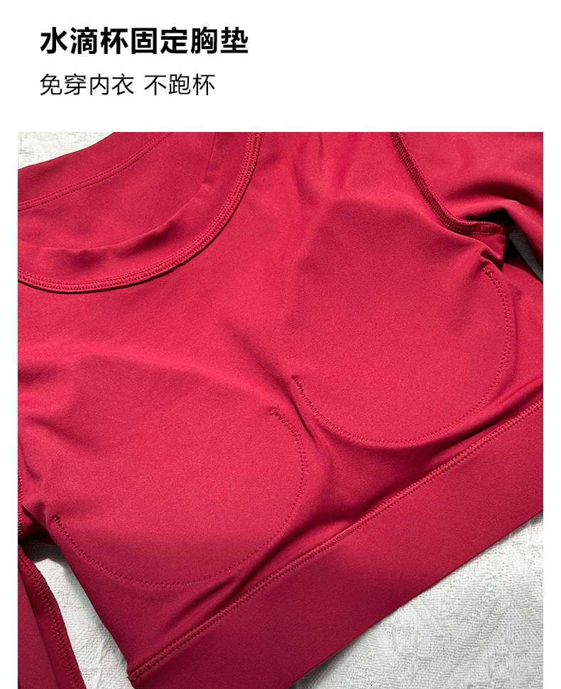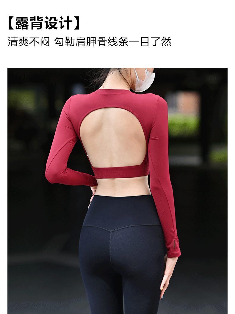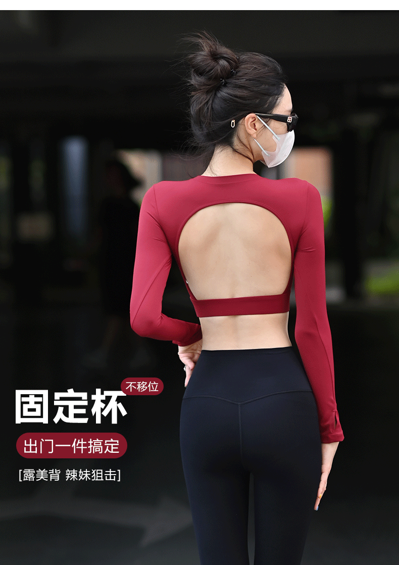Beemen秋季新款瑜伽服女长袖 固定一体杯镂空背部显气质下围紧承托好 健身瑜伽外穿两用