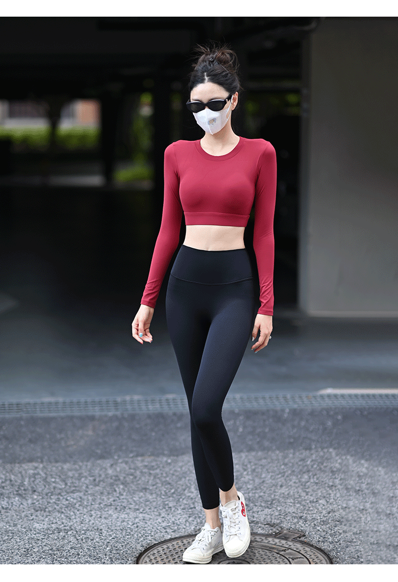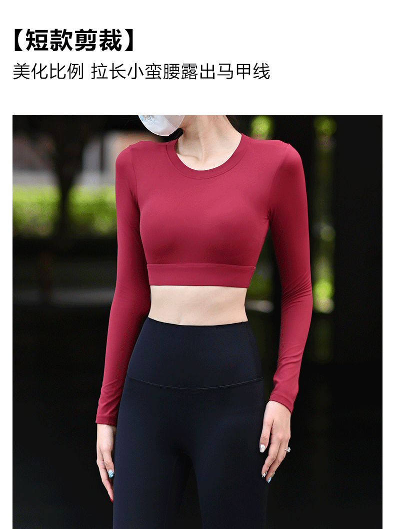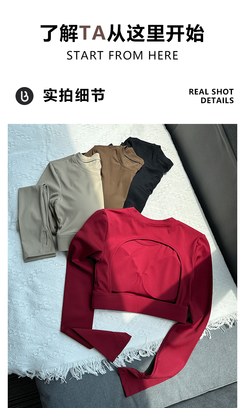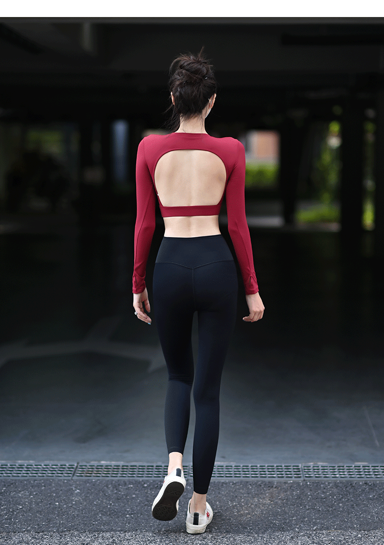 Beemen秋季新款瑜伽服女长袖 固定一体杯镂空背部显气质下围紧承托好 健身瑜伽外穿两用