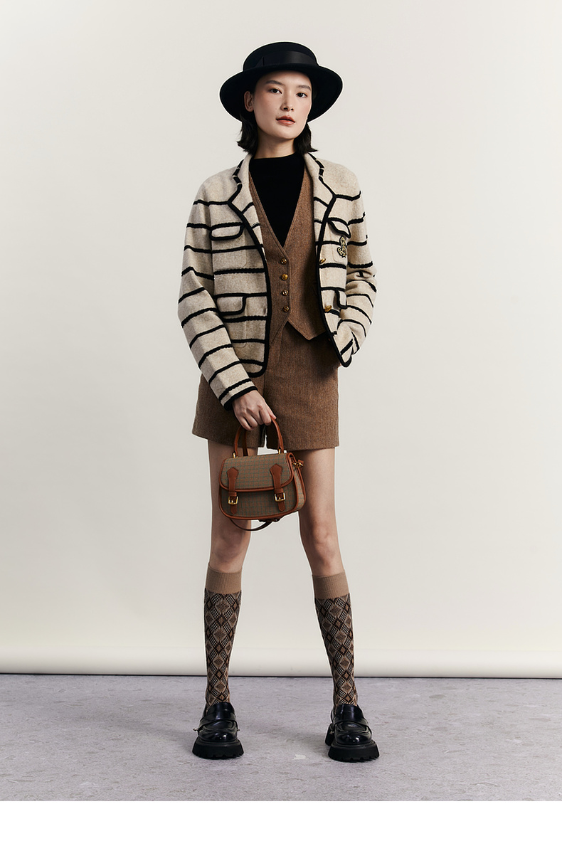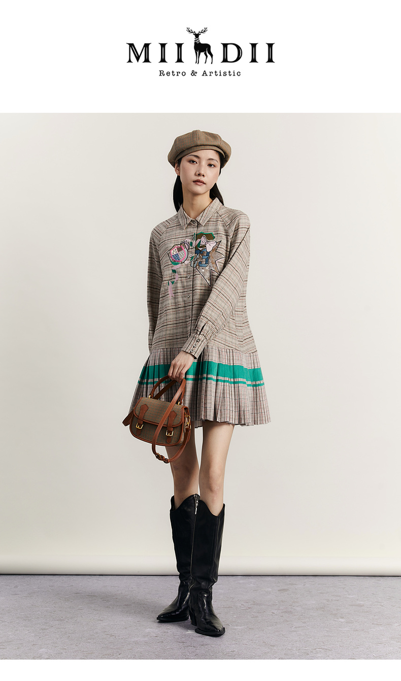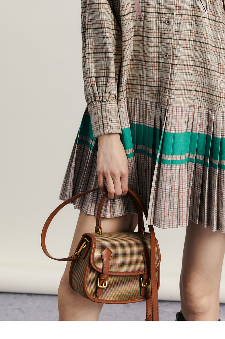 谜底格纹小包包女2023冬季新品复古文艺百搭拼接邮差包234MQ1973