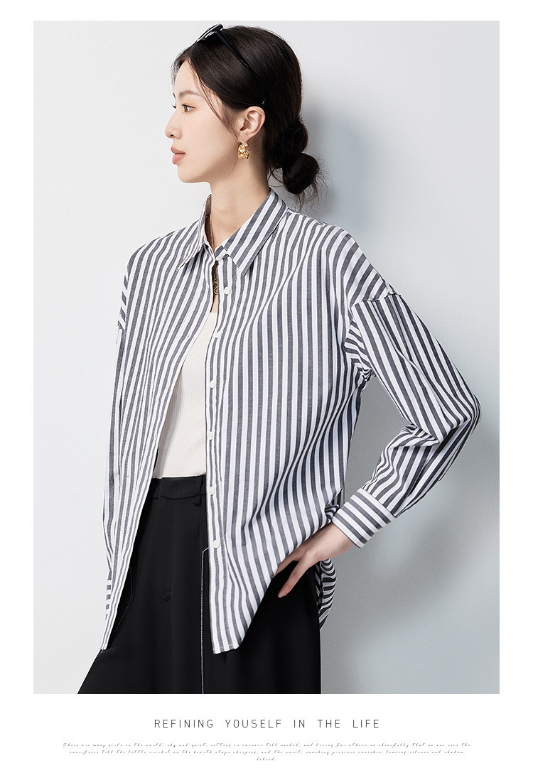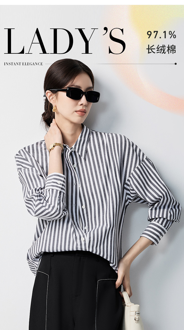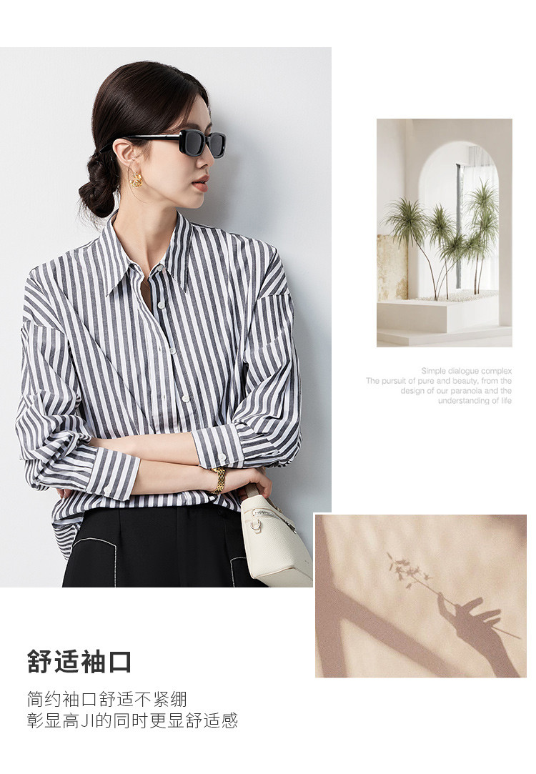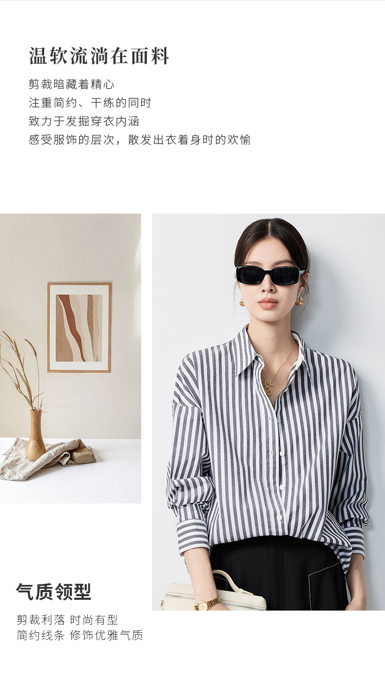 【含棉混纺&简约条纹】罗蒙女士长袖衬衫商务休闲可外搭开衫女