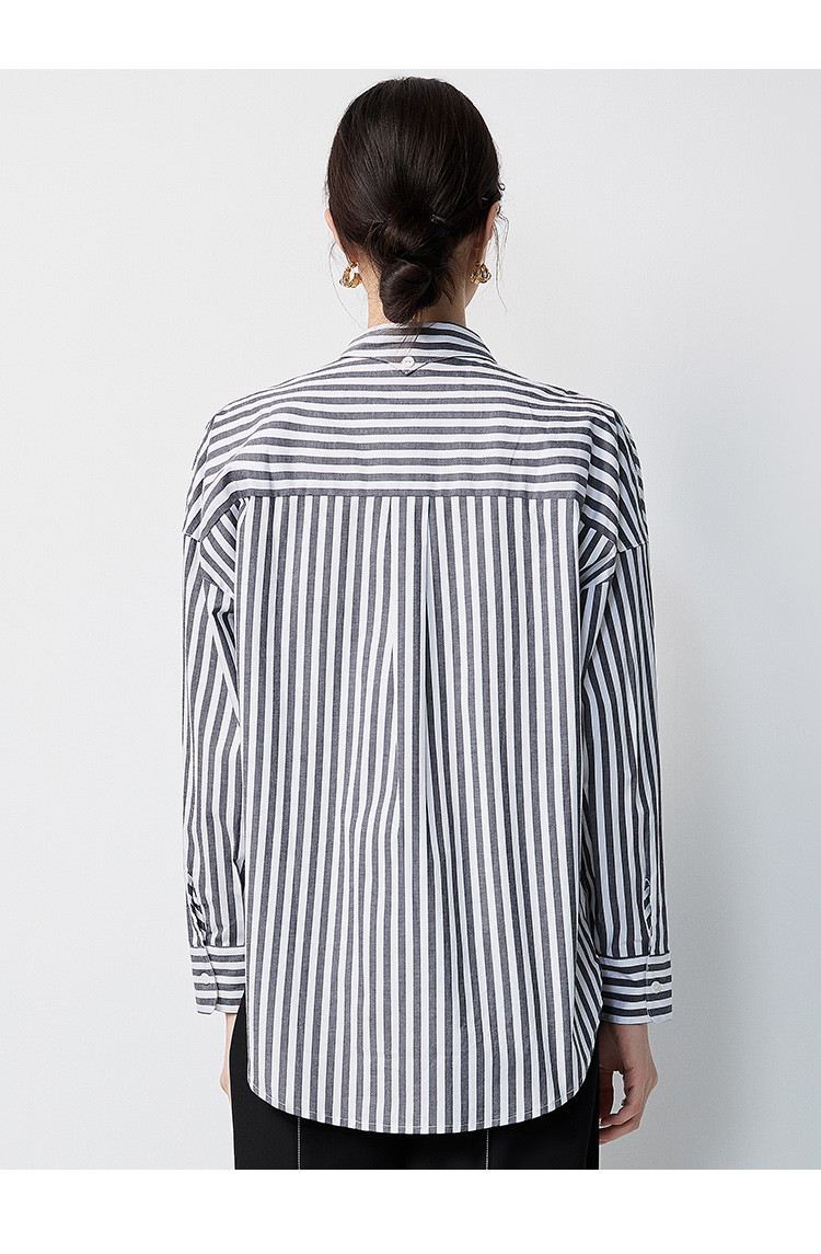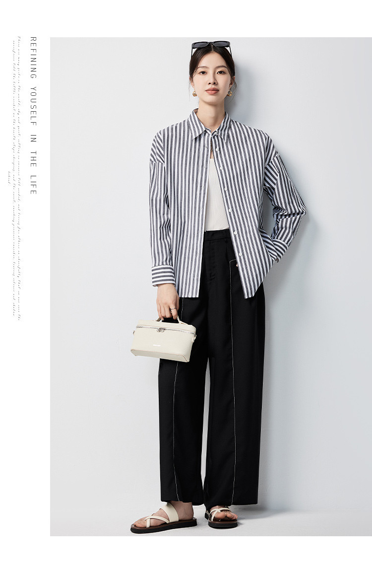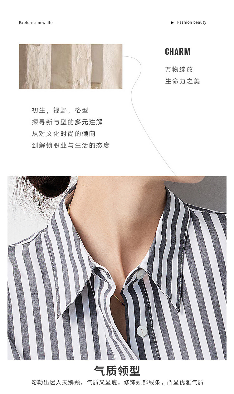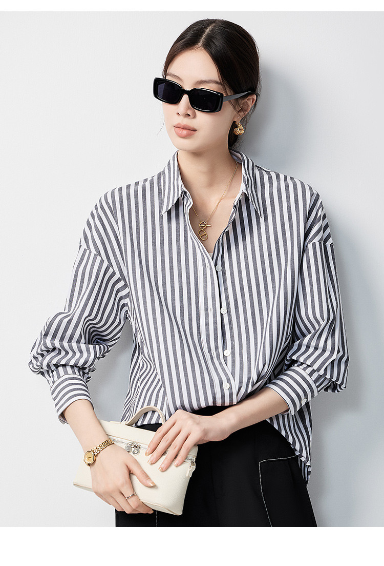 【含棉混纺&简约条纹】罗蒙女士长袖衬衫商务休闲可外搭开衫女
