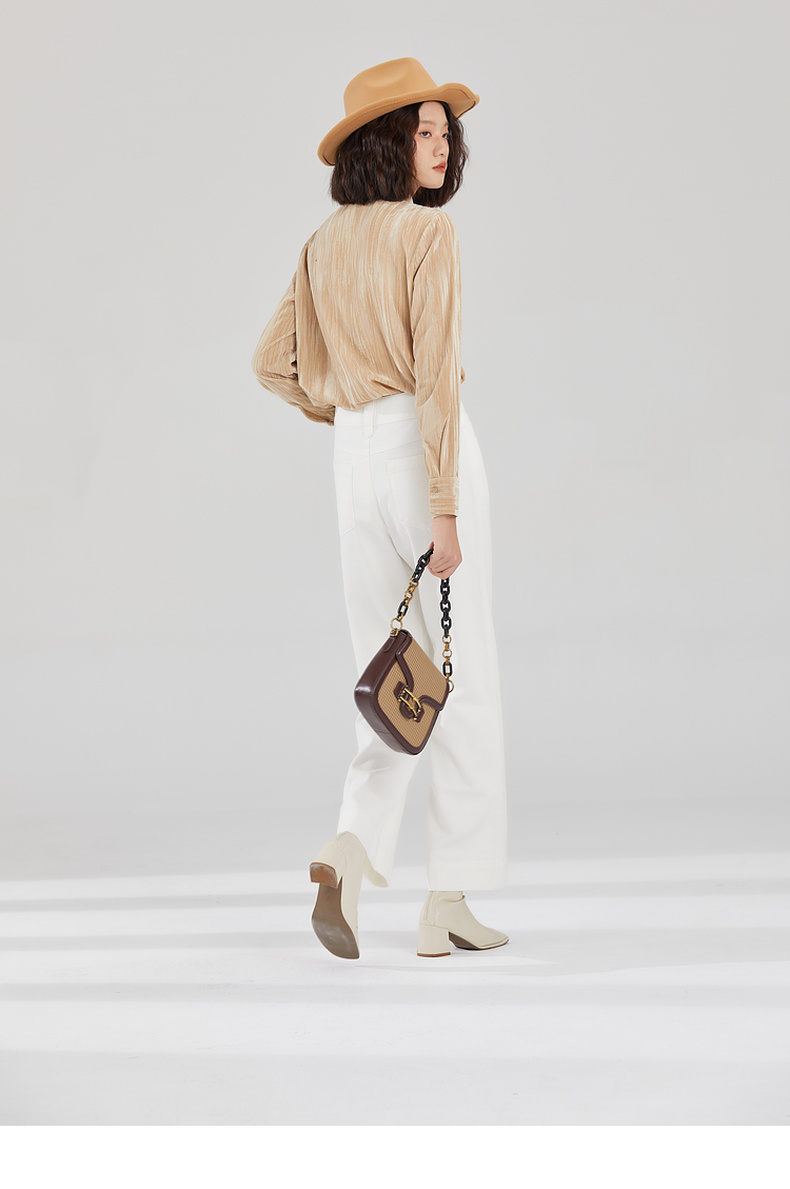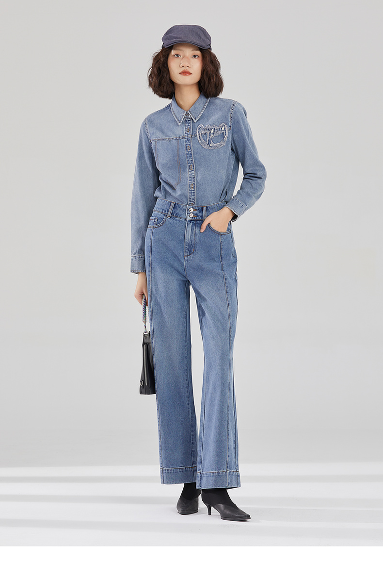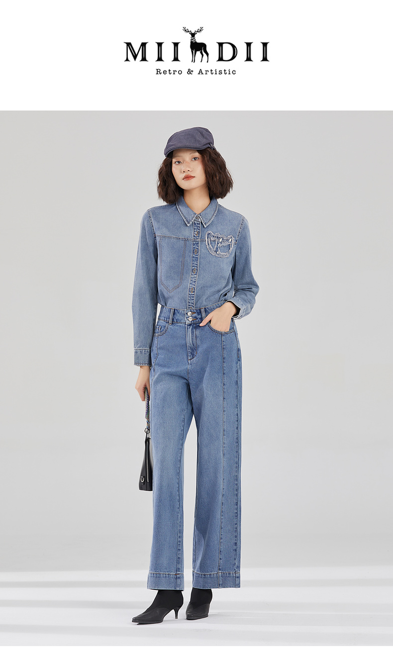 谜底牛仔裤长裤女2023秋款复古时髦高腰丹宁牛仔直筒裤239MK7405