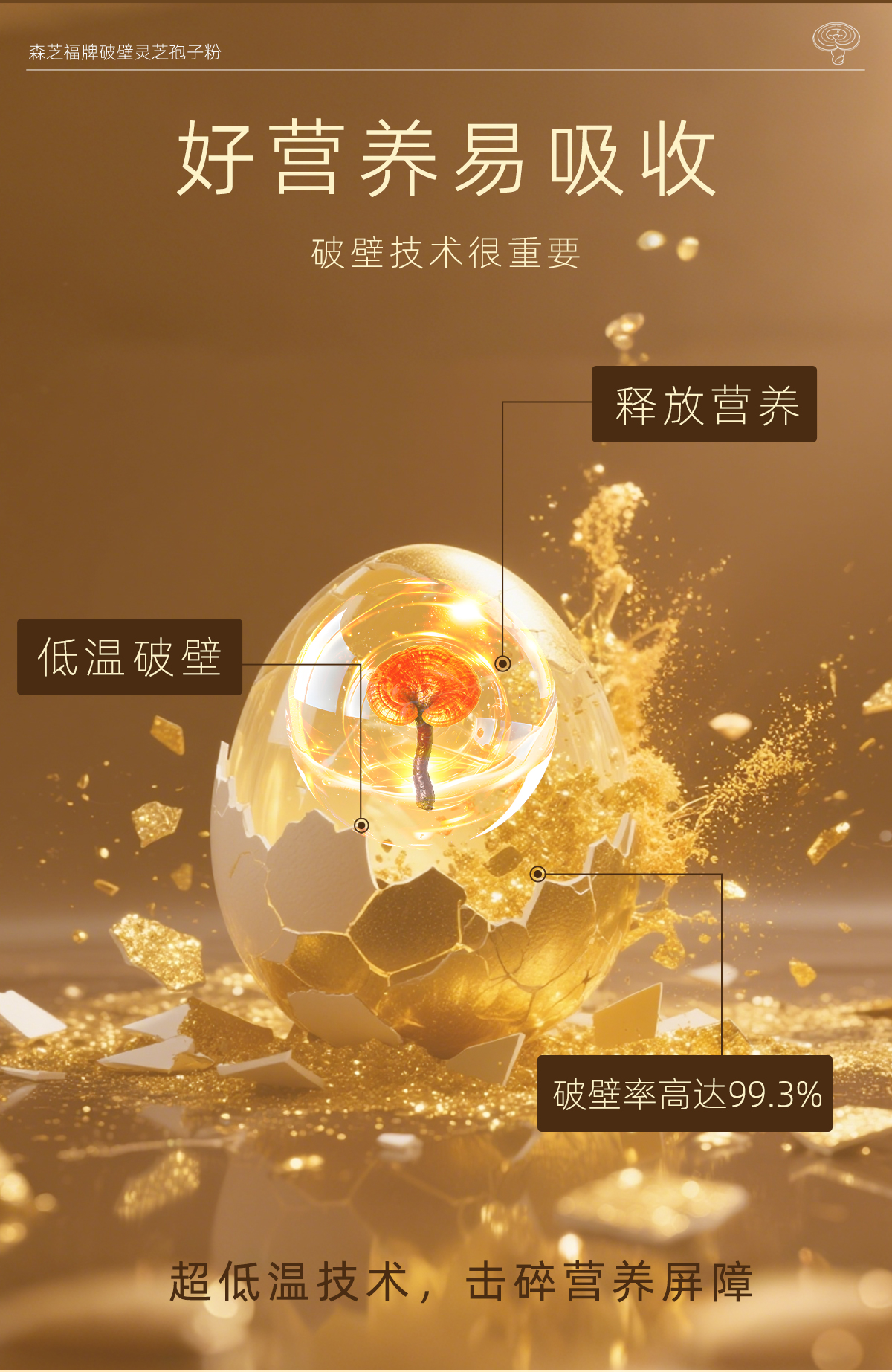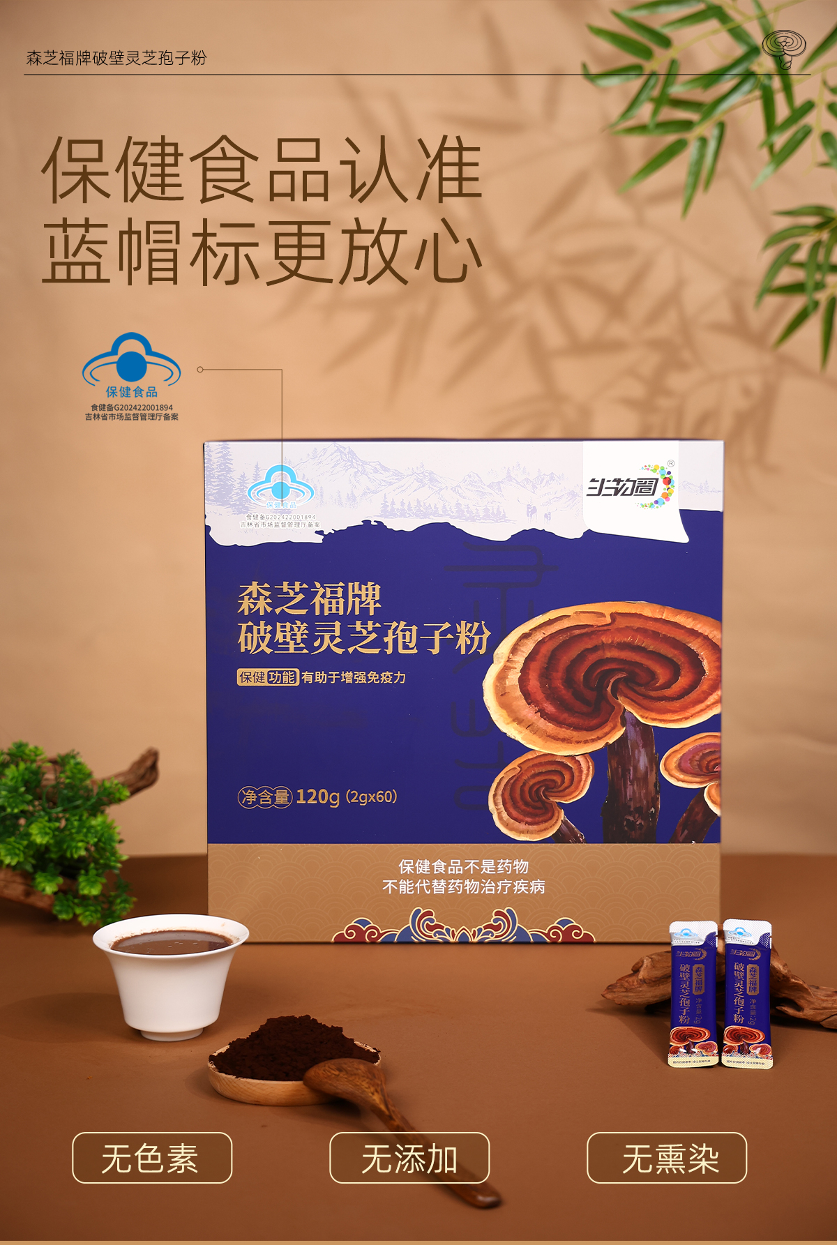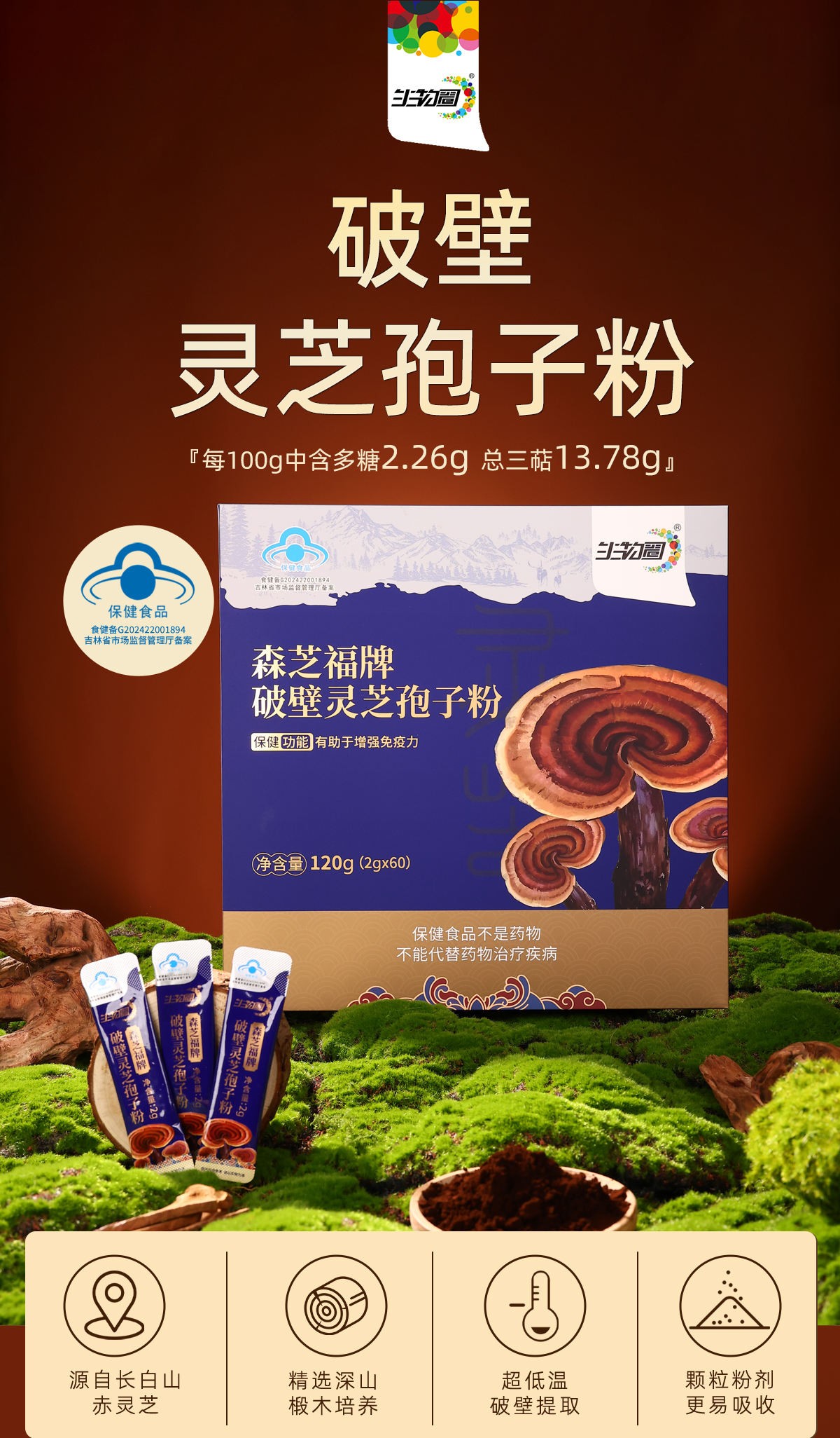 【生物圈】破壁灵芝孢子粉 高三萜 高多糖 提高免疫力 东北柞木段粉【分销直播】