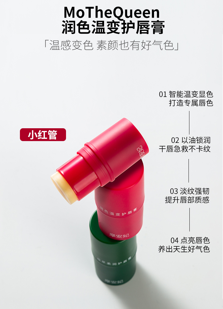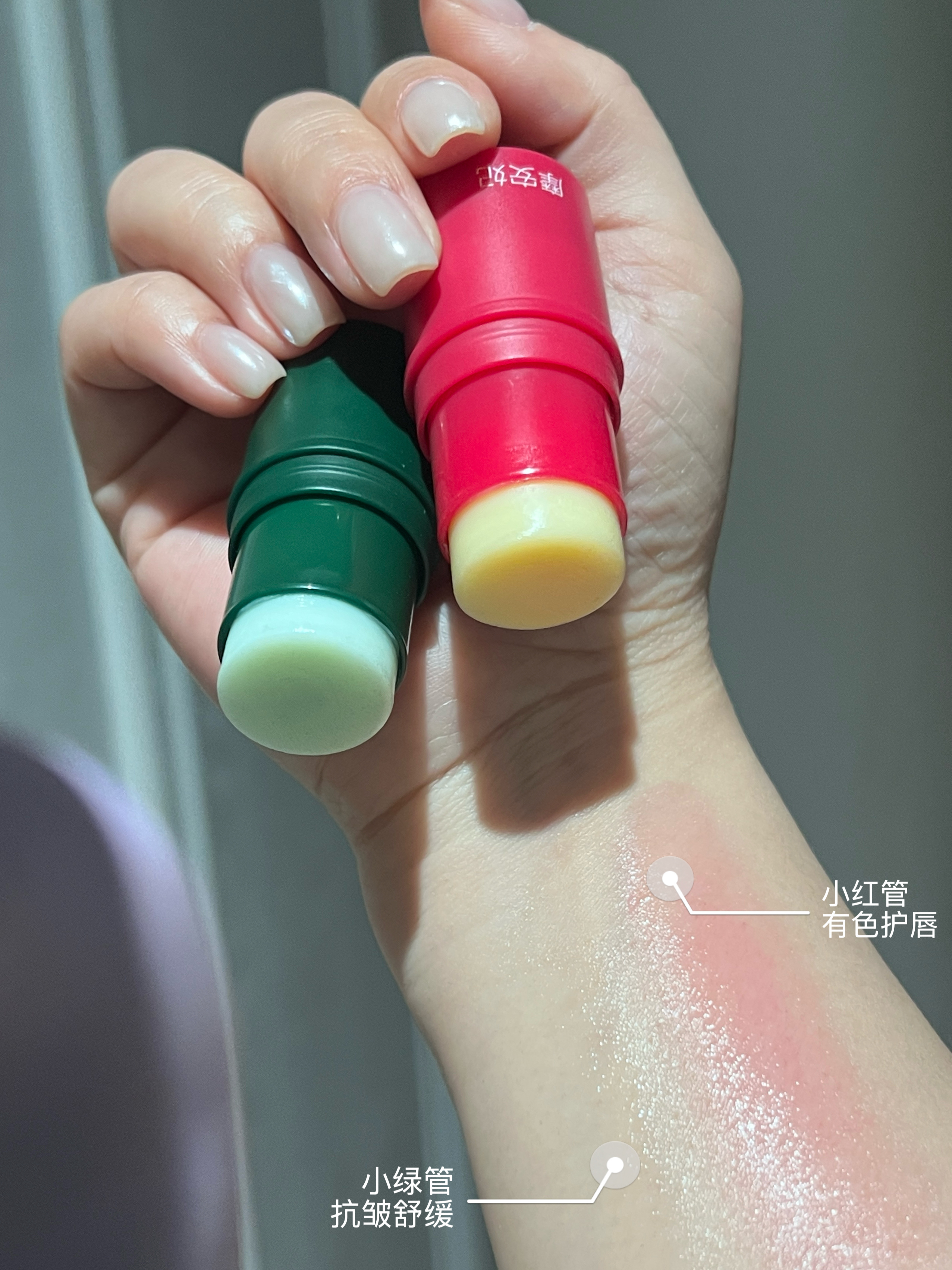 【产品名称】:润色温变护唇膏(红)植萃柔润护唇膏(绿)