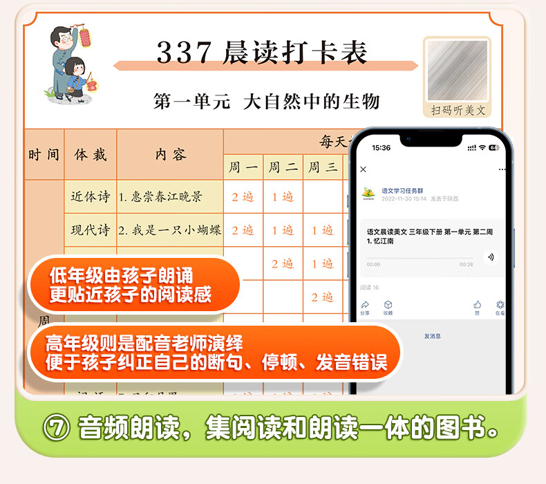 人教版教材同步 1-6年级下册语文每日阅读 美文朗读养成阅读好习惯