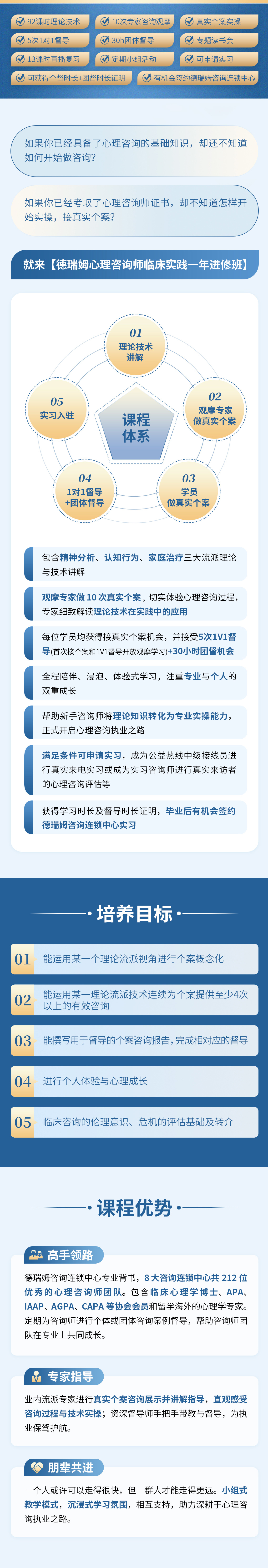 ▶ 德瑞姆心理咨询师培养体系 & 班级介绍(含课程设置、督导支持、实习资源)