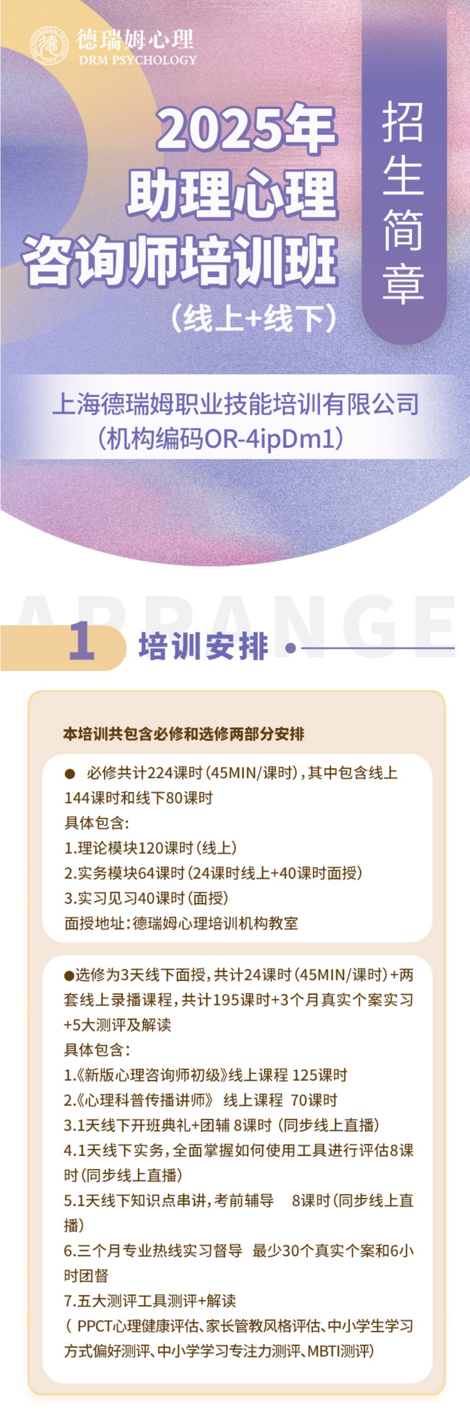 内容:92课时理论技术+10次专家咨询观摩+真实个案实操+5次1对1督导+30h团体督导+专题读书会+可获得个督时长+团督时长证明+有机会签约德瑞姆咨询连锁中心