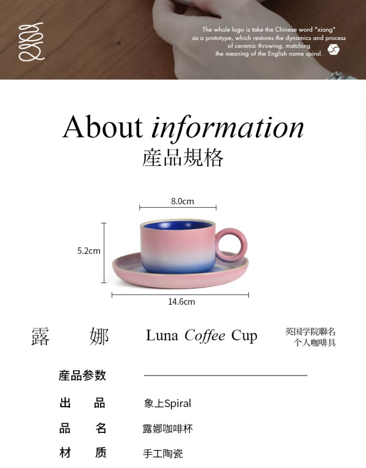 象上情侣咖啡杯套装高档小精致办公下午茶拿铁杯手冲陶瓷咖啡杯子