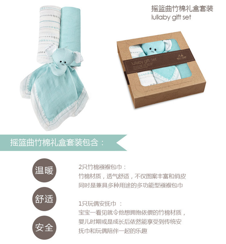 【已下架】积分秒杀 | 美国aden+anais 婴儿摇篮曲竹棉礼盒 包巾盖被安抚巾套(不支持无理由退换)[福利品]