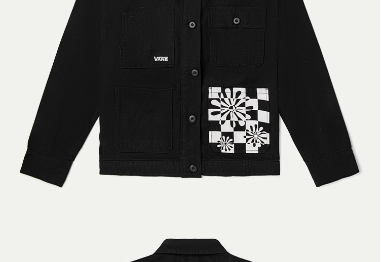 VANS黑色工装风个性印花女子夹克VN0A7Q9KBLK