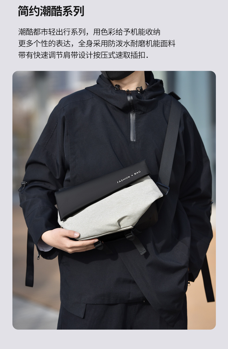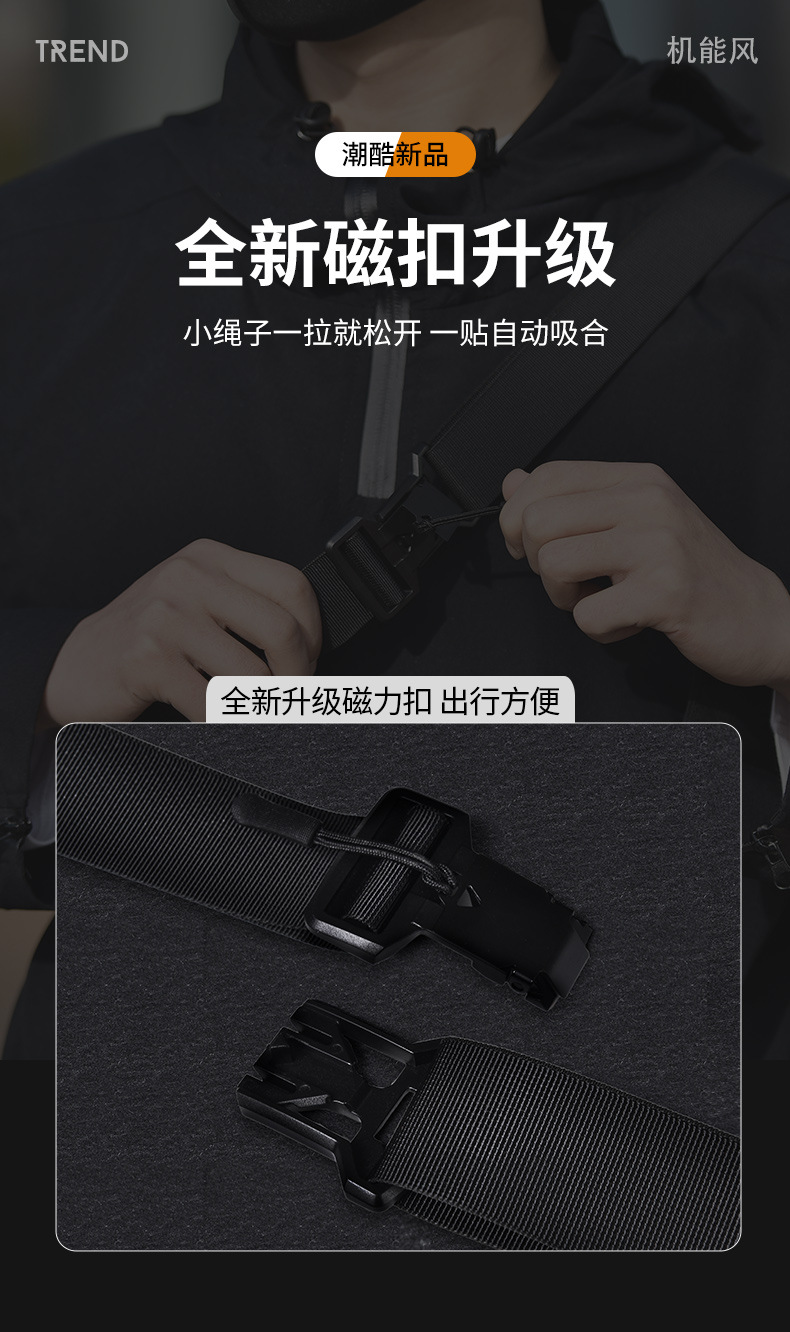 「高颜值!磁吸设计」男士斜挎包磁吸扣胸包 男款邮差包男骑行机车背包运动男生单肩包潮箱包