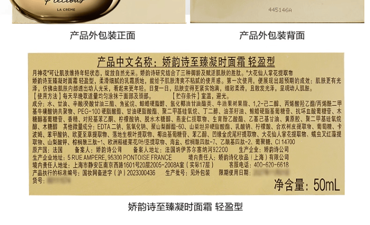 娇韵诗 至臻凝时月光宝瓶面霜 紧致饱满抚纹补水