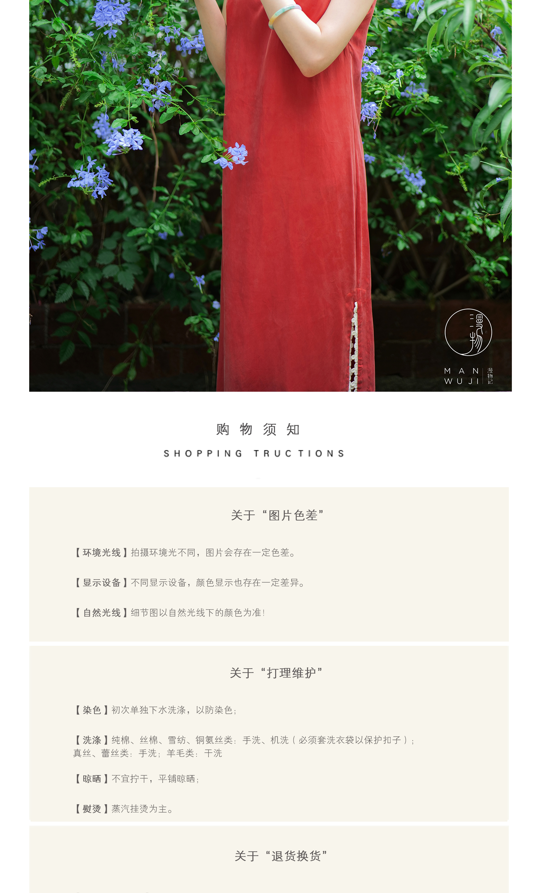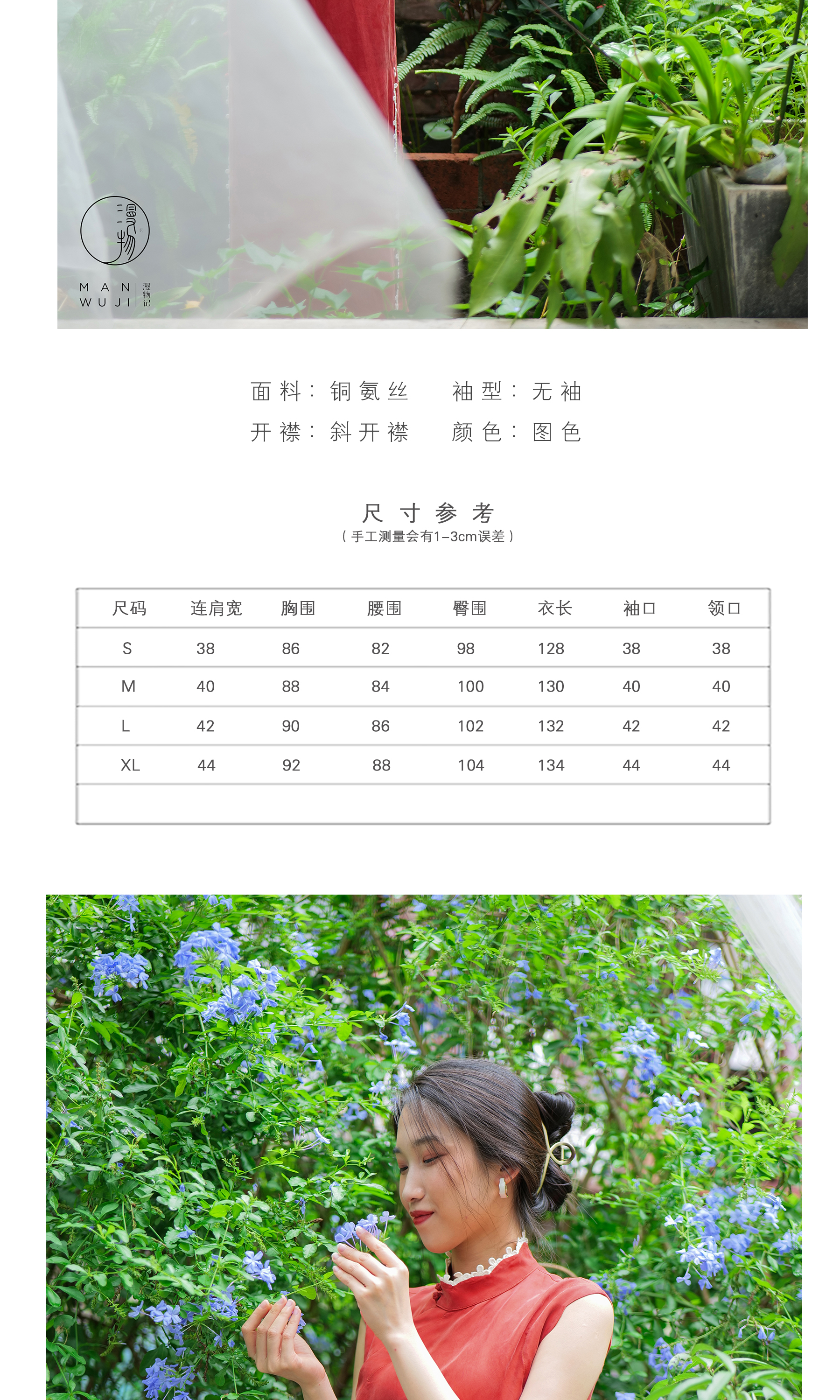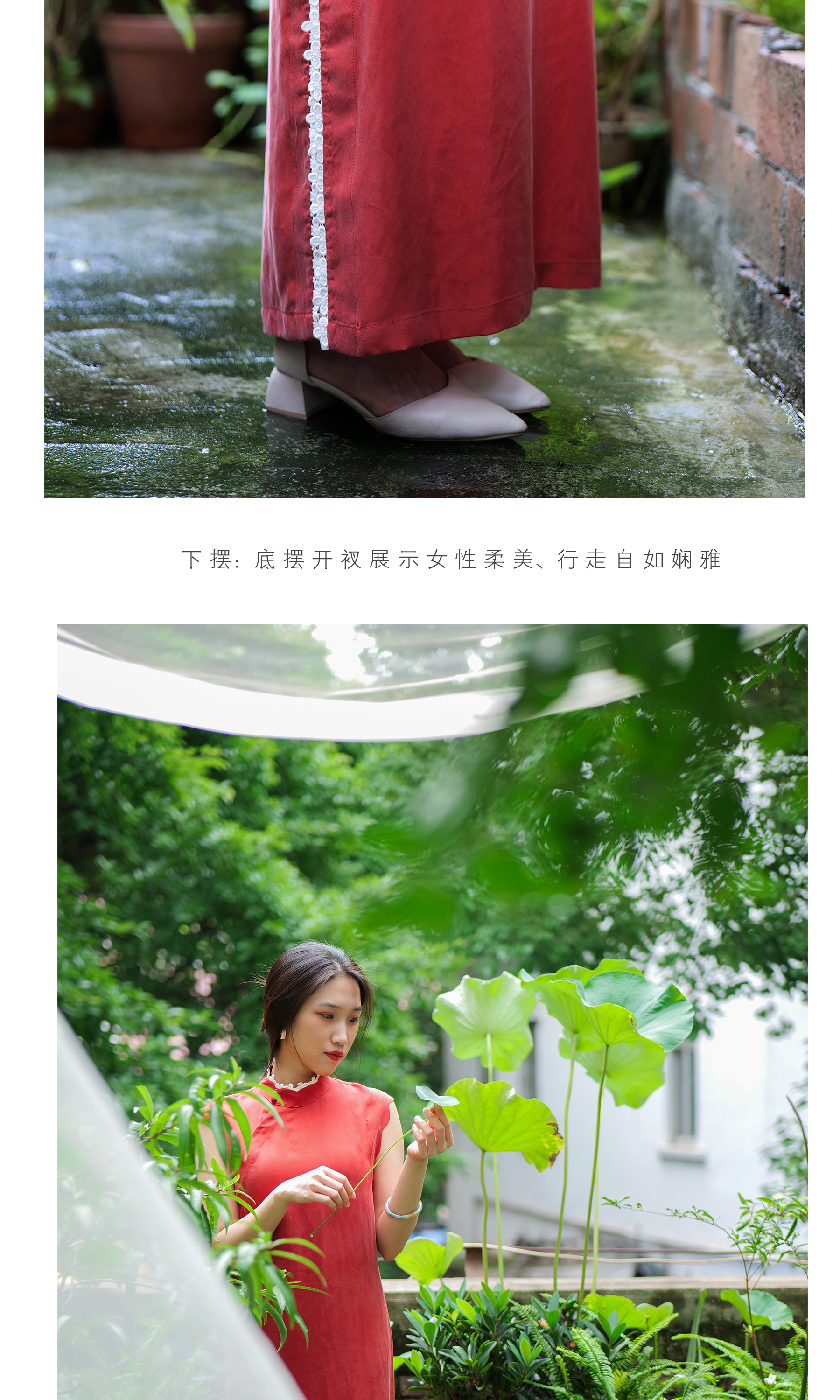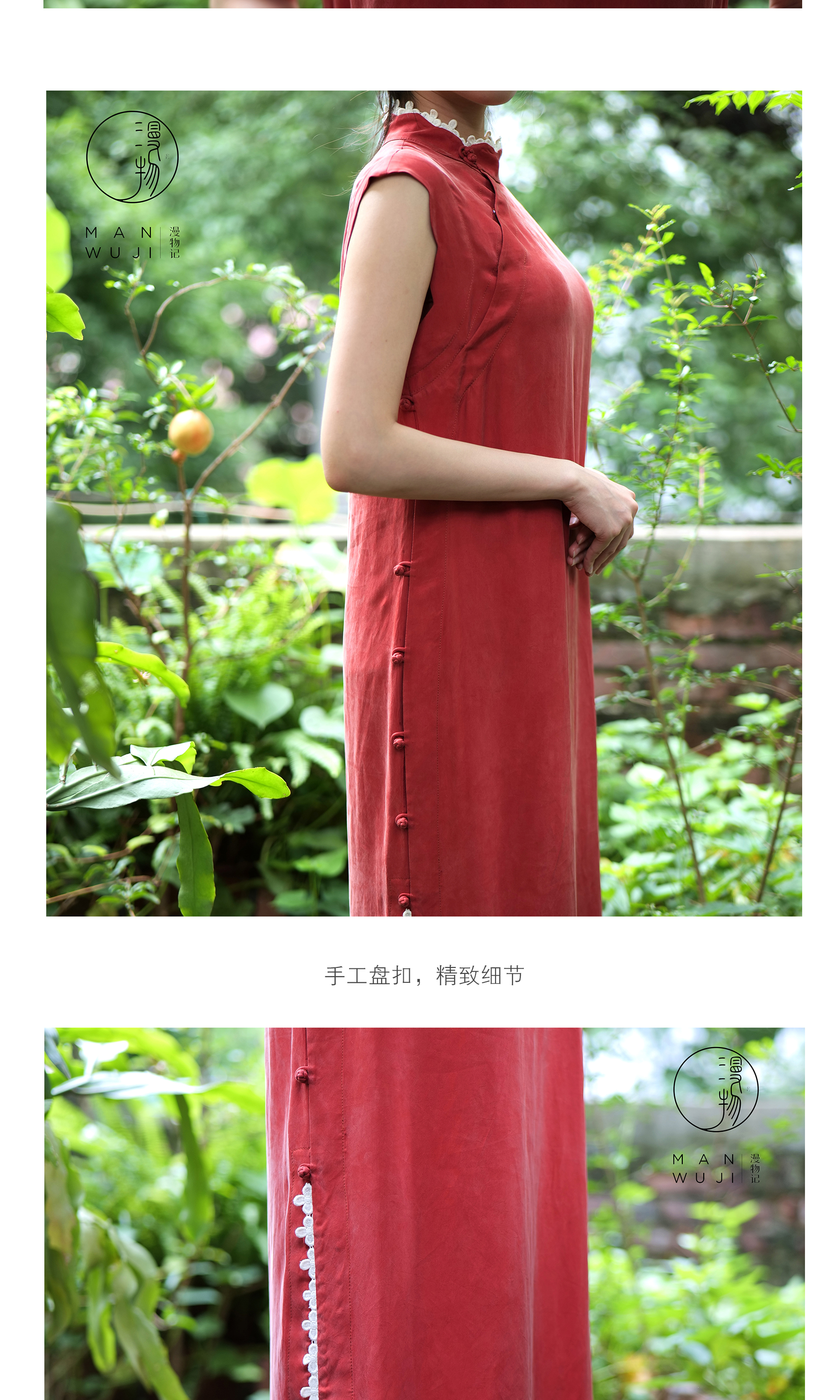 铜氨丝【石榴裙】荷叶边无袖旗袍