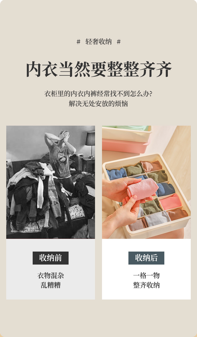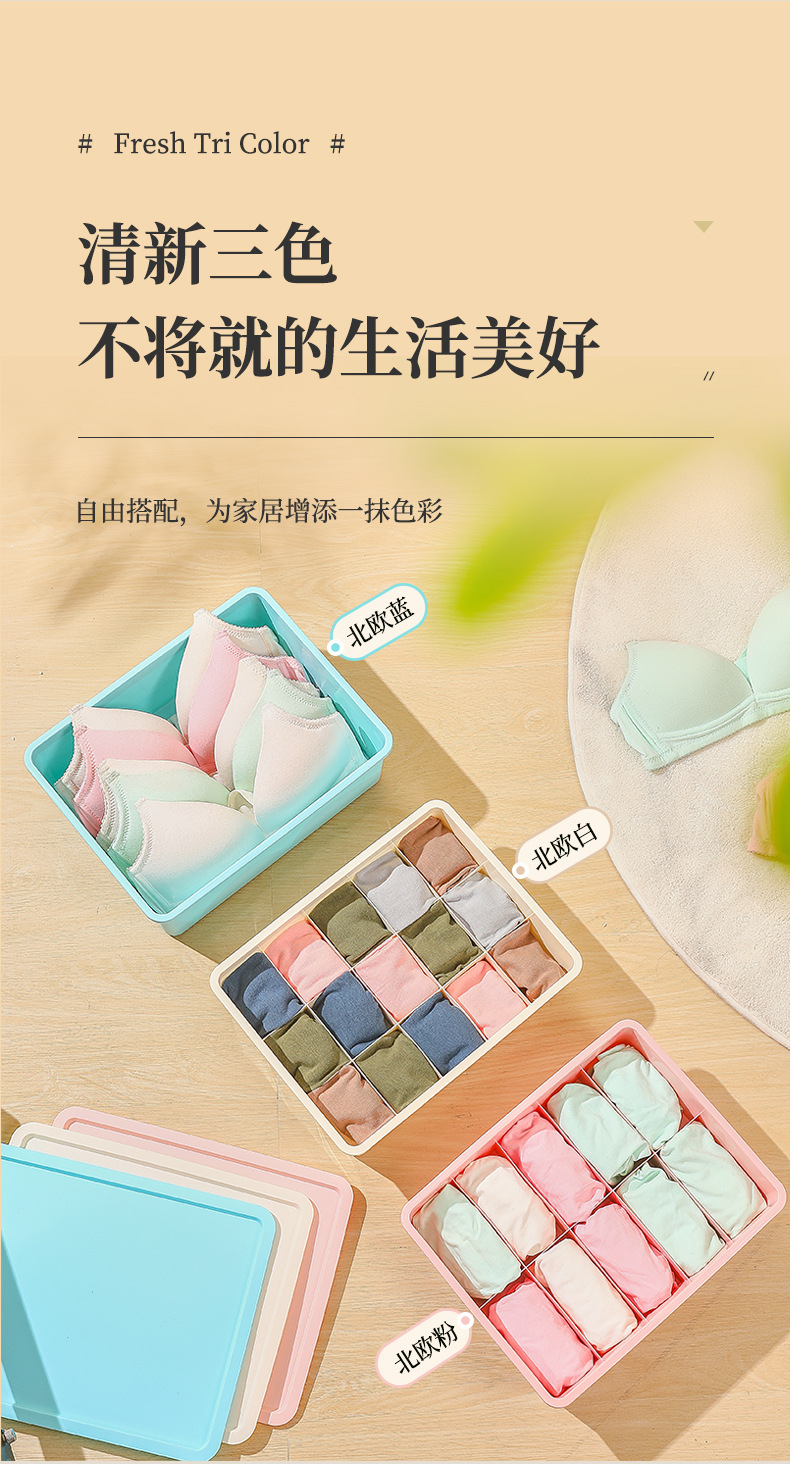「3件套!收纳“管家”」家用内衣袜子收纳盒塑料化妆品整理盒储物内裤文胸内衣分格收纳盒