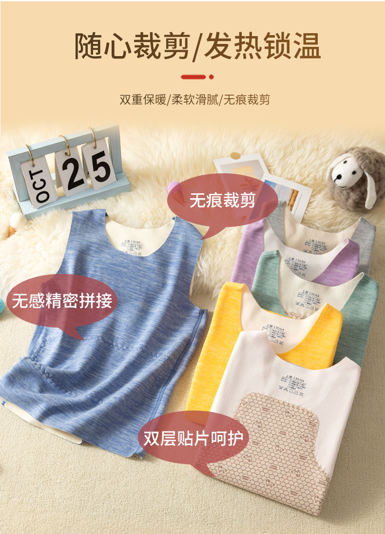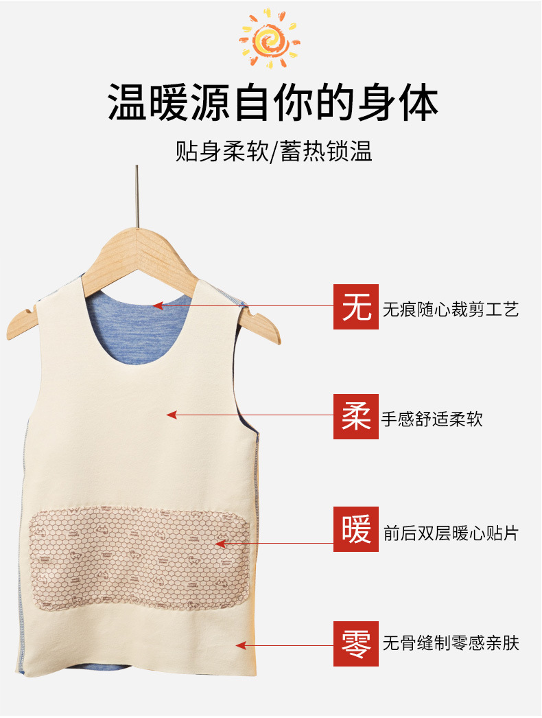 【买1 送1 炫彩贴片双面德绒儿童保暖背心】无骨缝制零感亲肤 蚕丝贴片双层保暖 随身携带的“小太阳”