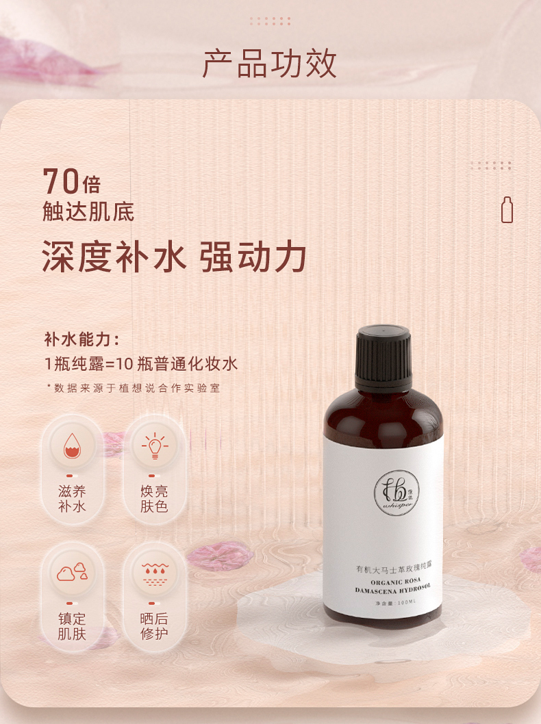 植想说大马士革玫瑰纯露 纯素保湿补水纯植物原浆原液无香精【京东快递送货上门】