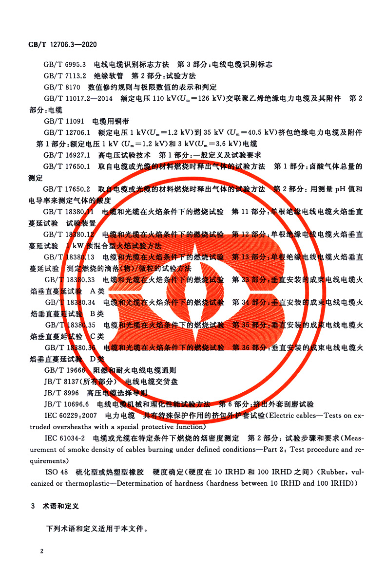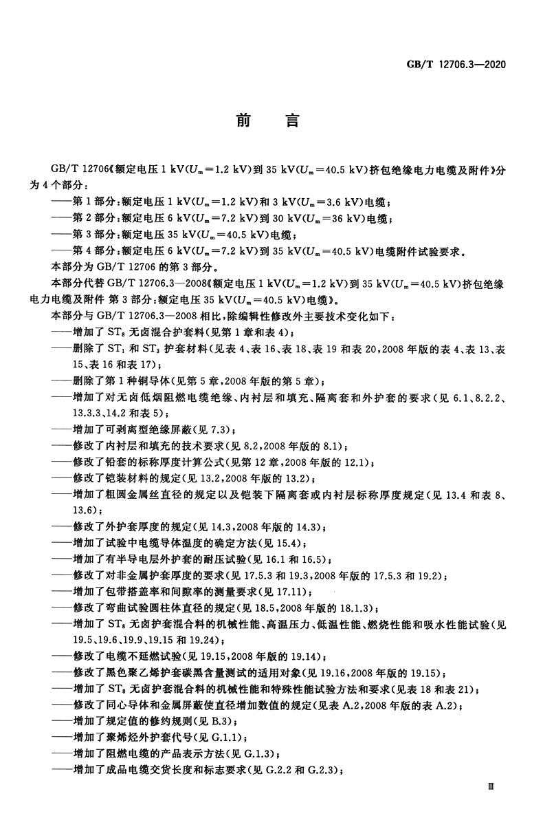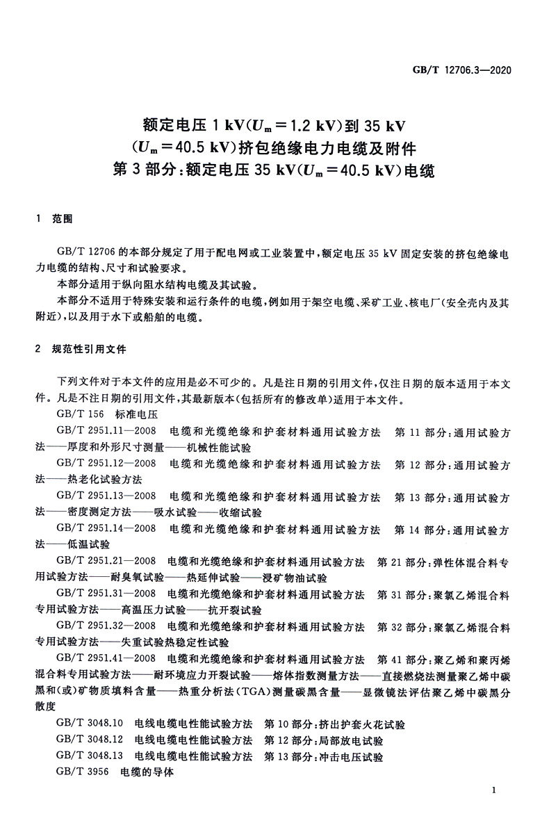 GB/T 12706.3-2020额定电压1kV(Um=1.2 kV)到35kV(Um=40.5 kV)挤包绝缘电力电缆及附件 第3部分:额定电压35kV(Um=40.5kV)电缆