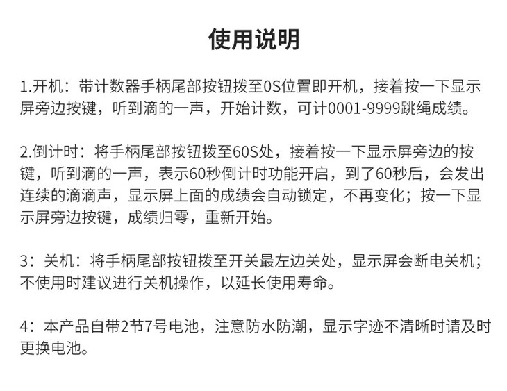 狂神中考专用跳绳 初中学生体育考试电子计数钢丝绳负重ks5766【计数】钢丝绳