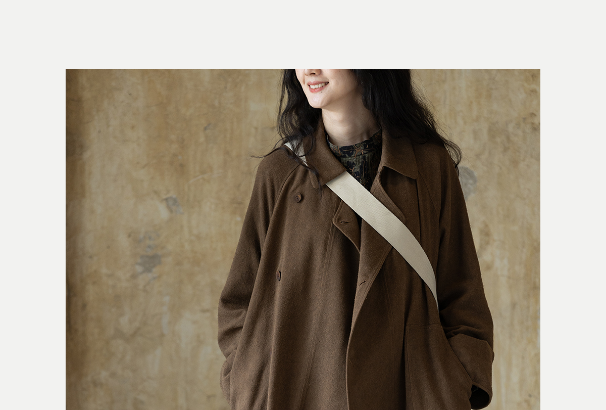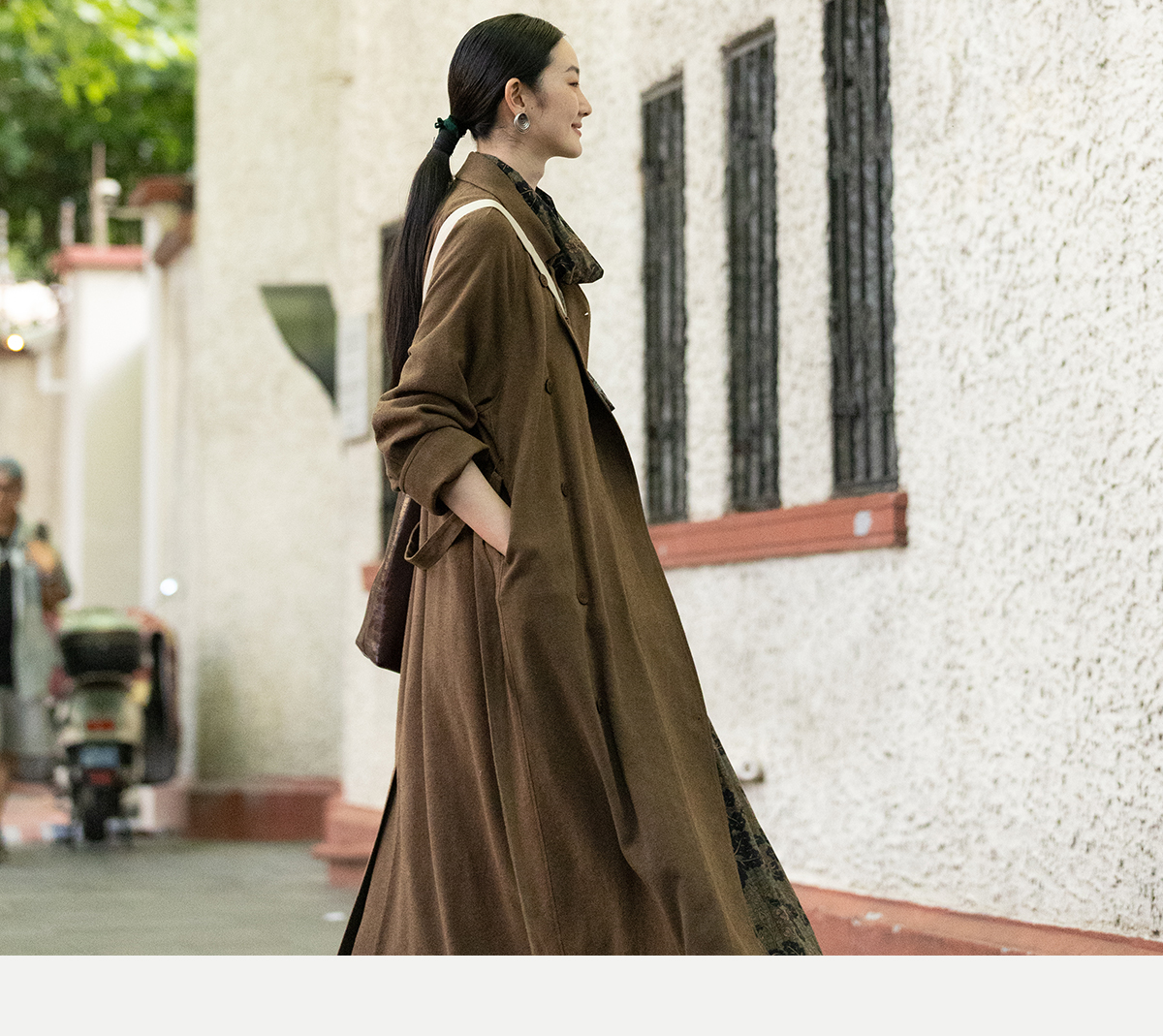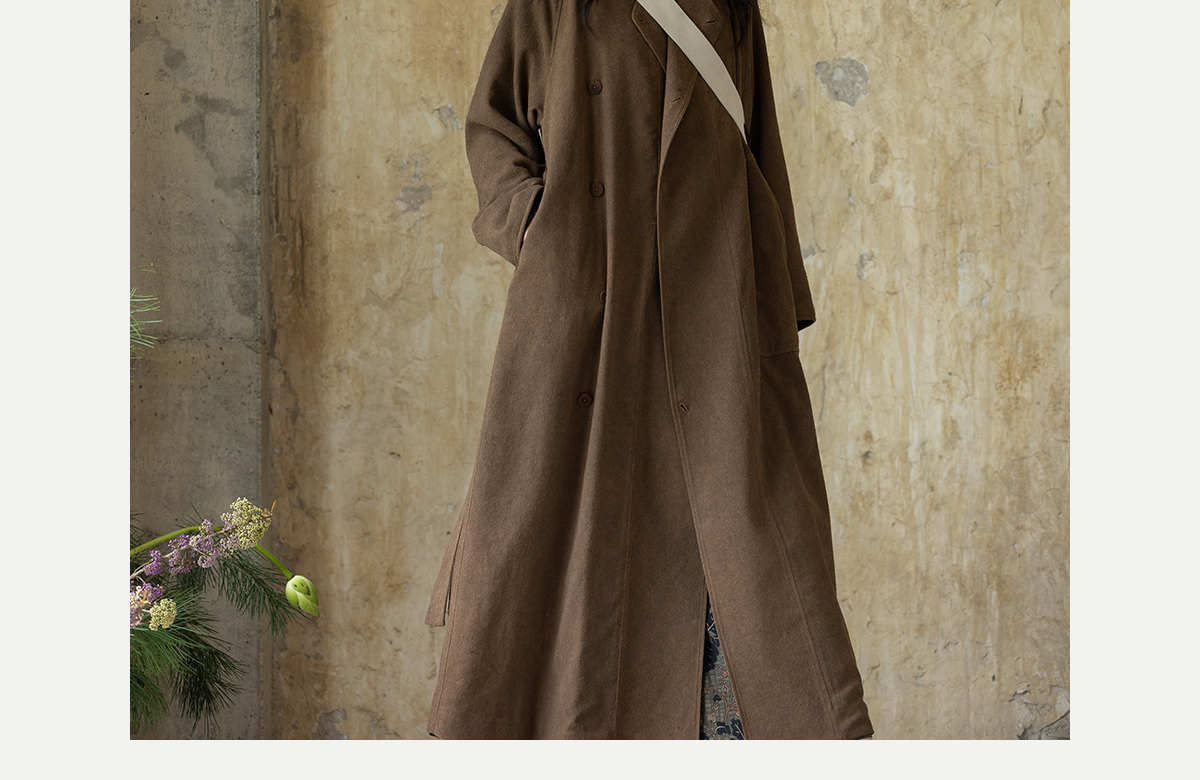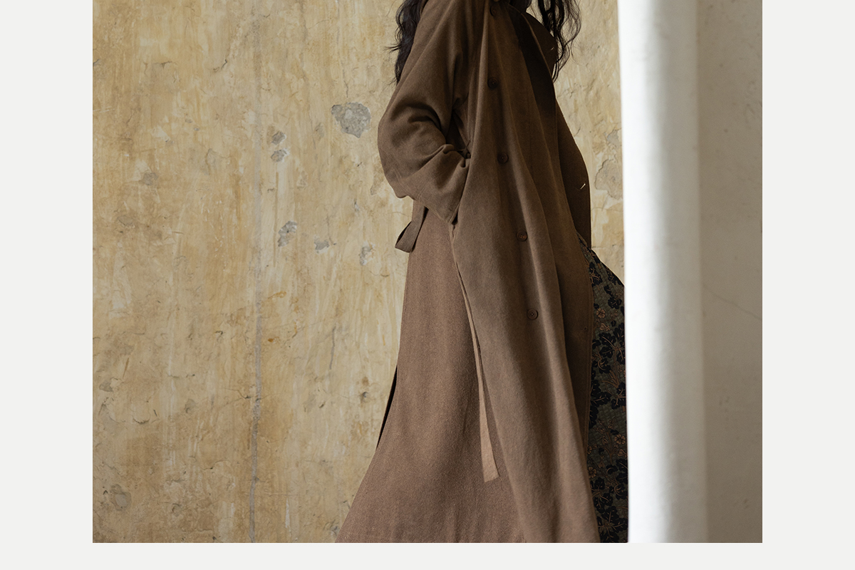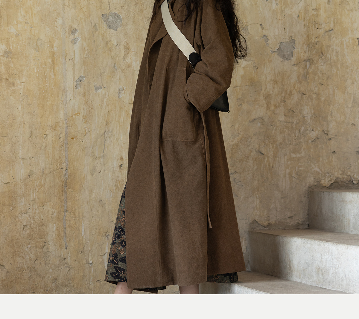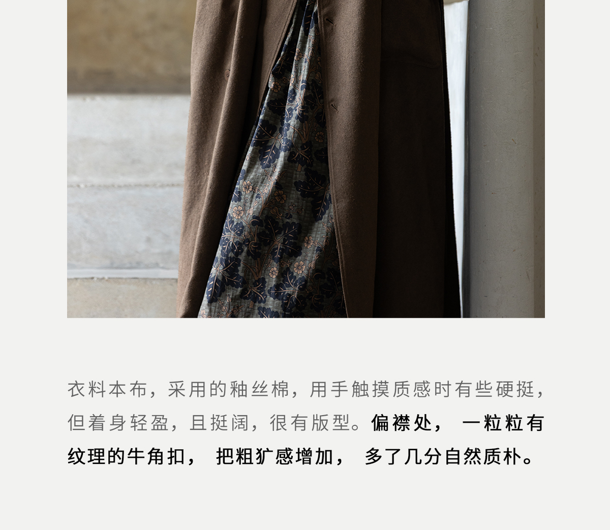 牧衣游原创 斑驳炒色丝棉混纺风衣原生质朴肌理感宽松长外套 浣浣