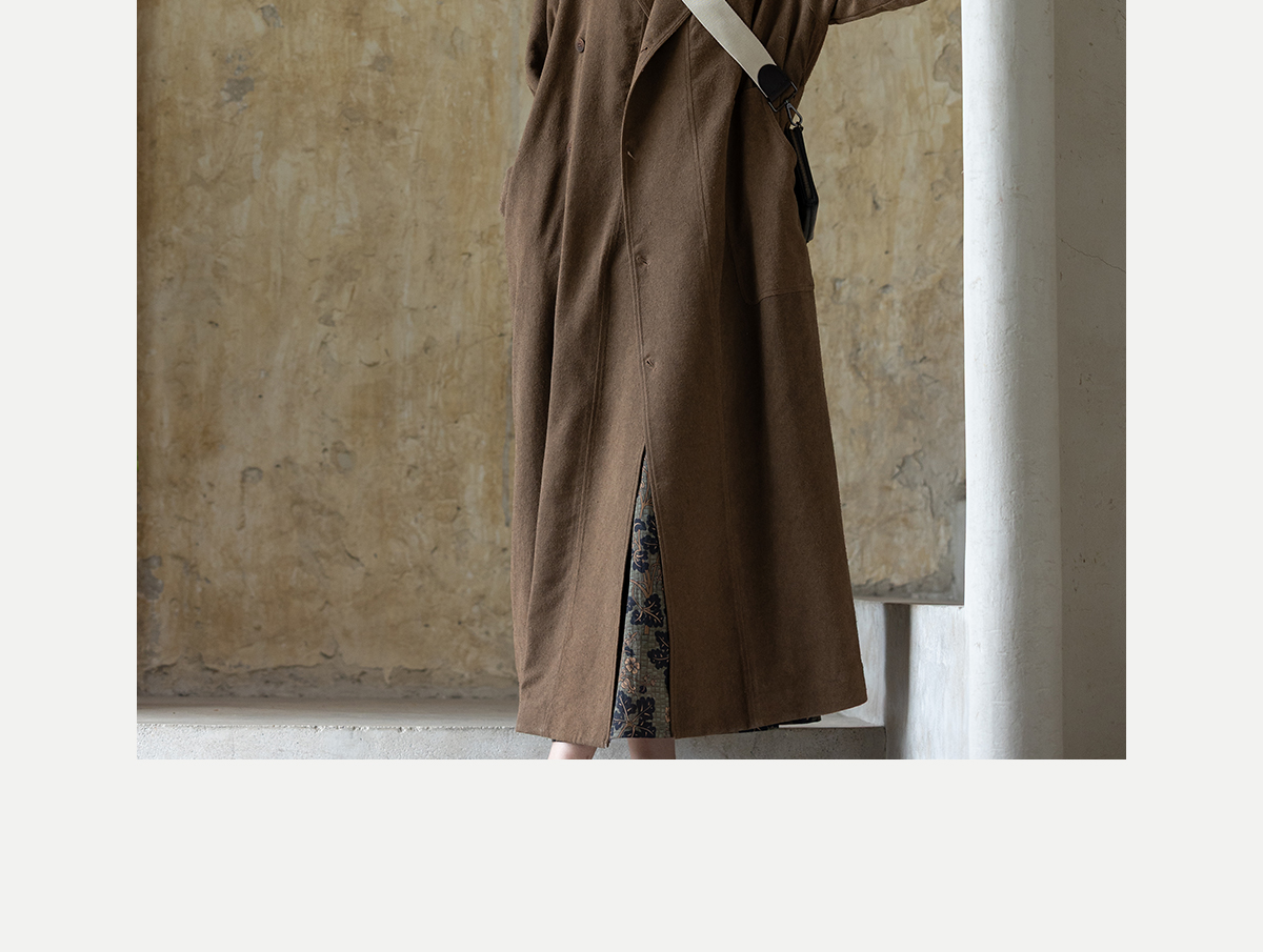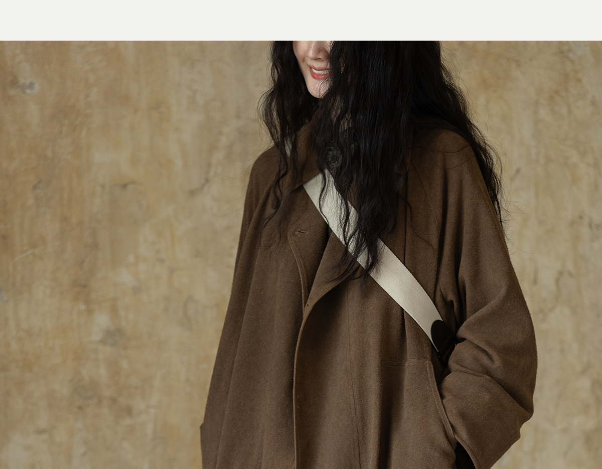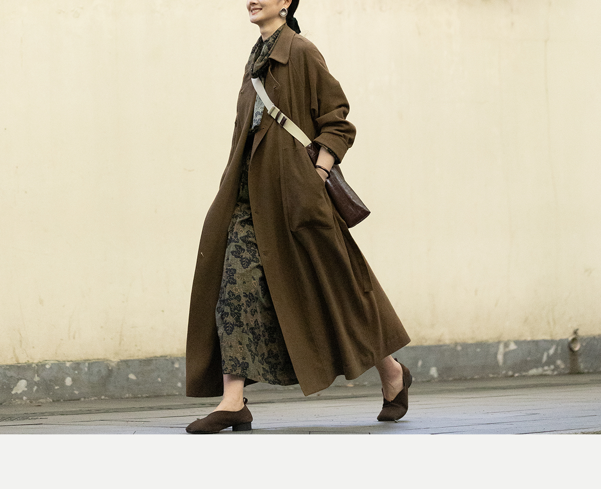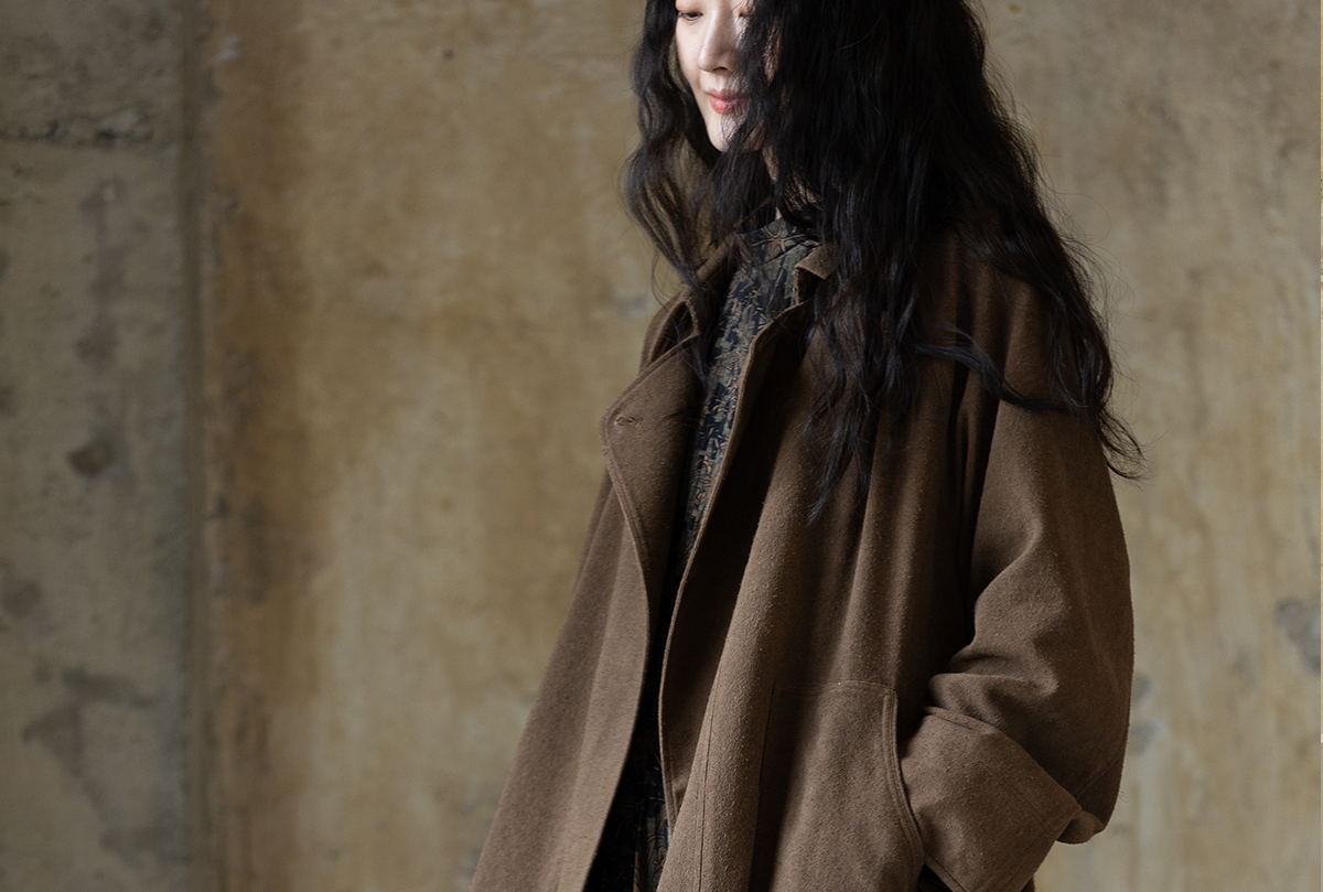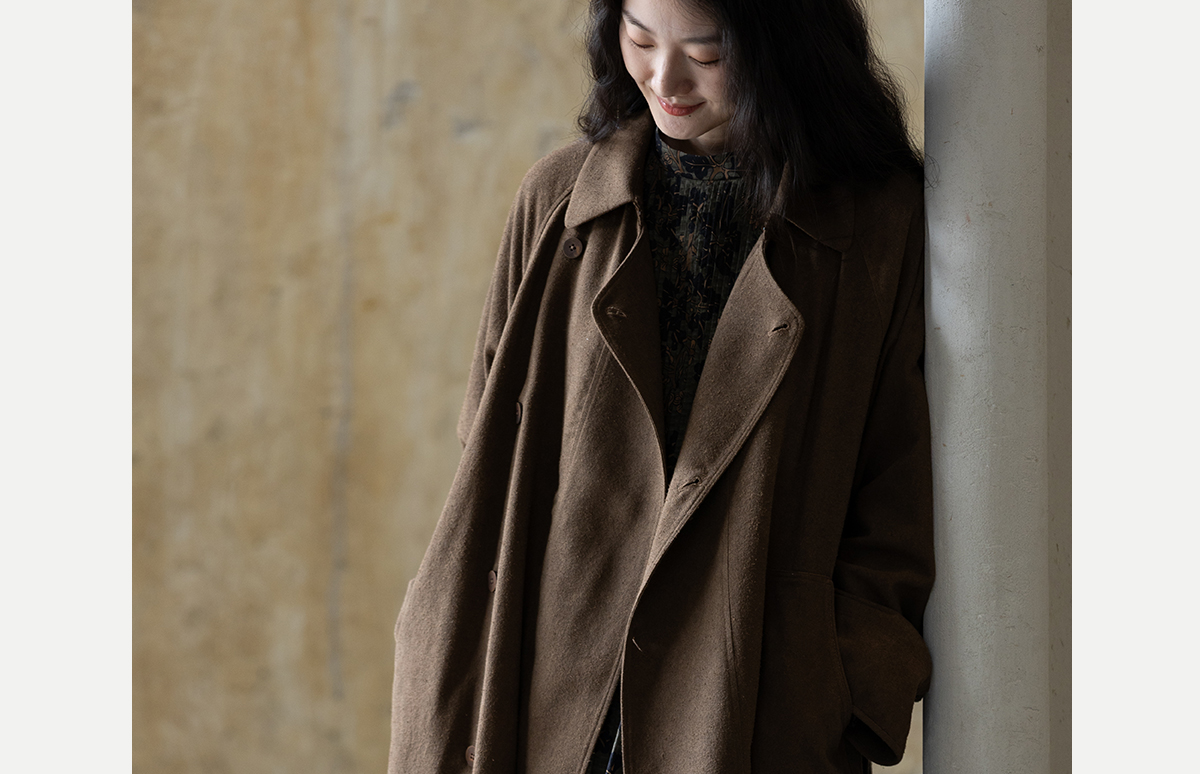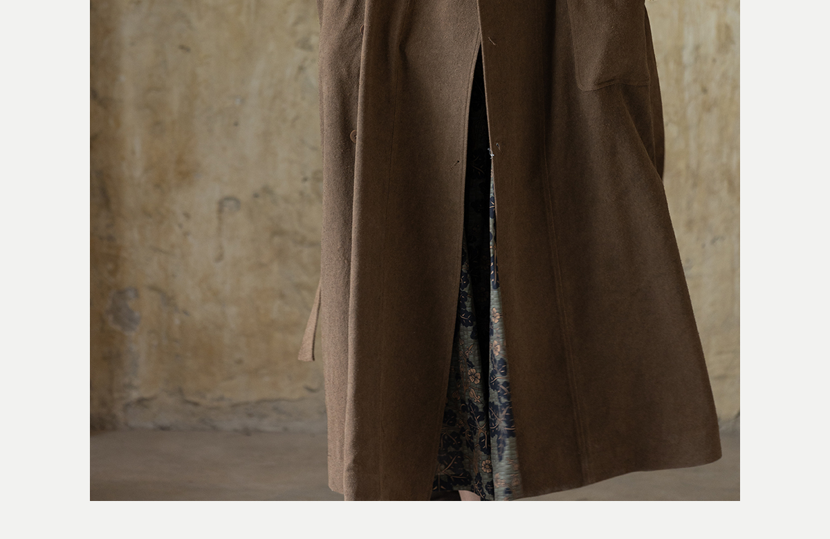 牧衣游原创 斑驳炒色丝棉混纺风衣原生质朴肌理感宽松长外套 浣浣