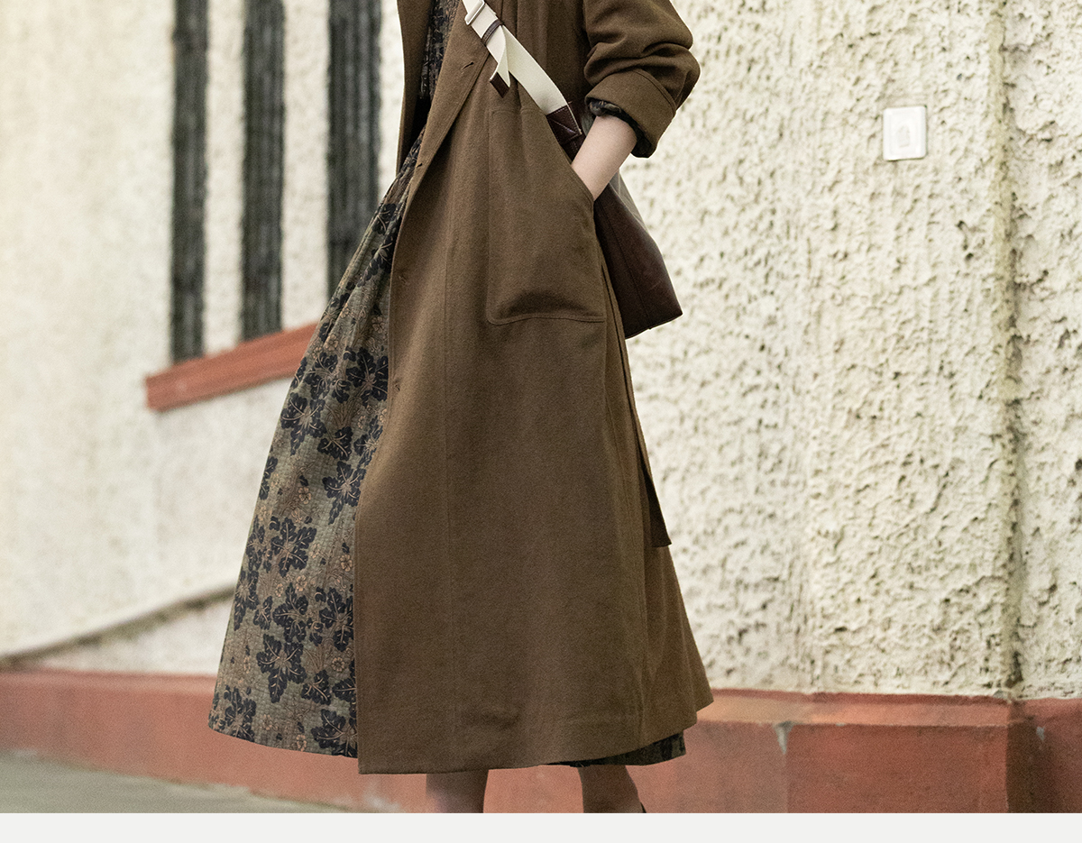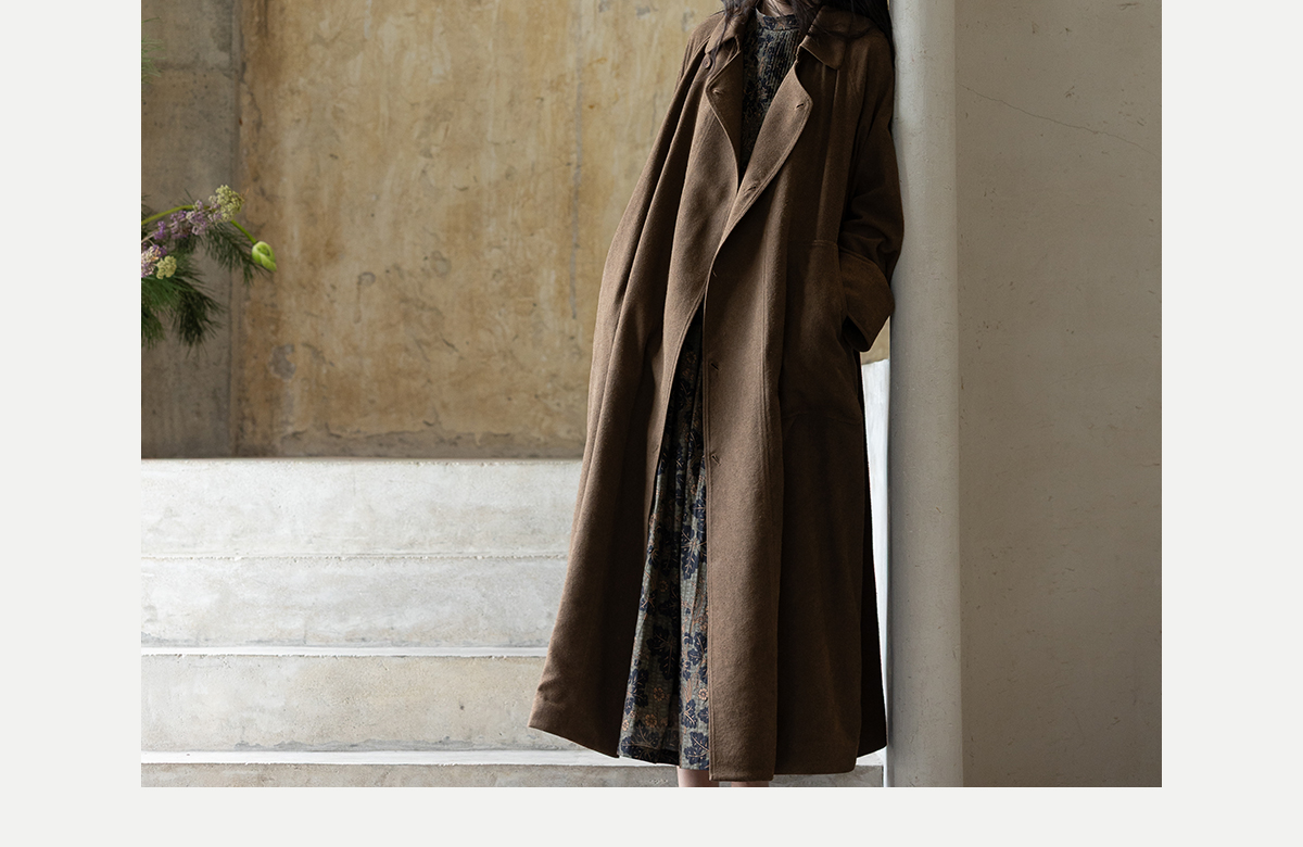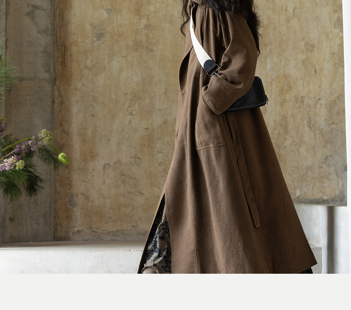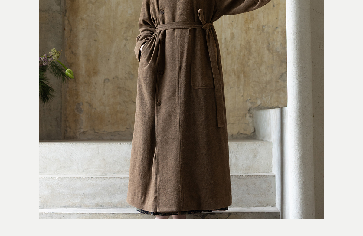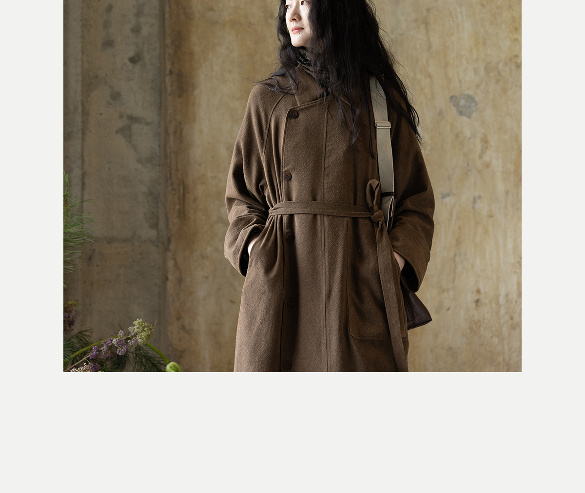 牧衣游原创 斑驳炒色丝棉混纺风衣原生质朴肌理感宽松长外套 浣浣