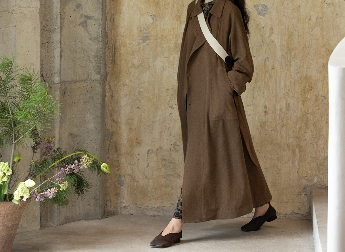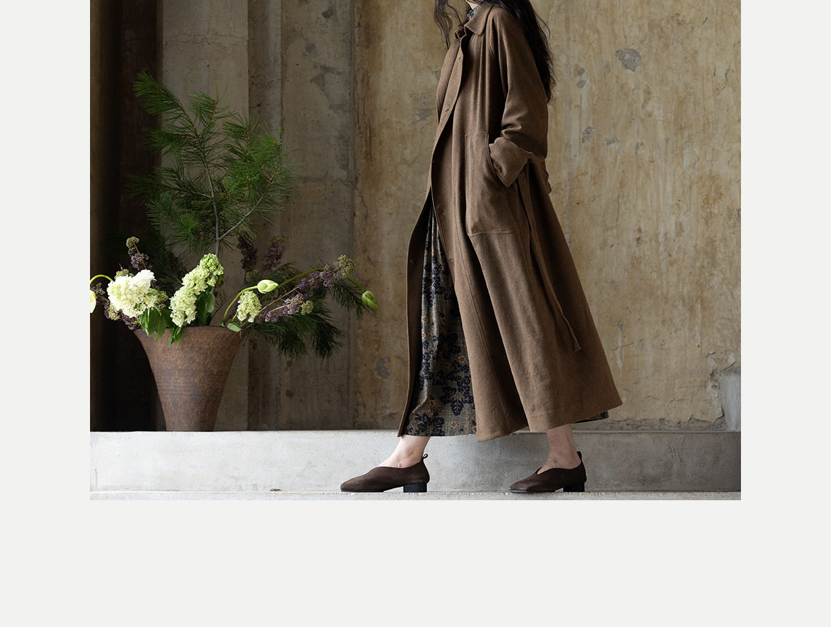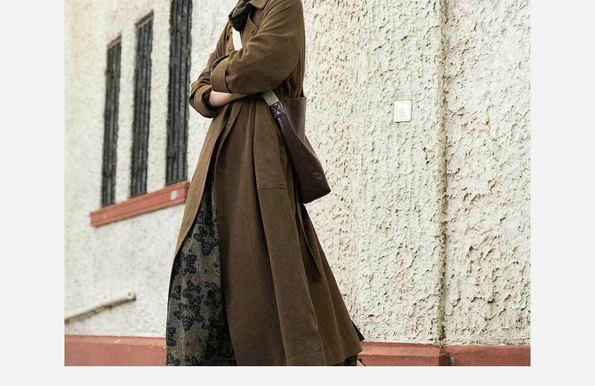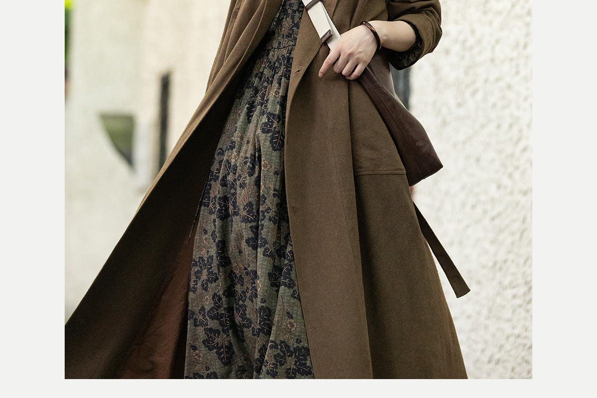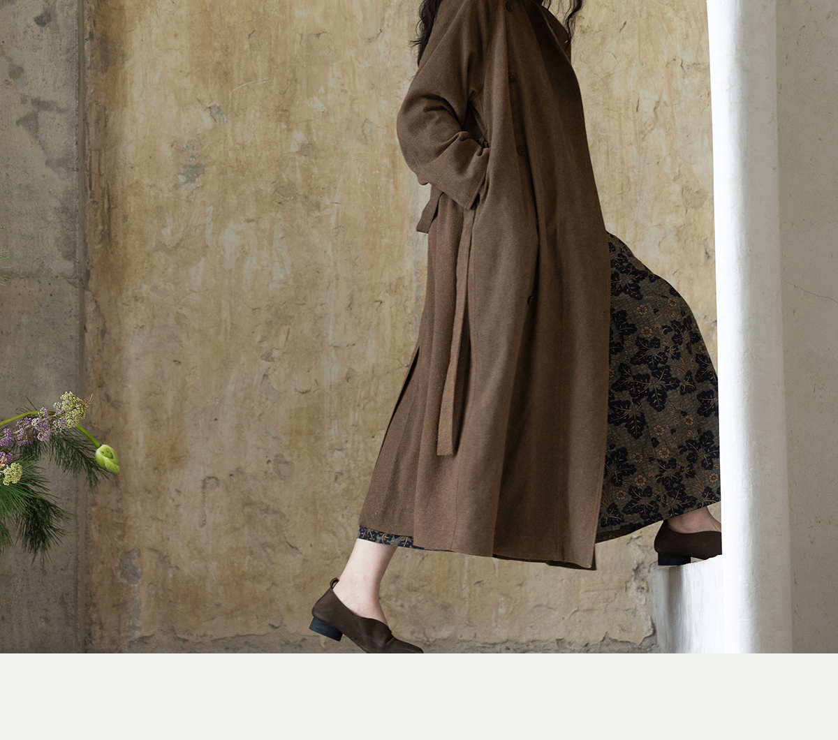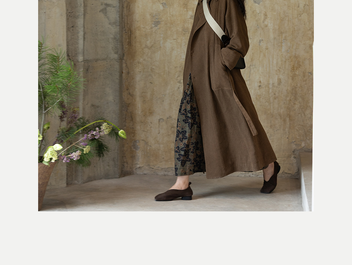 牧衣游原创 斑驳炒色丝棉混纺风衣原生质朴肌理感宽松长外套 浣浣