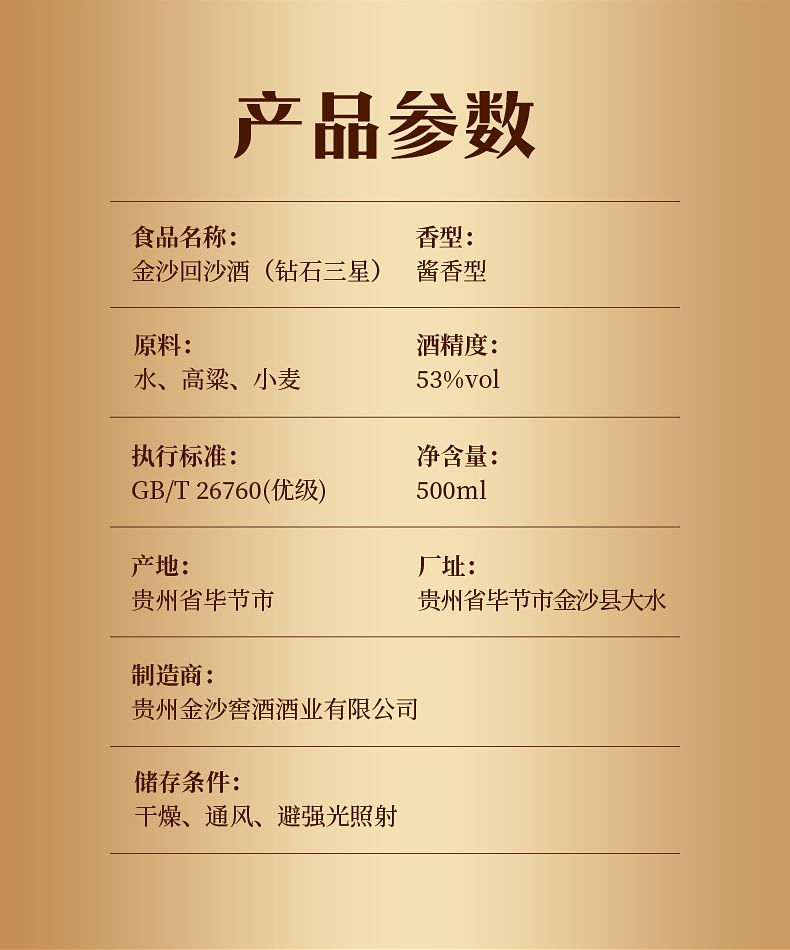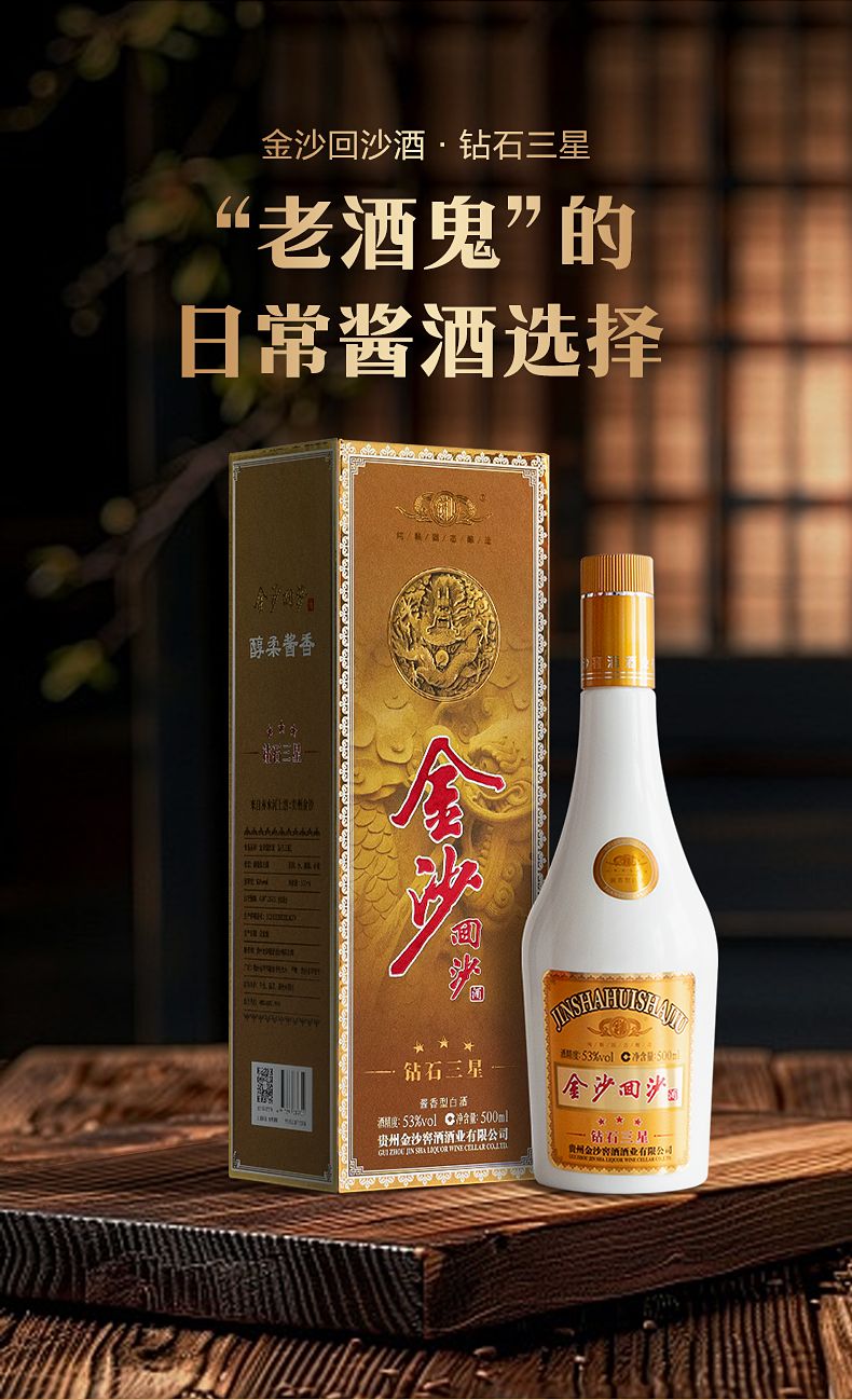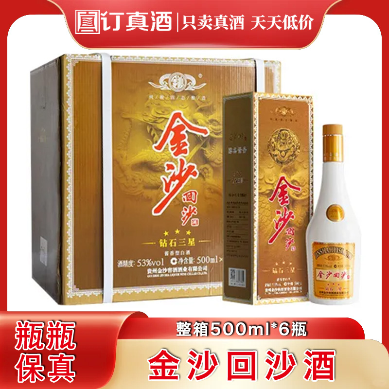 金沙回沙酒钻石三星 53度酱香型白酒 整箱500ml*6瓶包邮