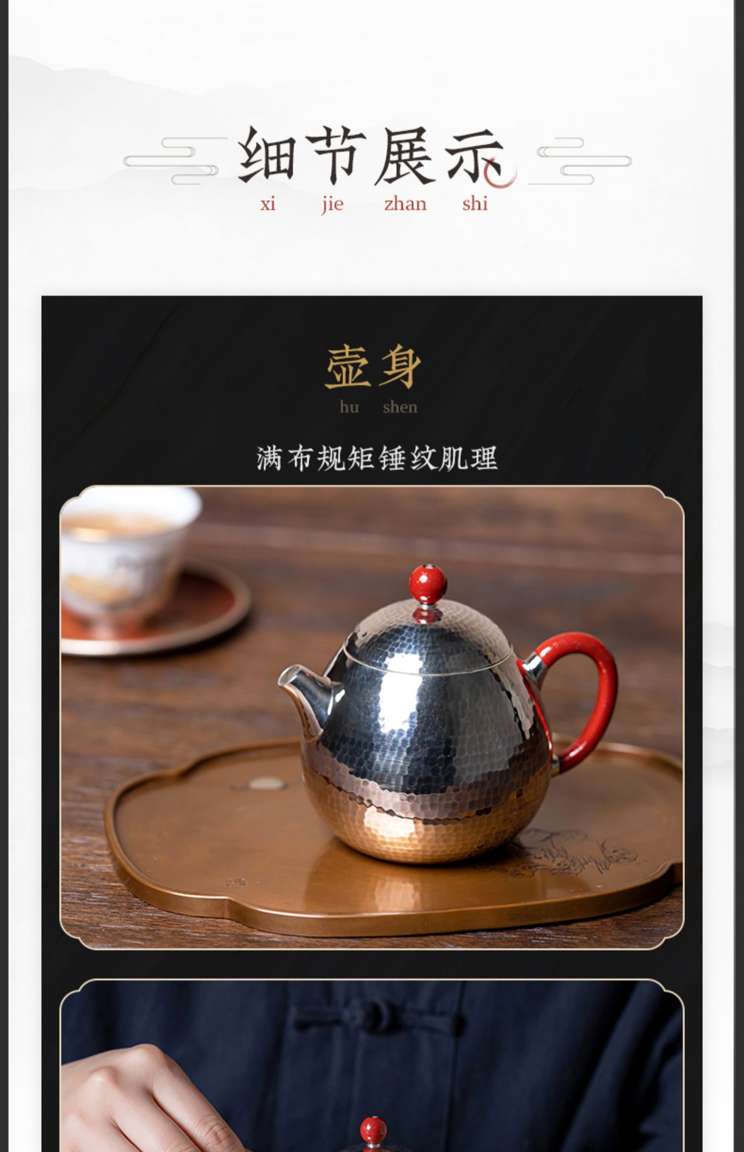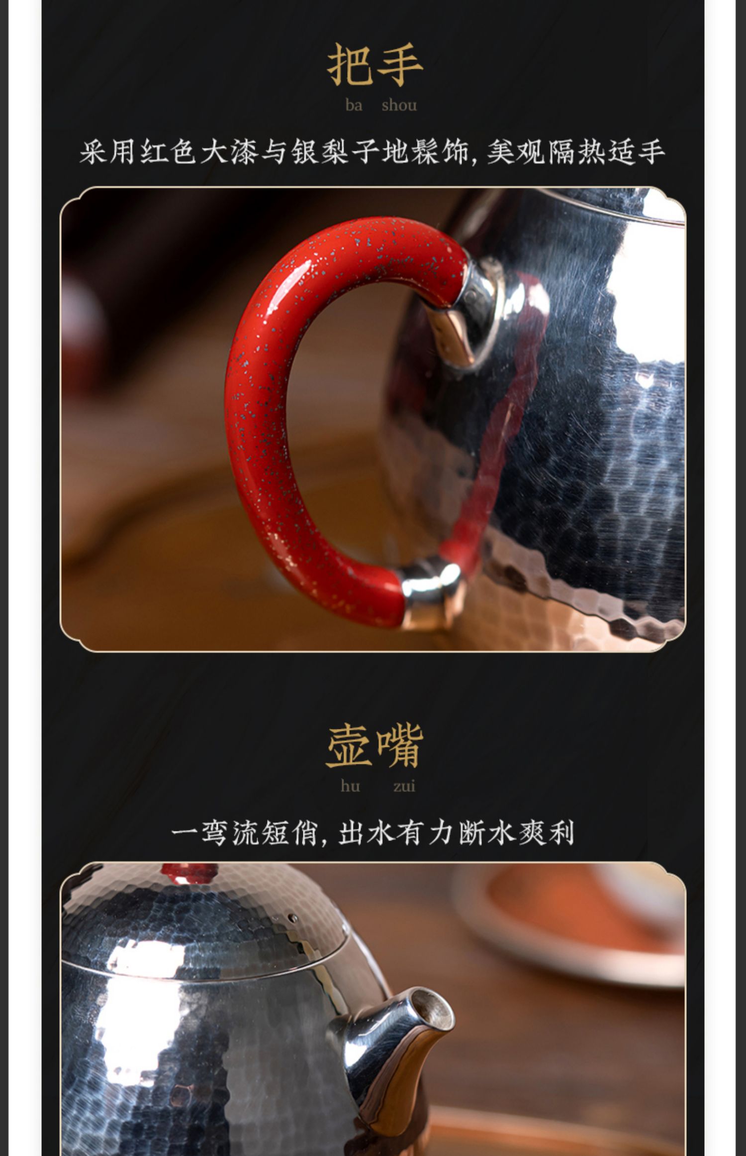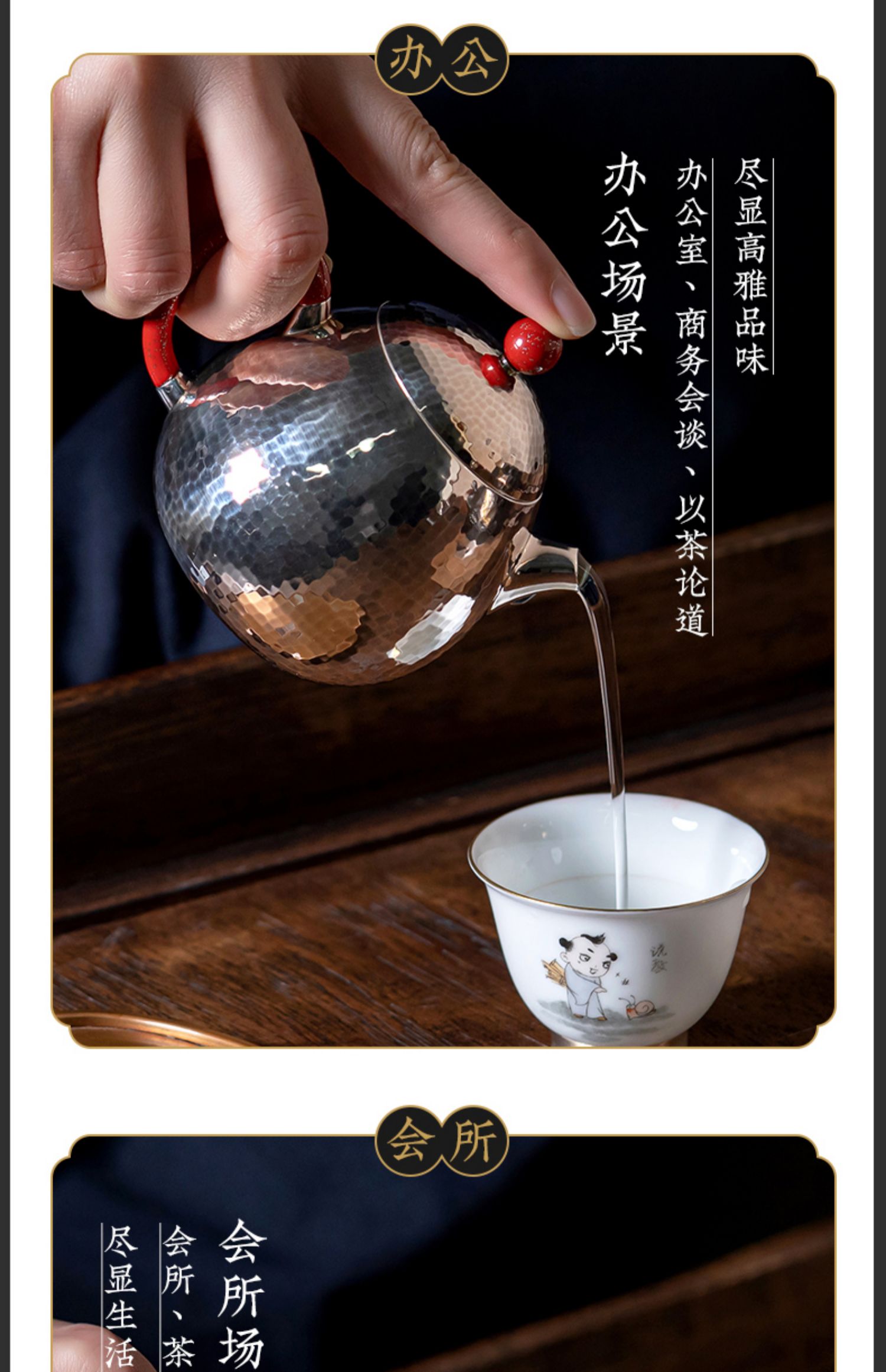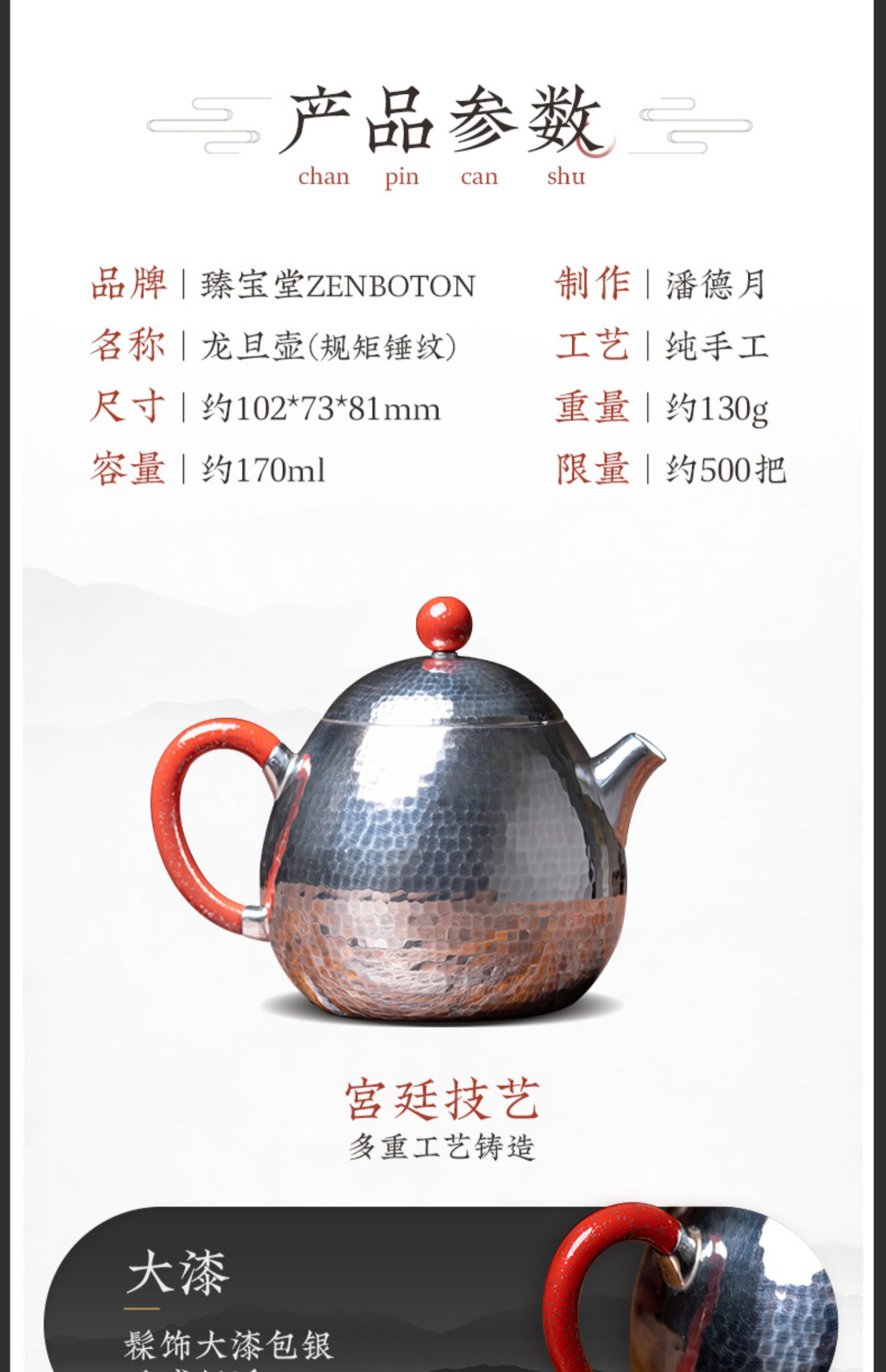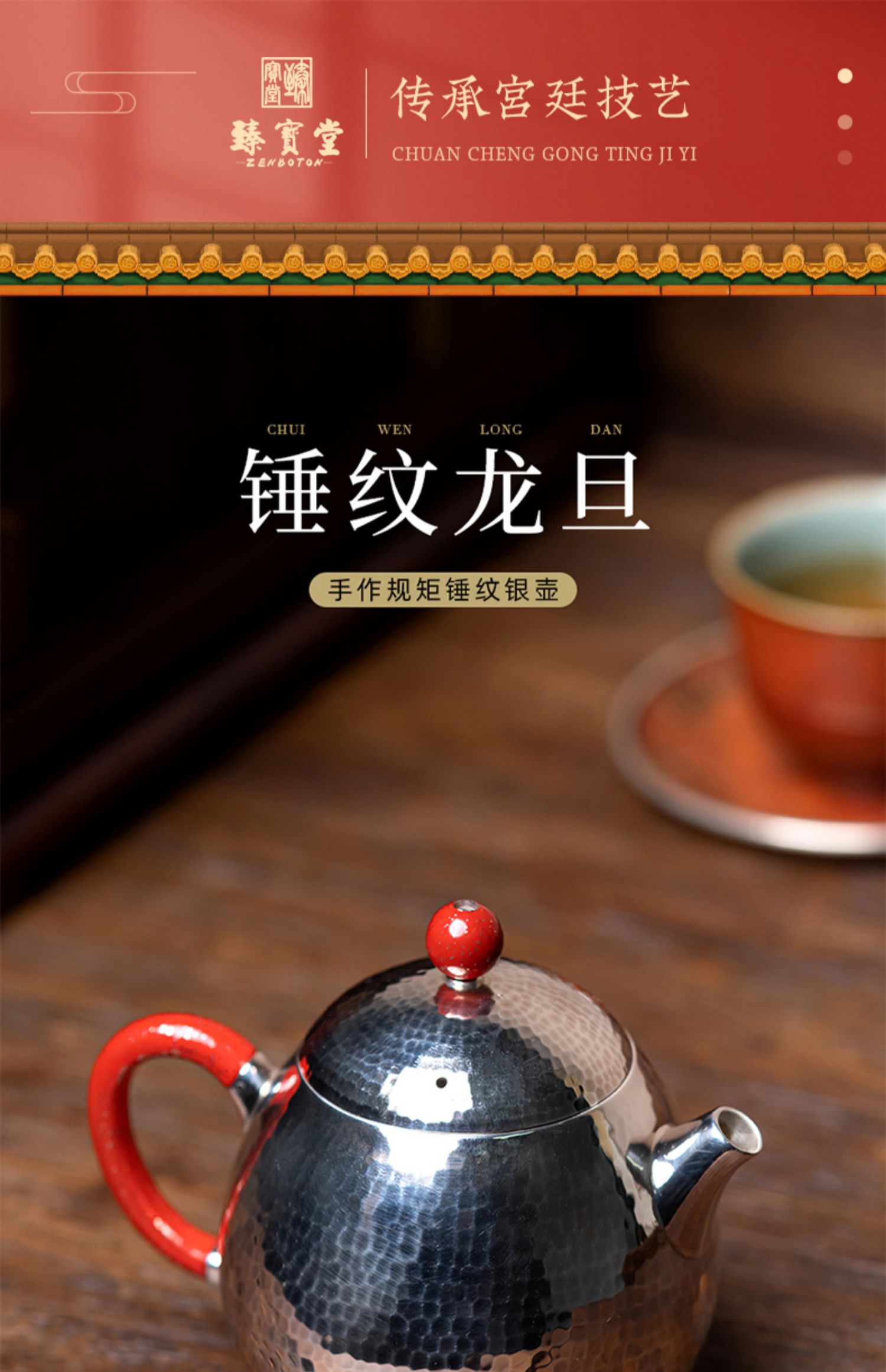 臻宝堂银壶 999纯银泡茶壶纯手工锤纹冲茶小壶家用中式茶具龙旦壶 样品