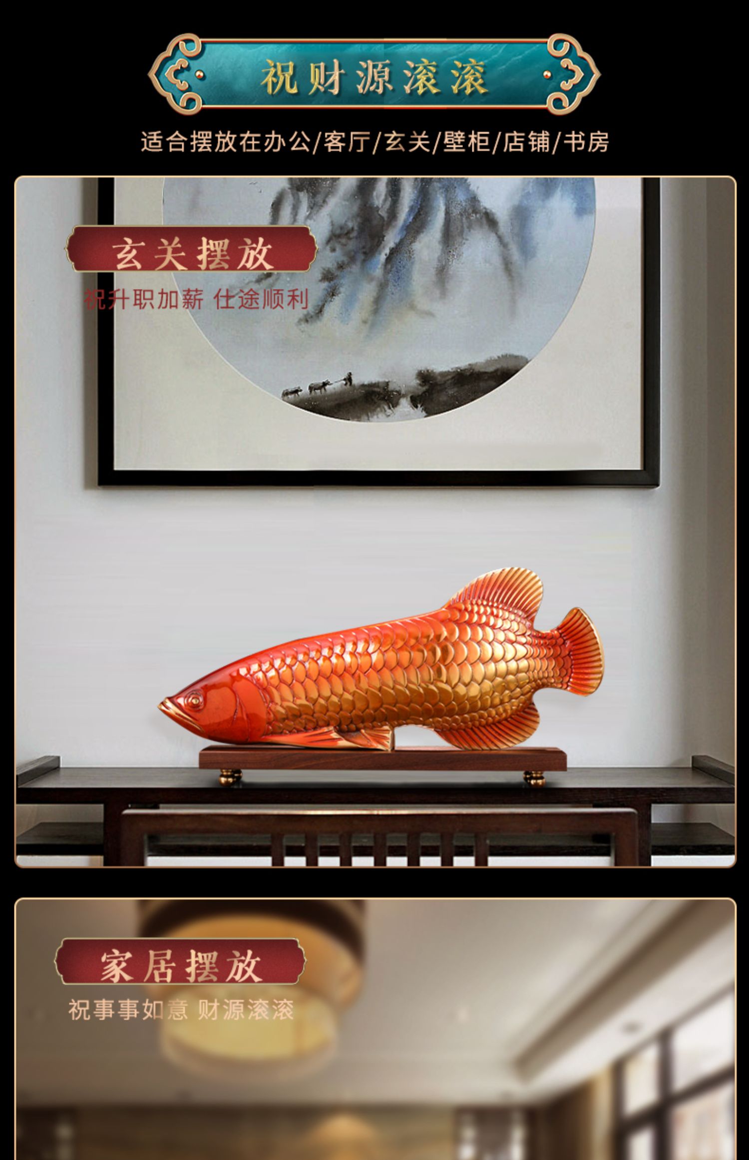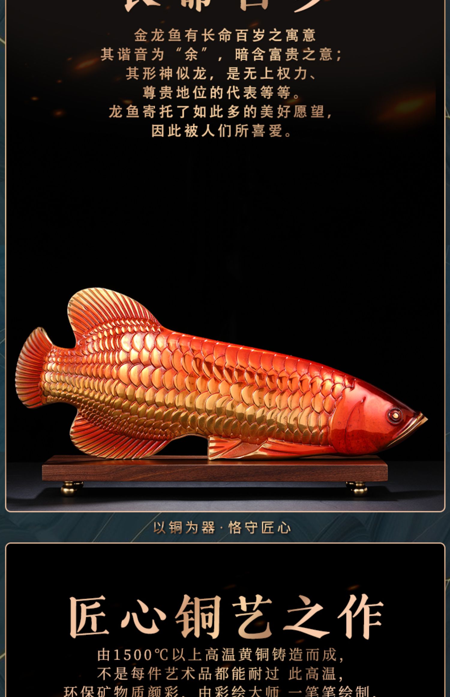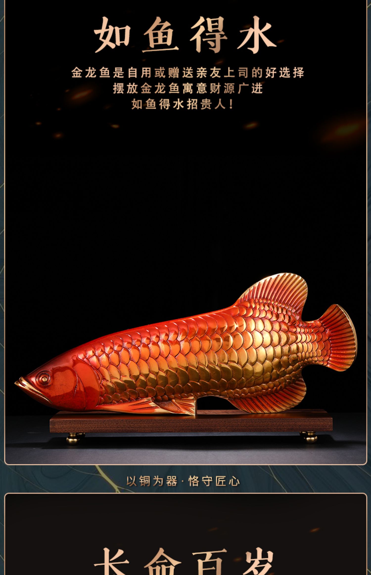 E-YM-FK079 纯铜富贵金龙鱼摆件(365*60*150)(带底座)