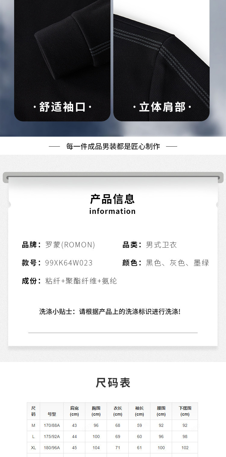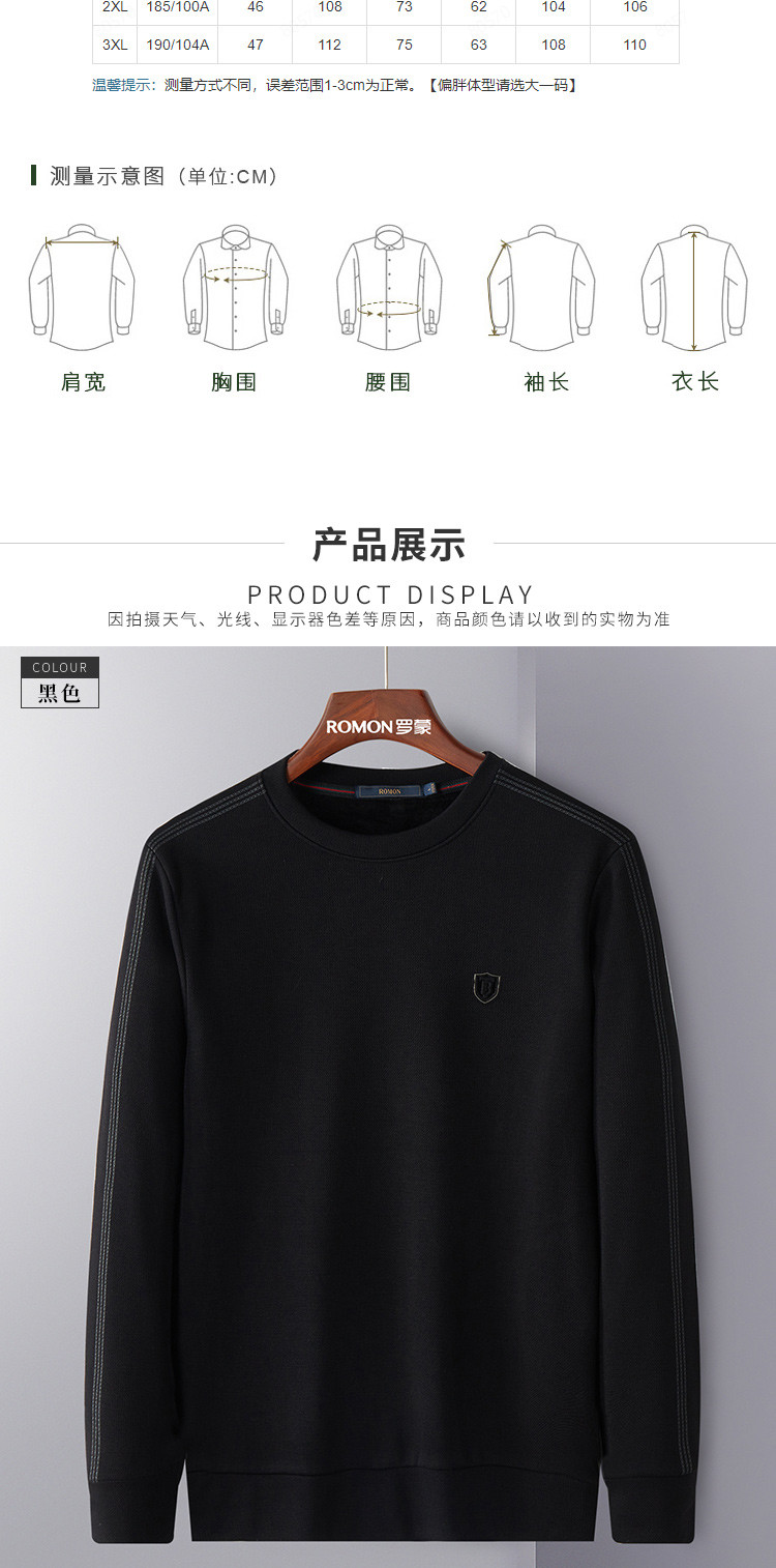 【加绒保暖】罗蒙卫衣男秋冬新品通勤百搭简约字母内搭外穿男士卫衣