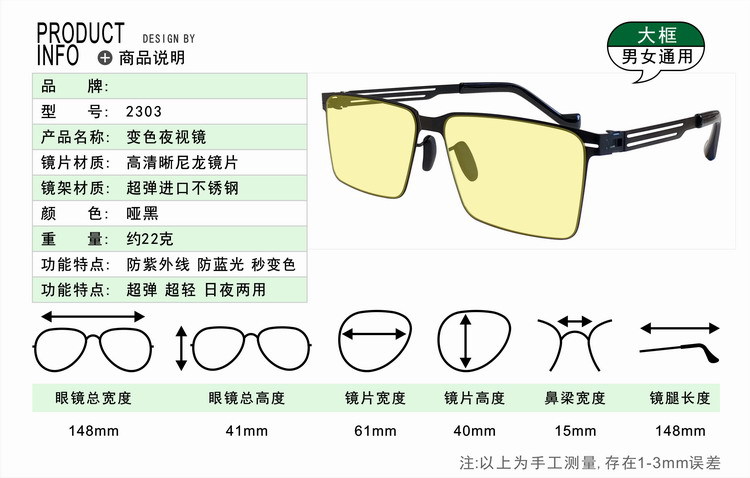 超弹超轻日夜两用夜视防蓝光太阳镜