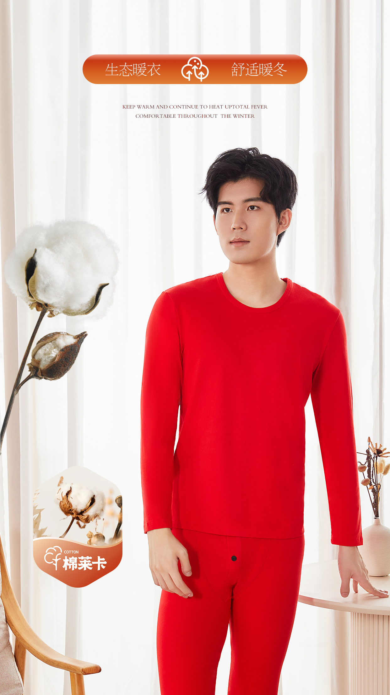 男士女士冬季保暖衣新年红打底衣莱卡棉保暖套装【FL25627/FF25827】