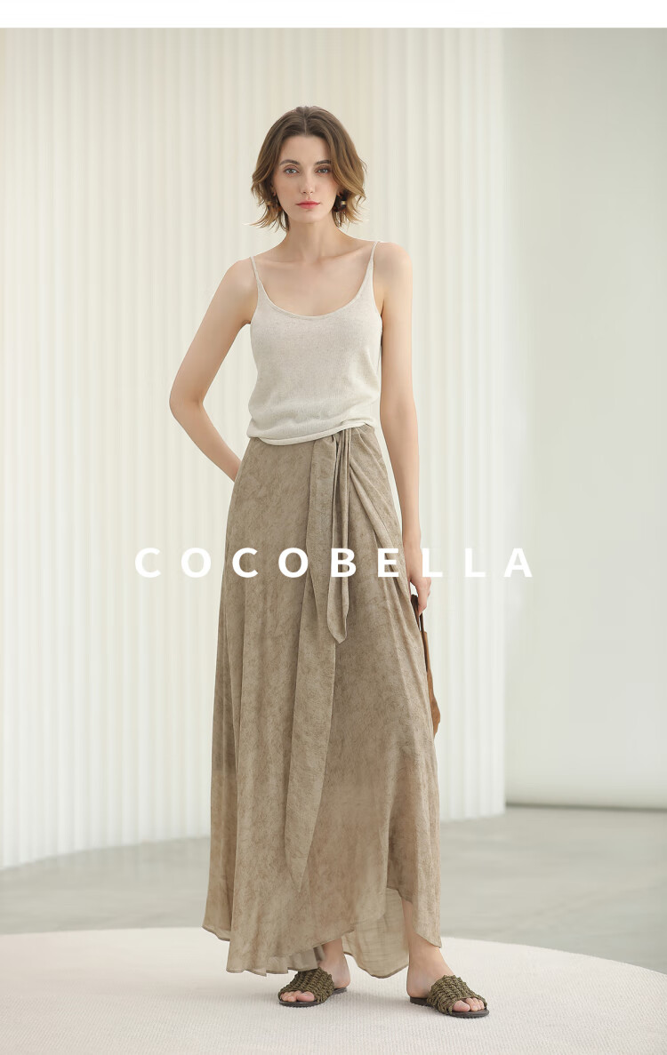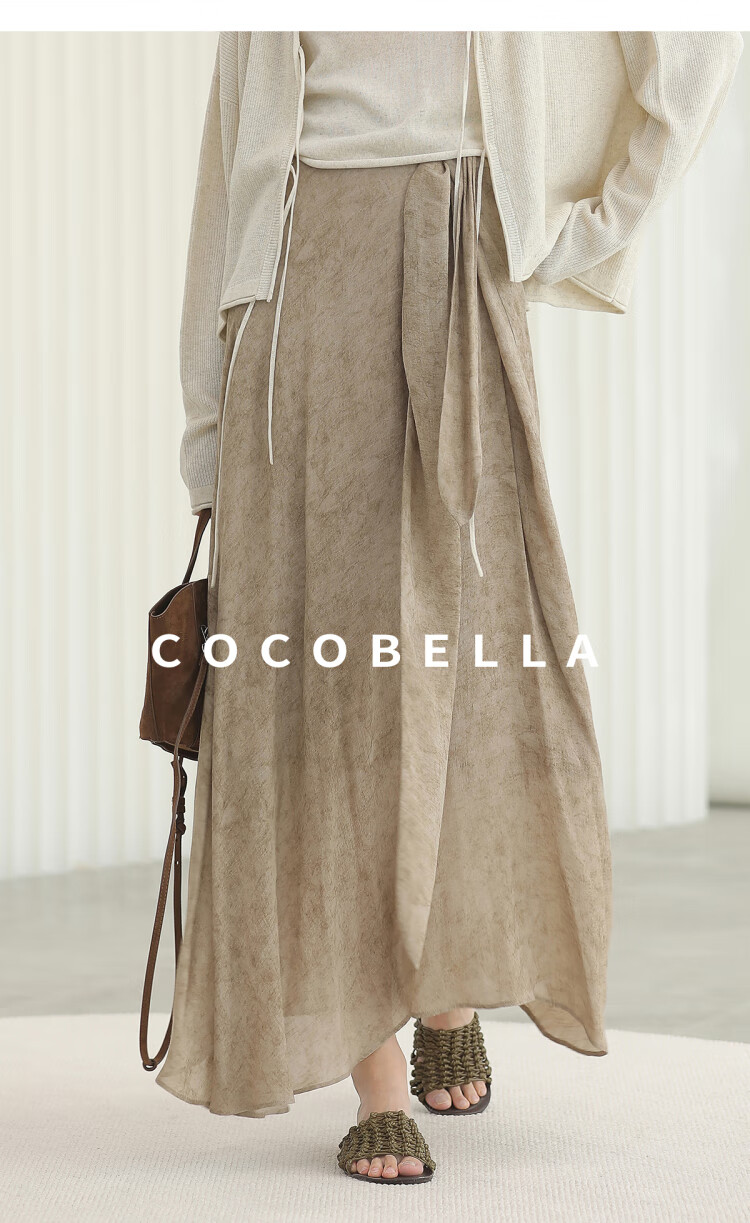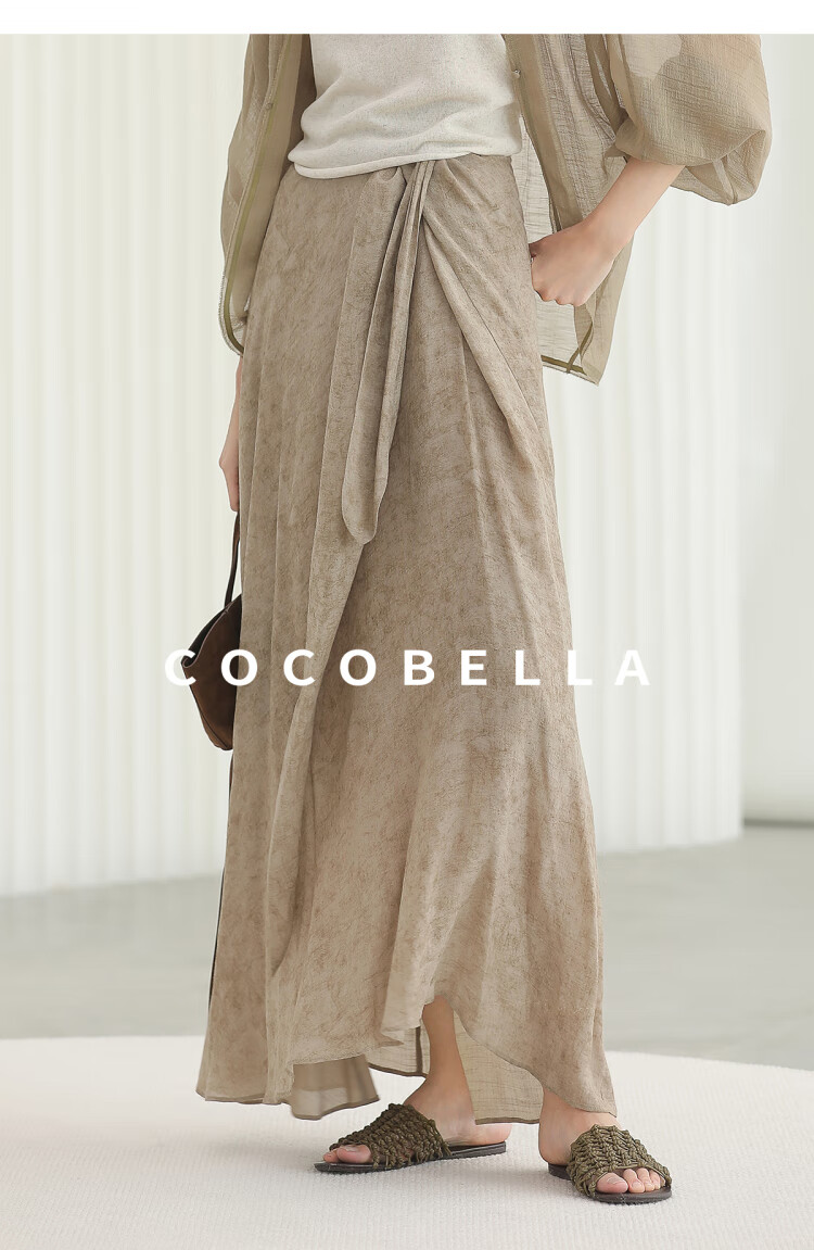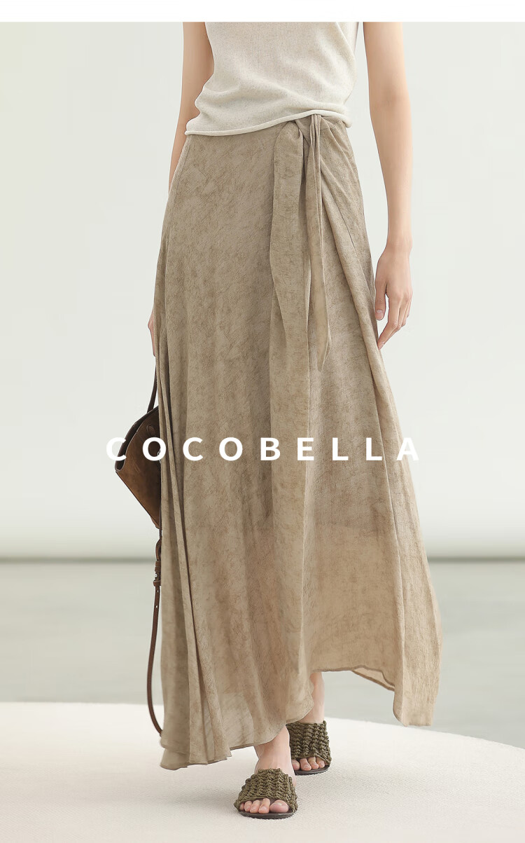 COCOBELLA新国风古法染色半身裙25夏不规则绑带长裙HS3031