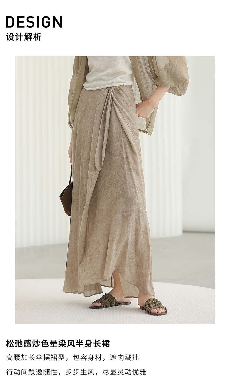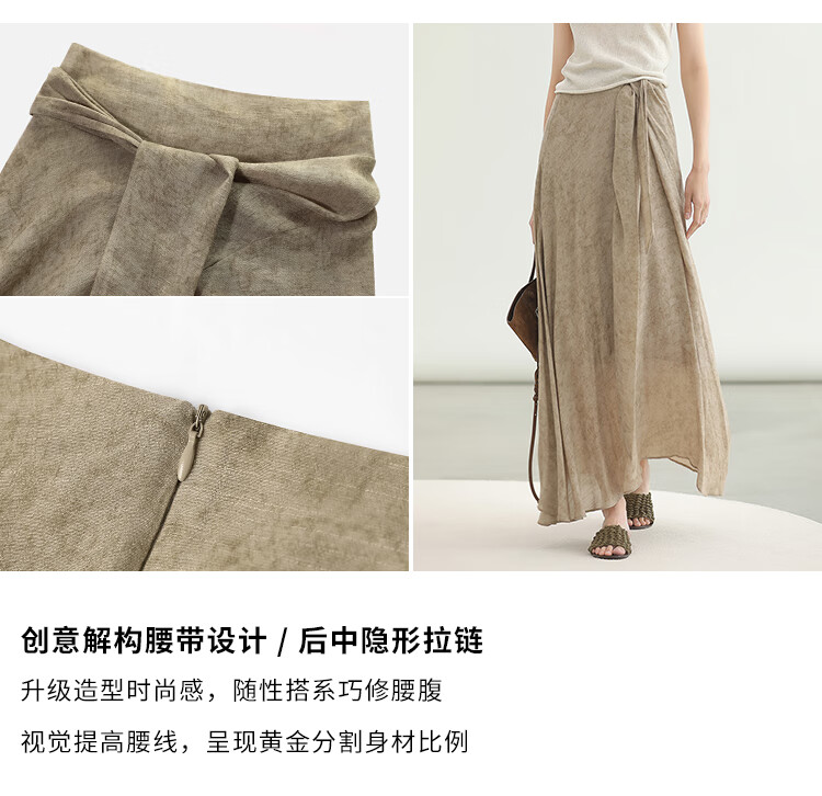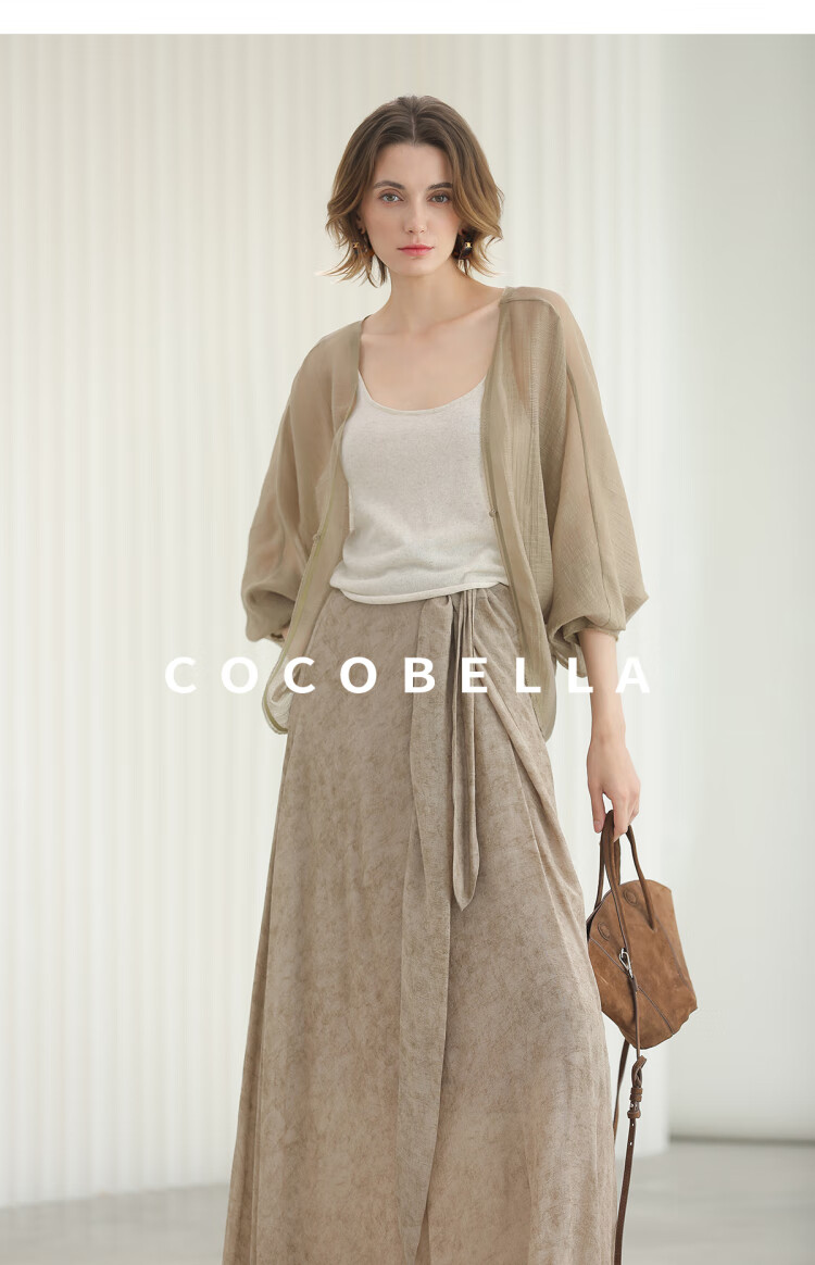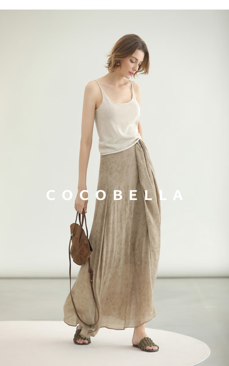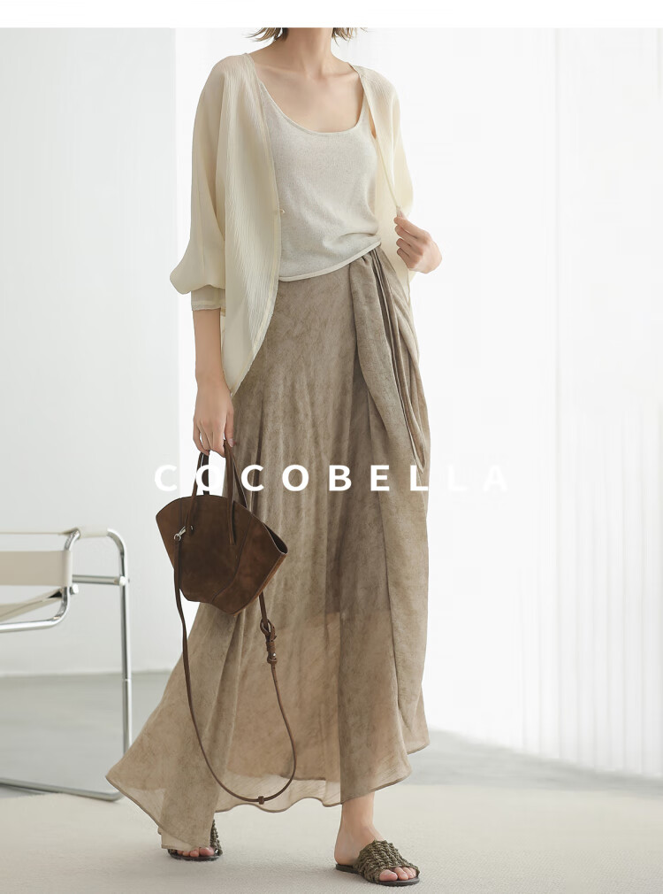 COCOBELLA新国风古法染色半身裙25夏不规则绑带长裙HS3031