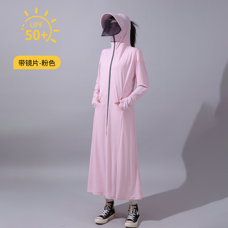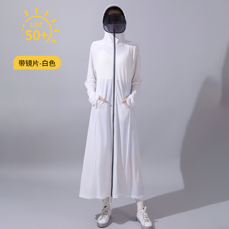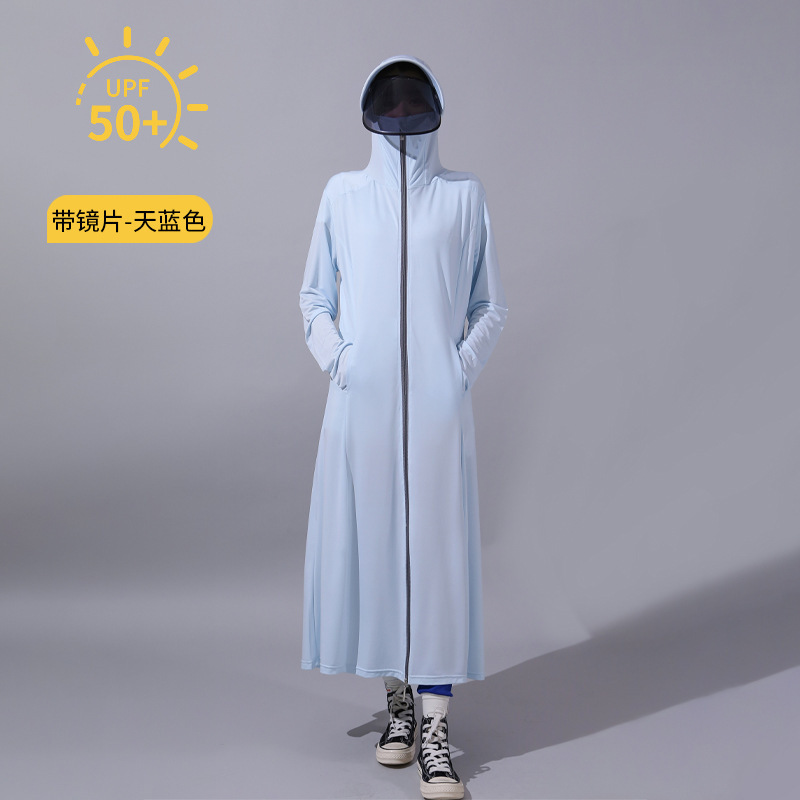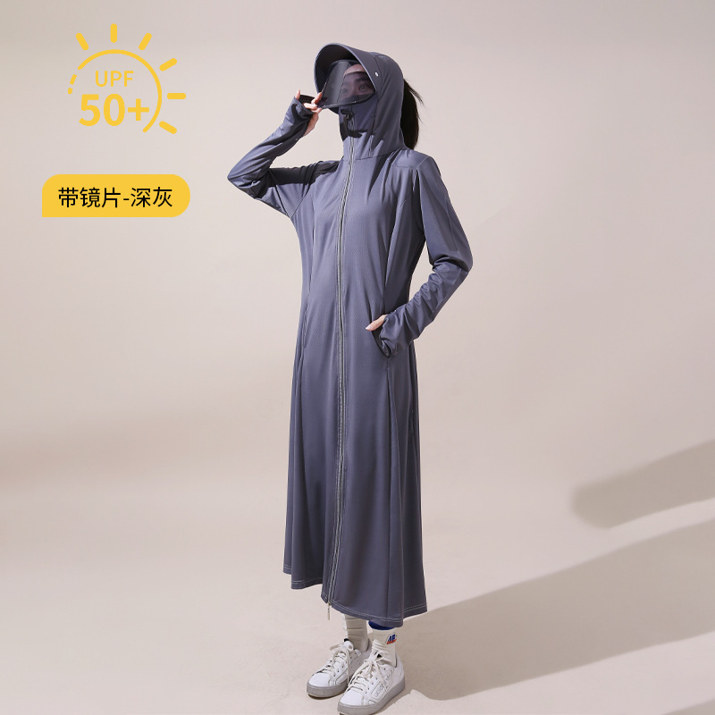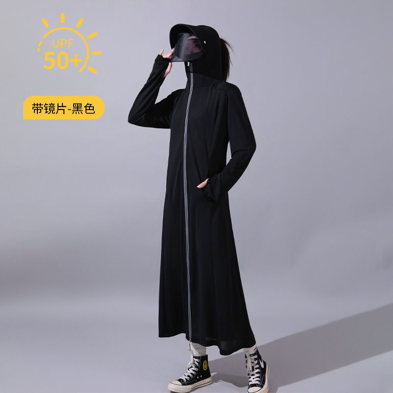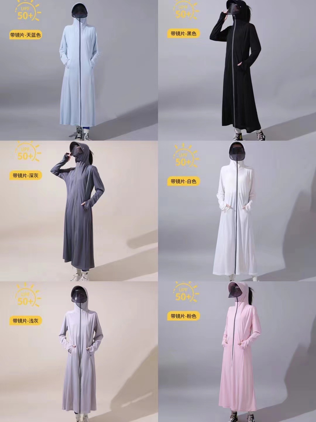 【长款防晒衣女!轻薄透气】防晒必备,户外运动不可少!可外穿,多色可选;全身防紫外线,加大镜片帽檐全方位防晒!更有透气舒适薄款冰丝防晒服,超舒适更自在!