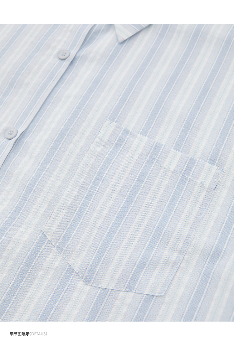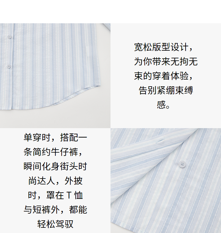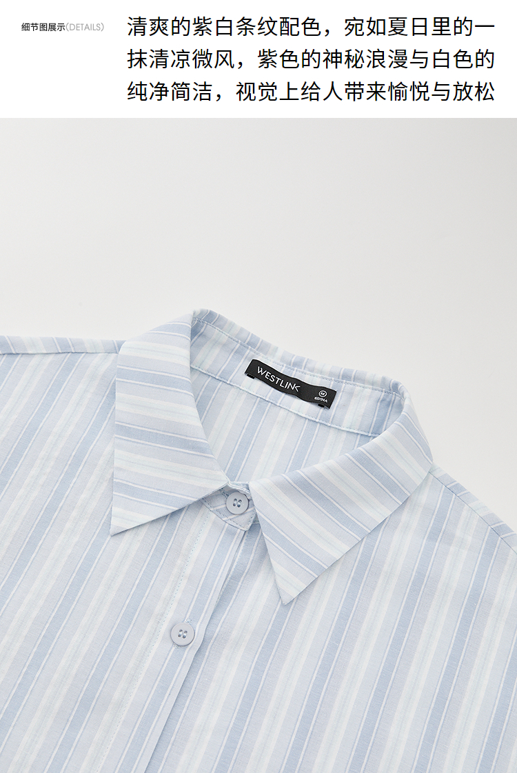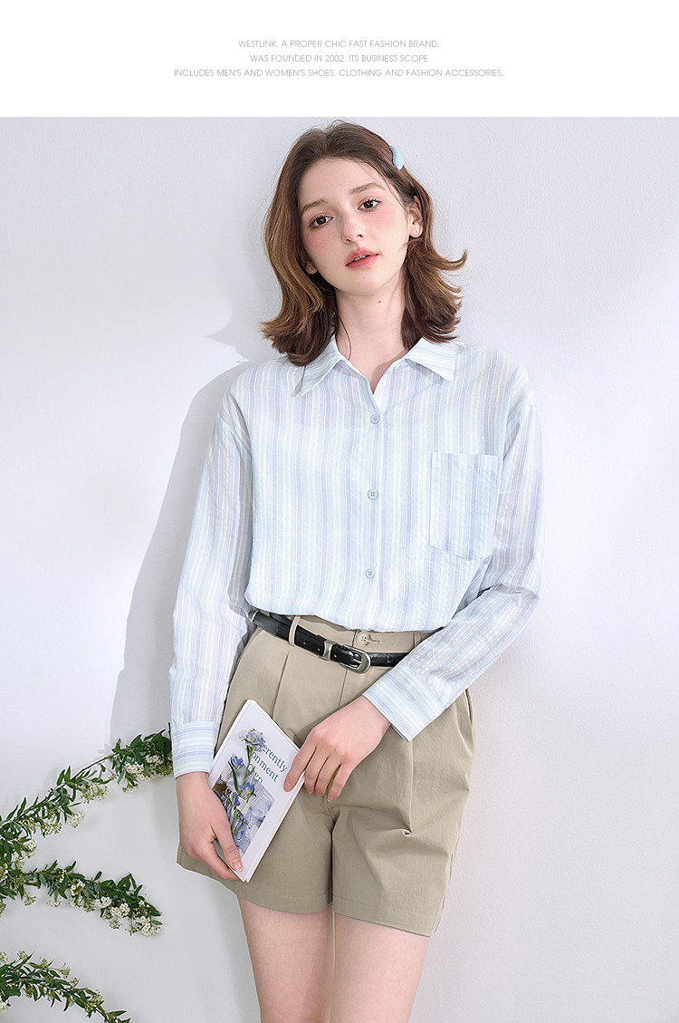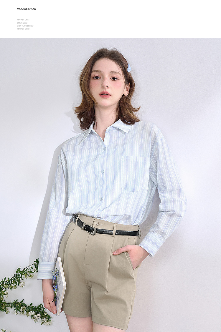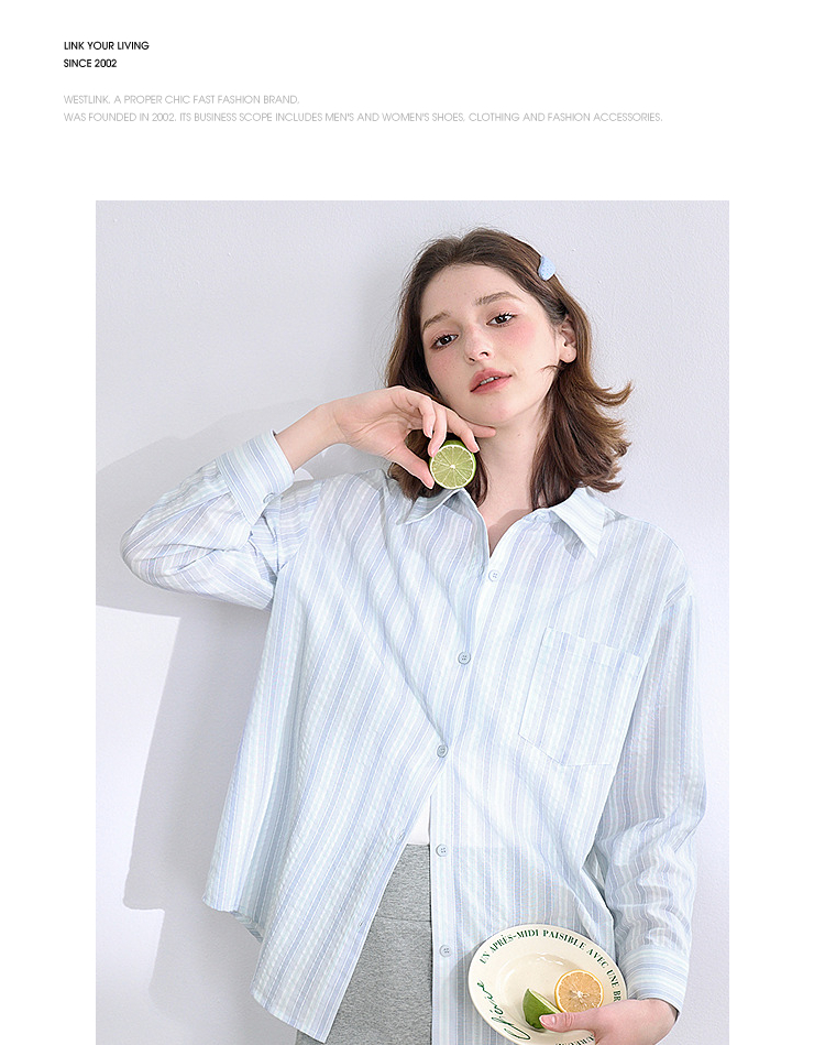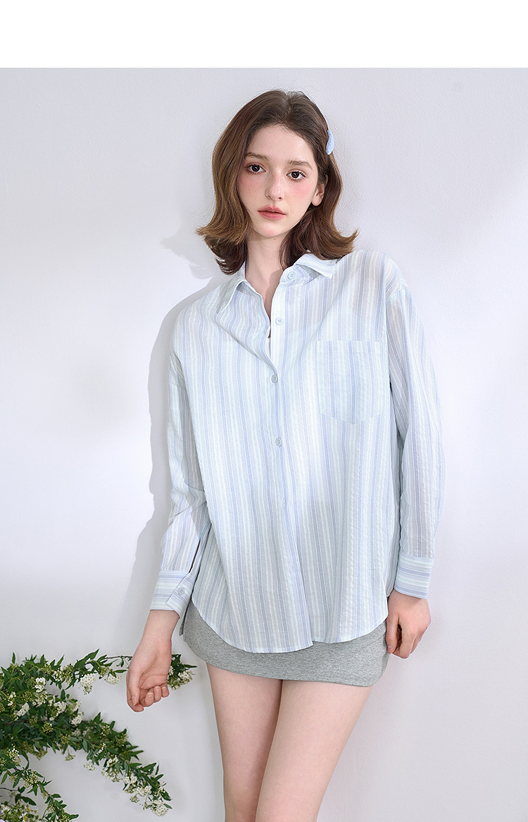 文艺感清爽撞色条纹长袖衬衫女2025春夏慵懒随性宽松衬衣V0850600
