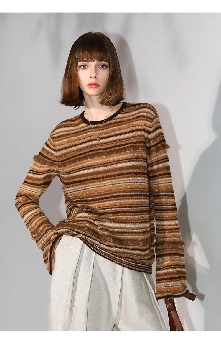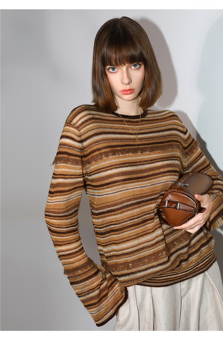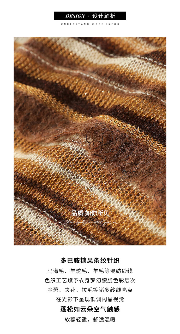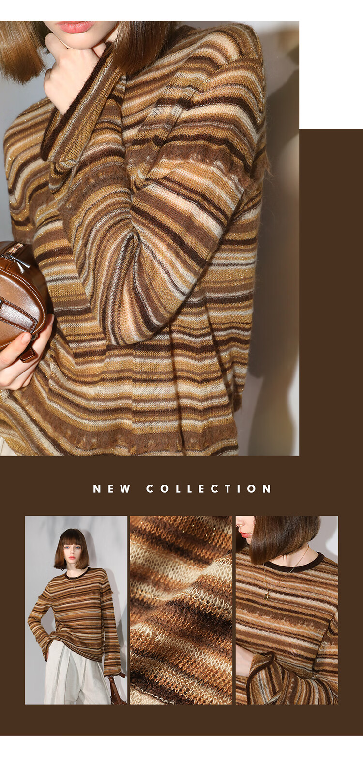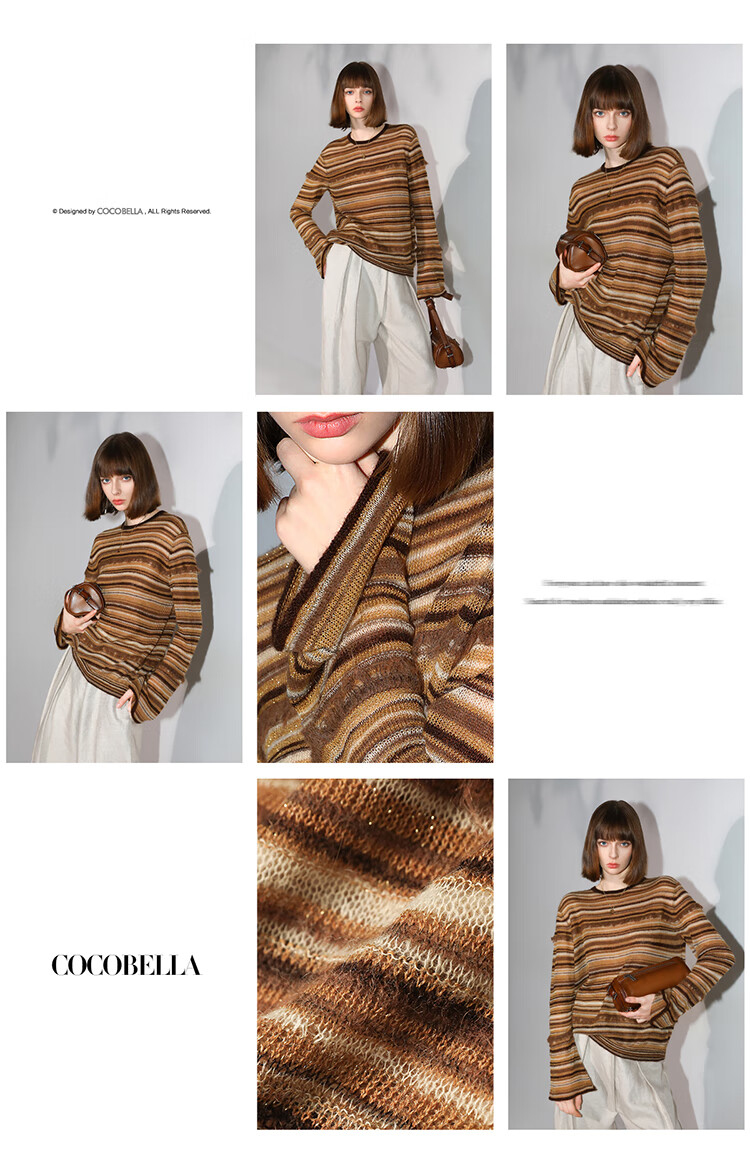 COCOBELLA金线提花羊毛马海毛针织衫女美拉德条纹毛衣MZ7042