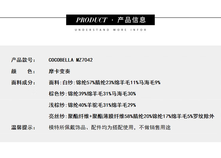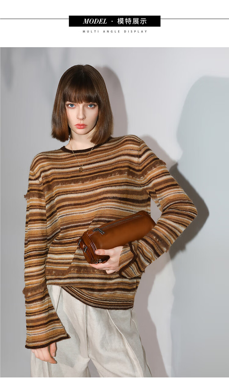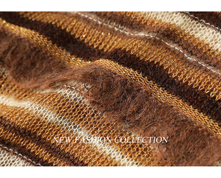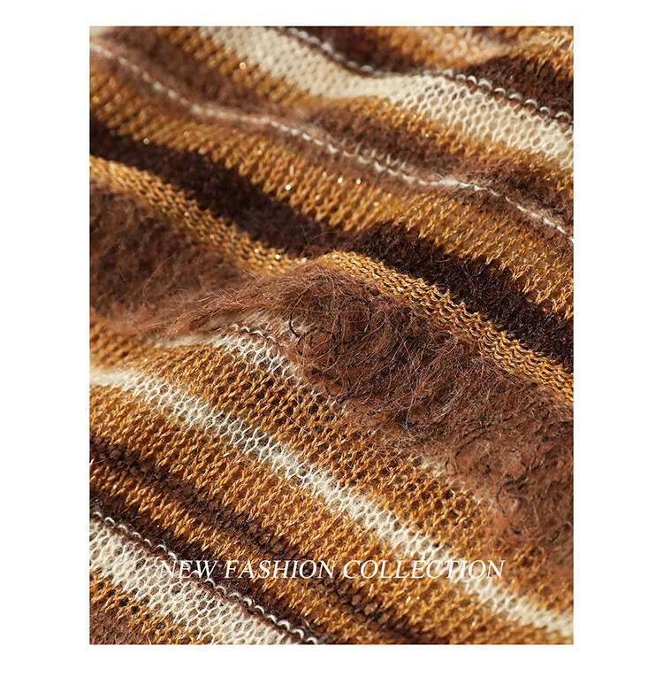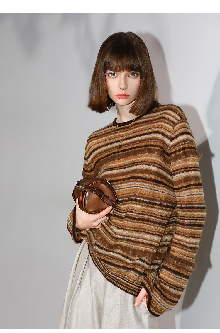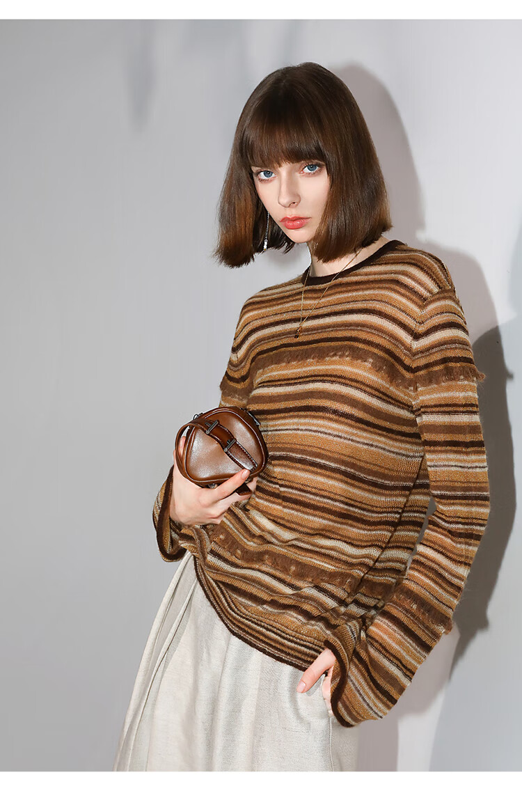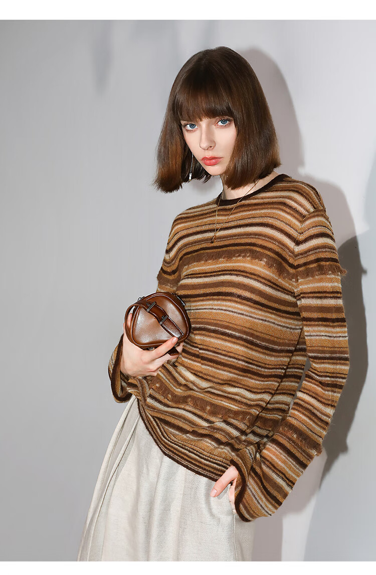 COCOBELLA金线提花羊毛马海毛针织衫女美拉德条纹毛衣MZ7042