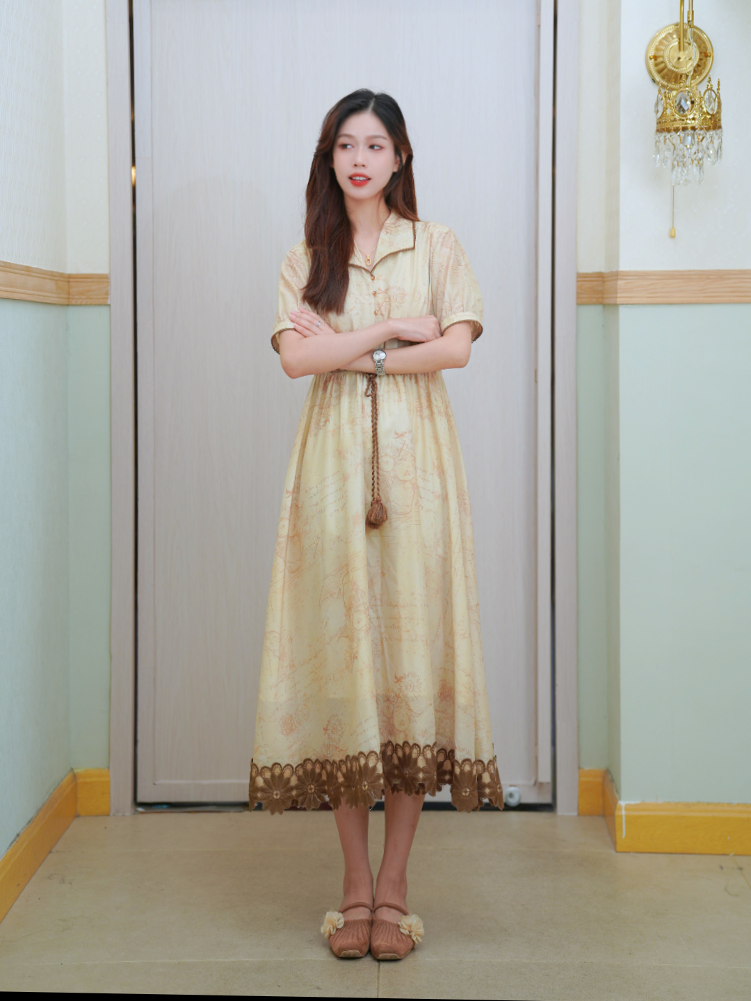 两三事 浮花掠影 春夏新款气质复古中式极简风女装连衣裙开春洋气