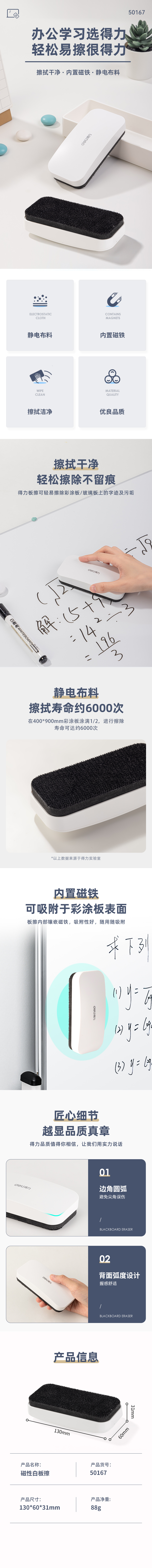 得力50167磁性白板擦130*60mm(白色)(块)