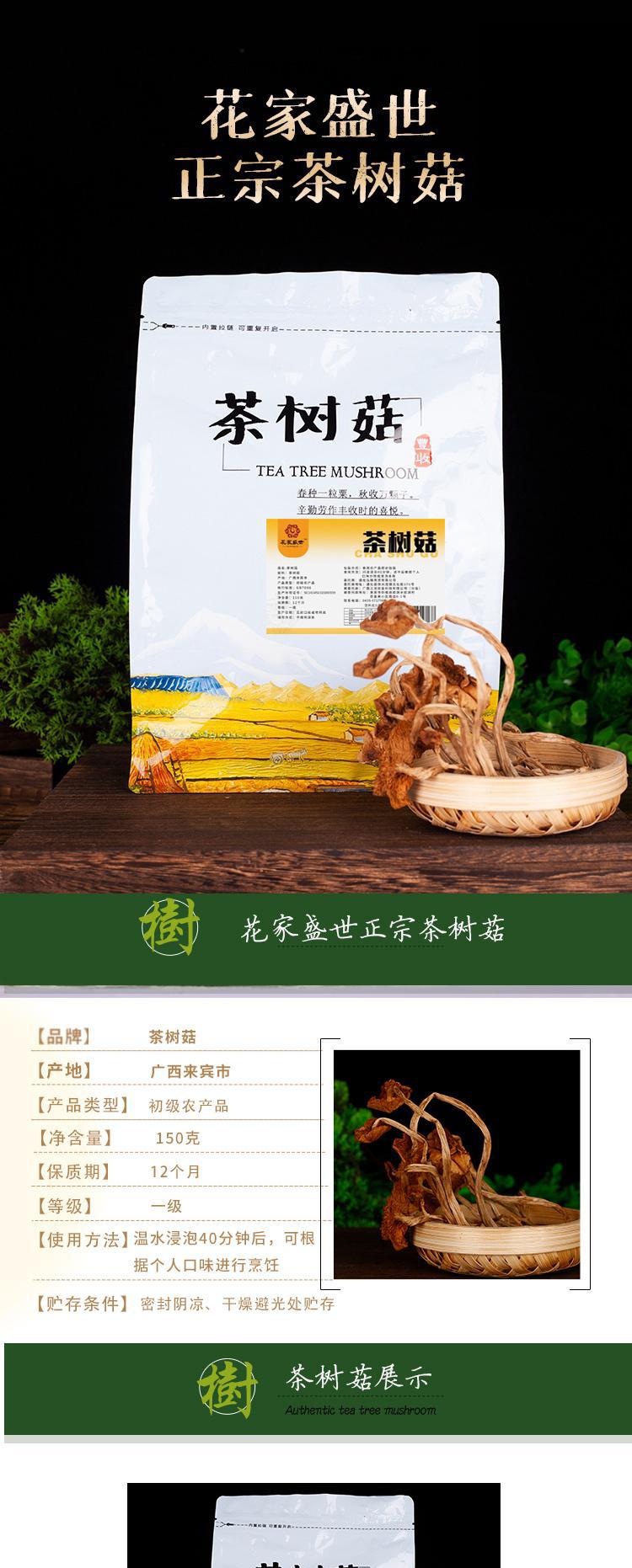 花家盛世 茶树菇150g/袋绿茶红茶新鲜健康美味 HJSSGH001
