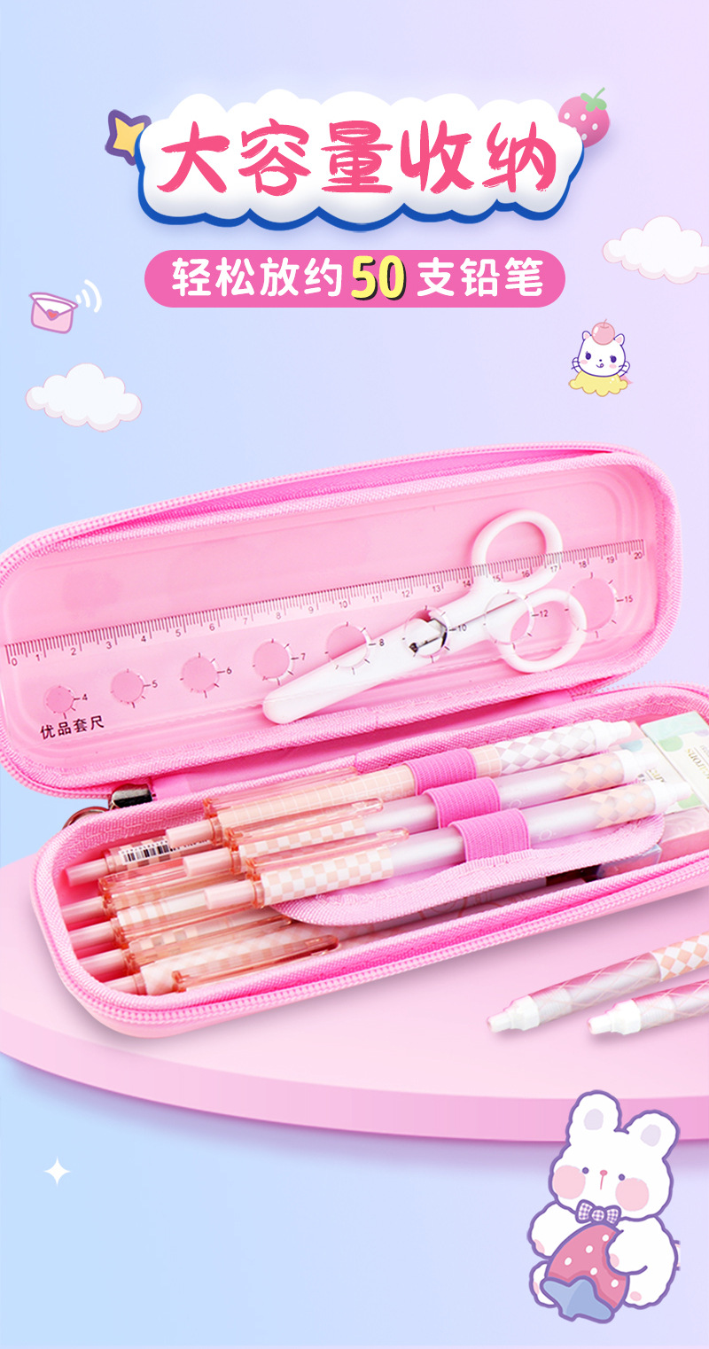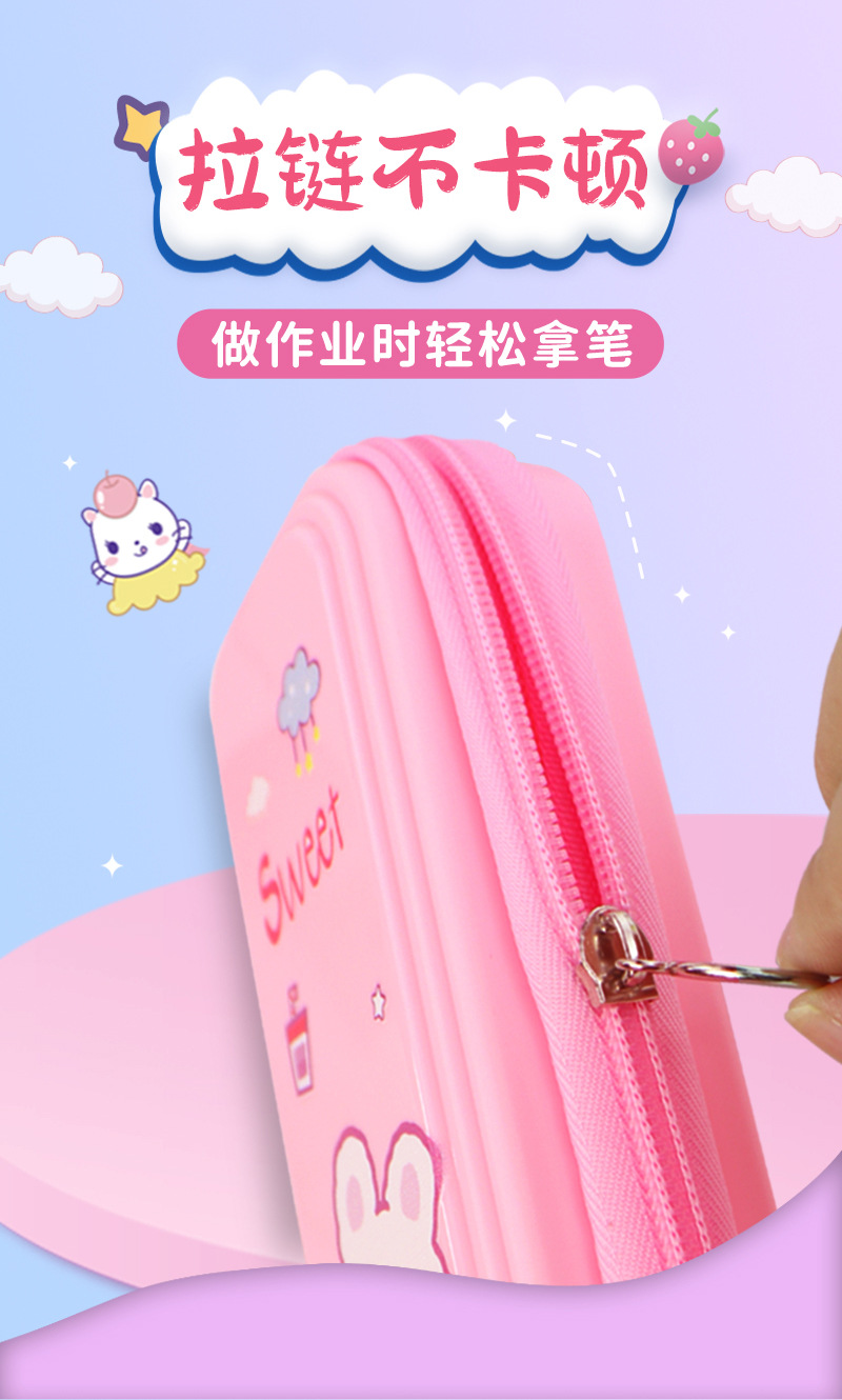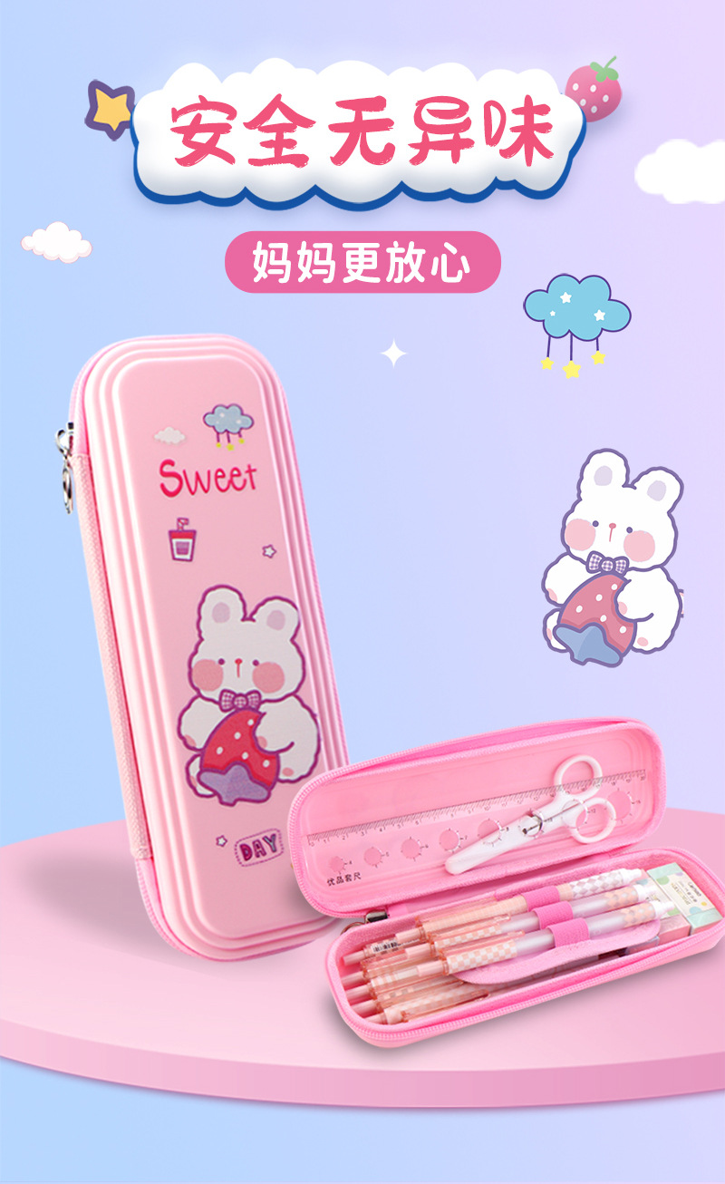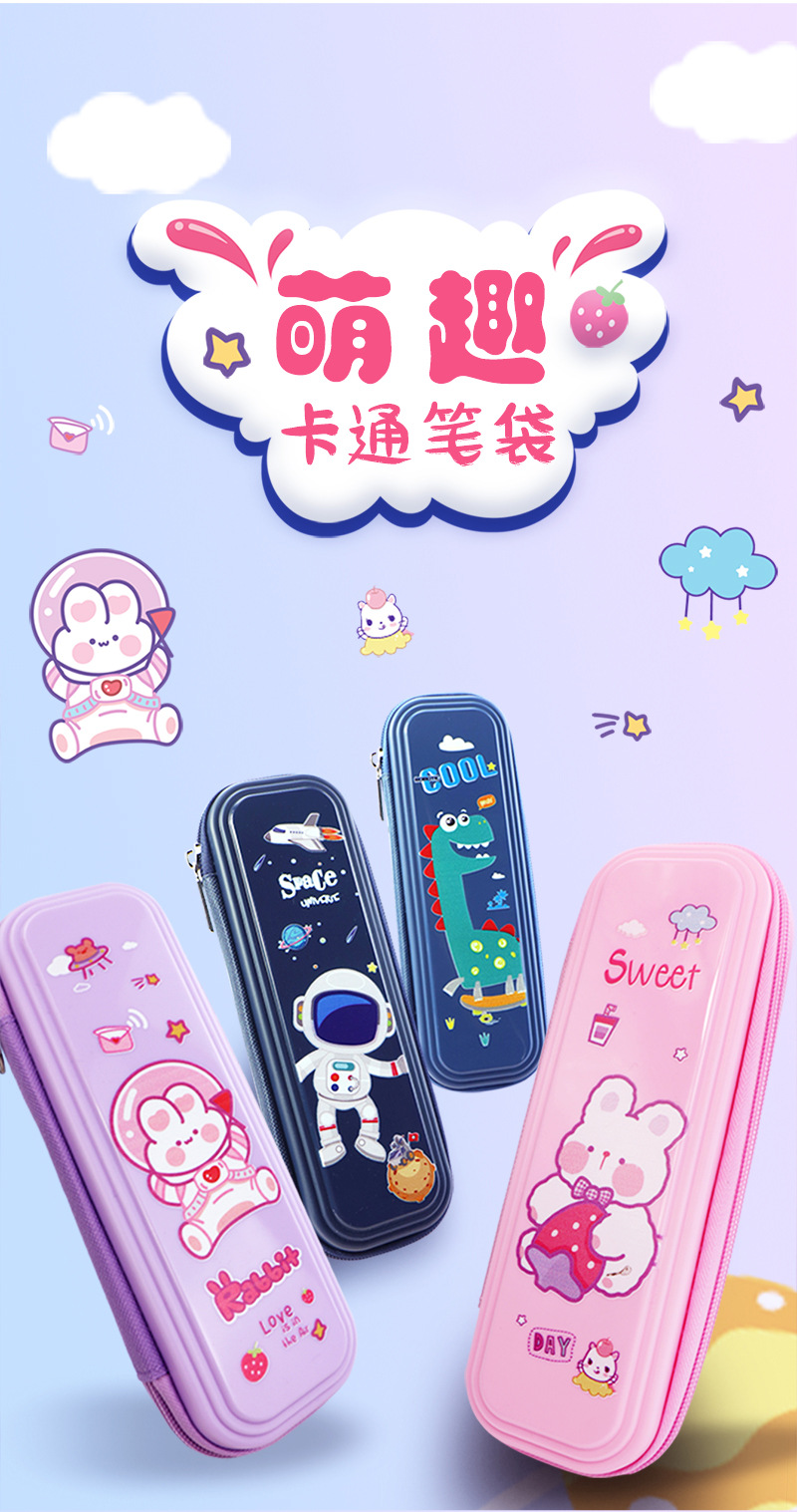 【开学季!萌趣卡通笔袋】儿童卡通文具盒大容量防水笔袋多功能小学生双层塑料铅笔盒,分层设计,文具收纳整洁不凌乱。ry