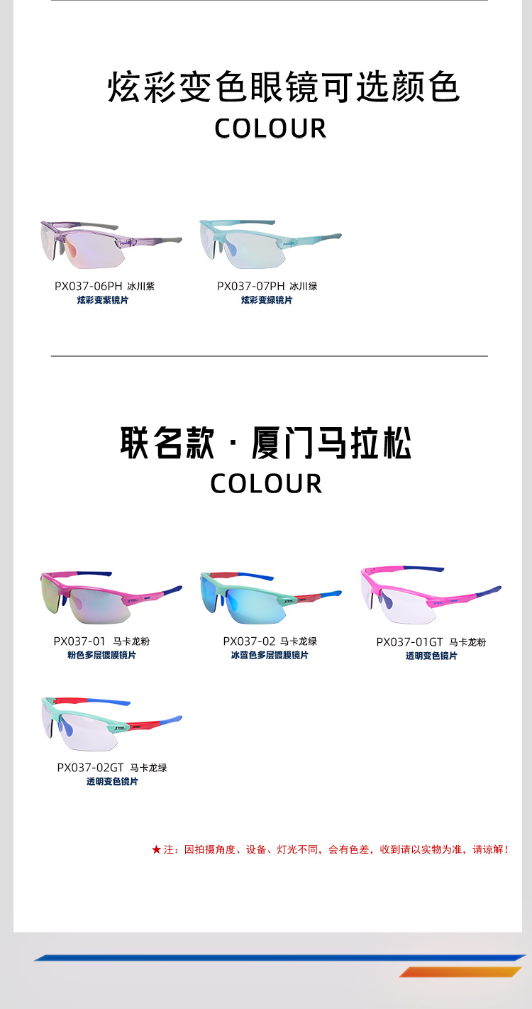 博铌斯联名专业马拉松眼镜护目高清防紫外线变色超轻全马跑步眼镜