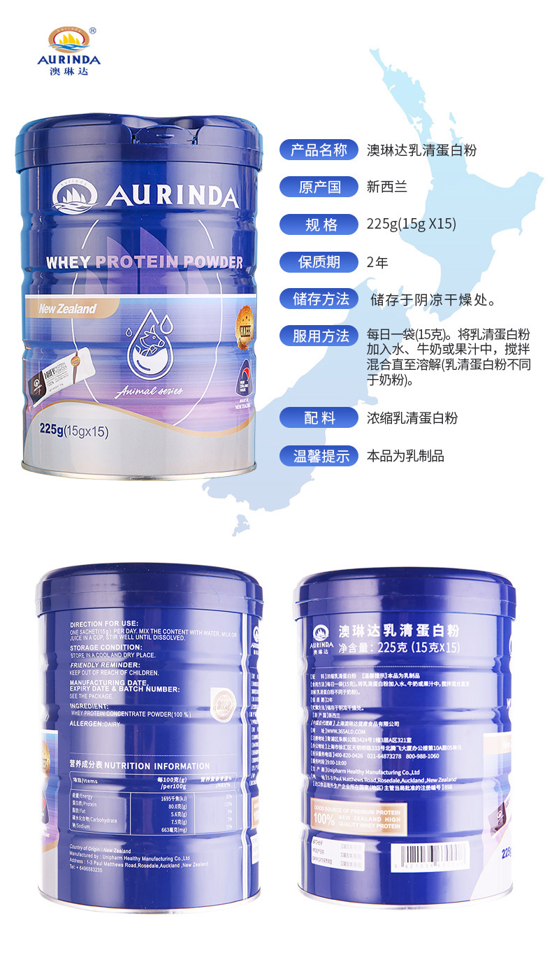 澳琳达澳洲进口蛋白质粉成人补充乳清蛋白大豆蛋白官方旗舰店正品225g