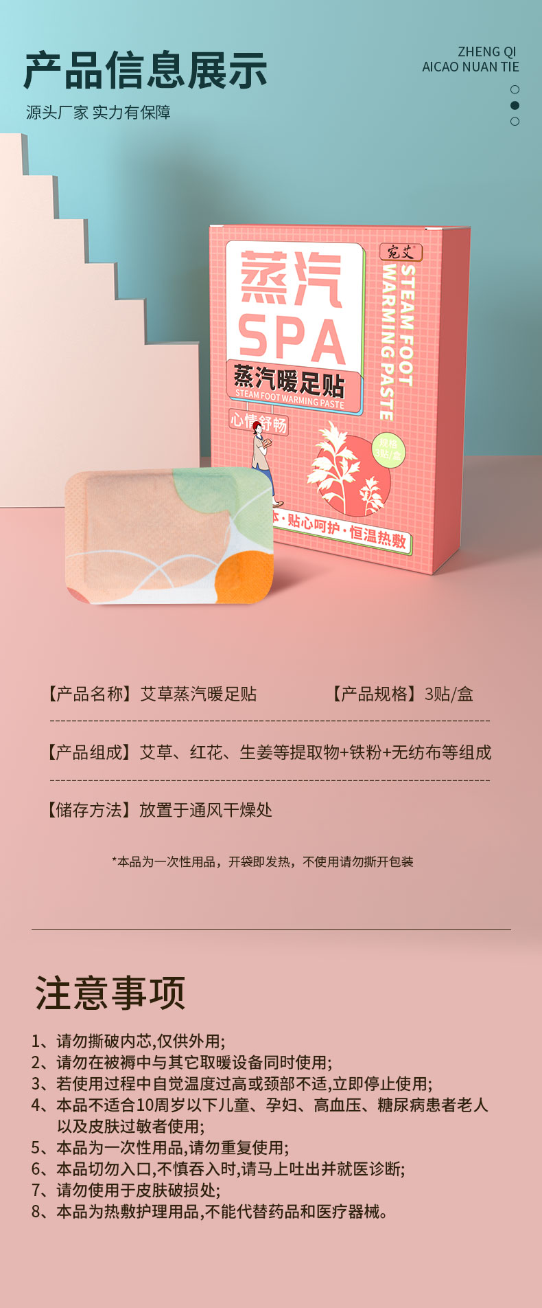 暖足贴艾草蒸汽足贴 家用脚底自发热艾灸贴 脚部热敷贴暖身温灸贴