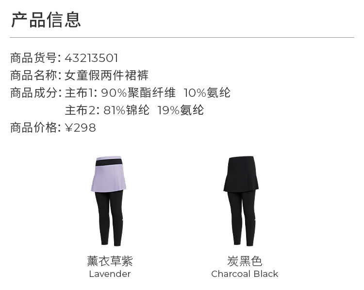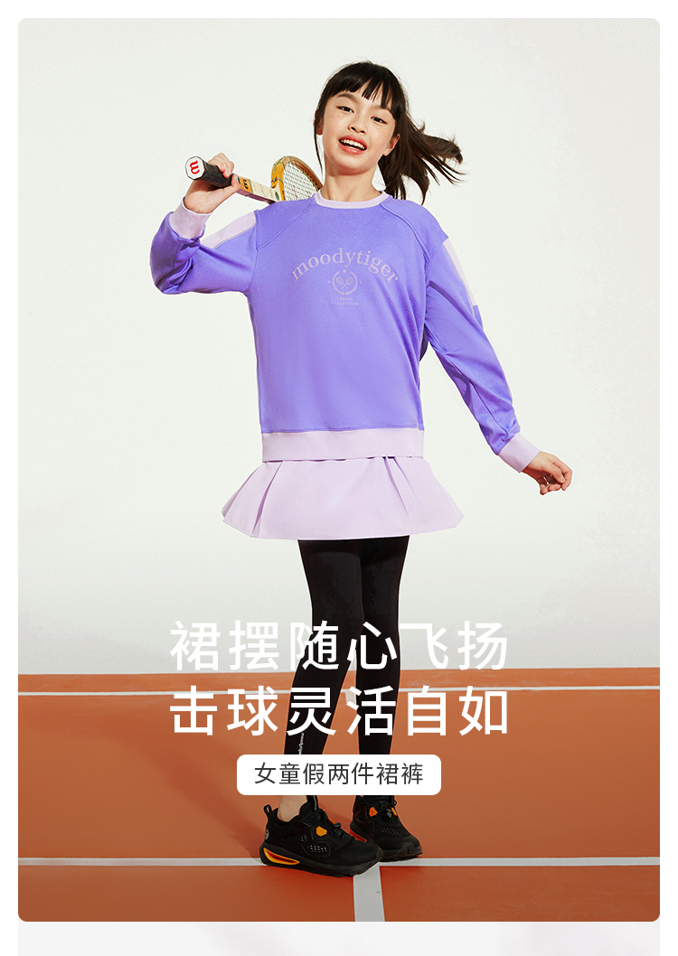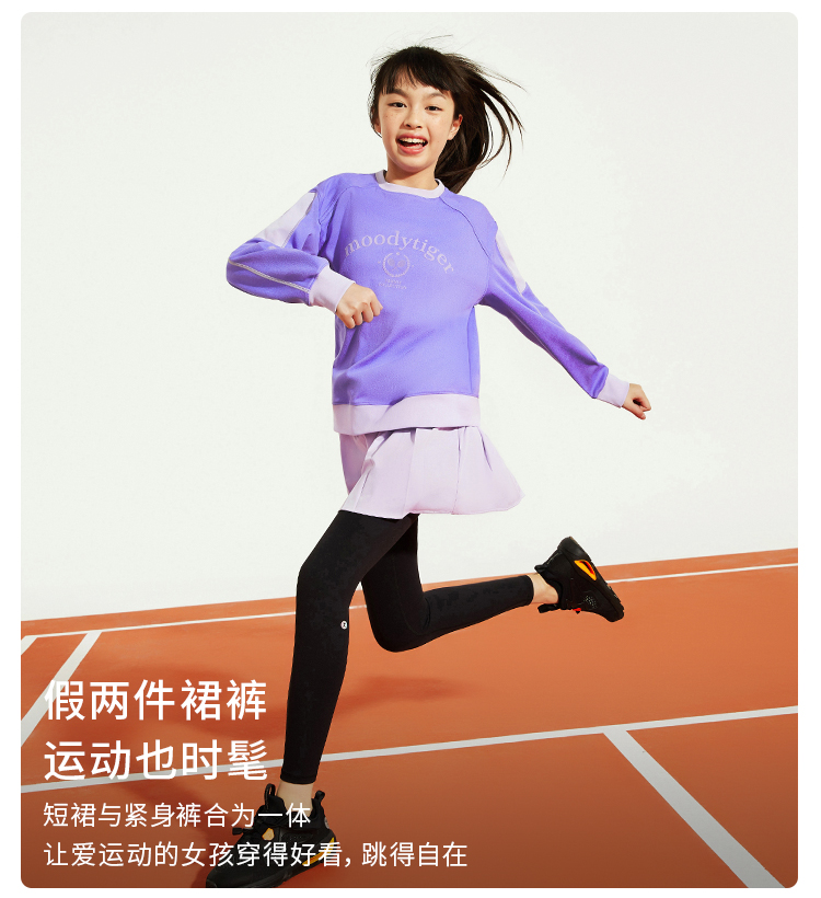 【24年秋新】【网球系列】moodytiger女童假两件裙裤24秋新款弹力运动裤43213501
