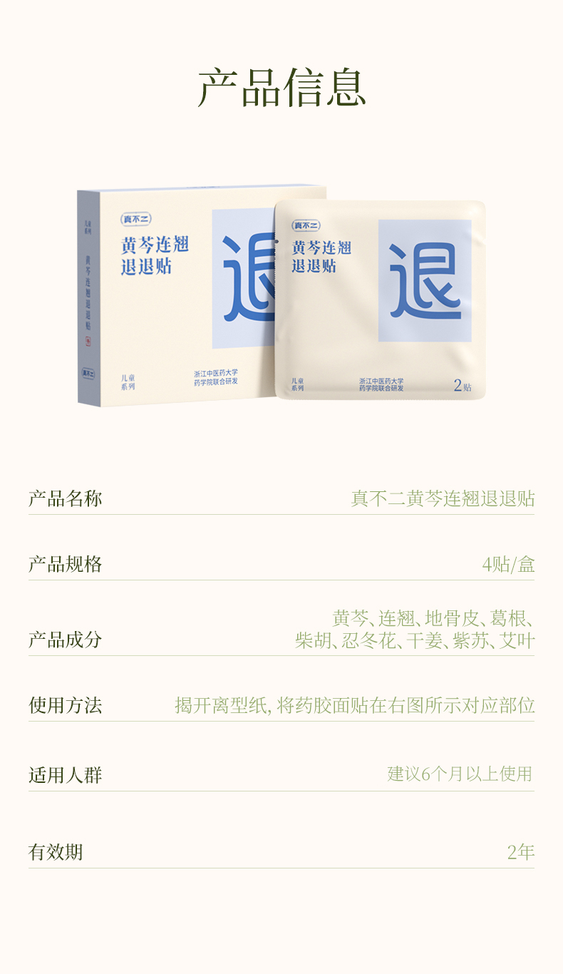 【真不二】黄芩连翘退退贴儿童成人贴清热燥湿疏散风热 4贴/盒(6个月及以上可用)