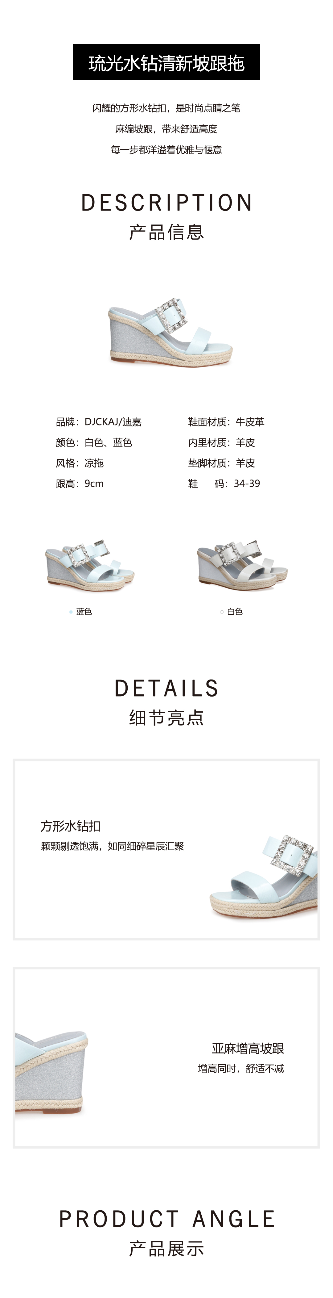豪麟名鞋奥莱迪嘉女鞋凉拖牛皮革DJYYA51WL006白色 原价1660元