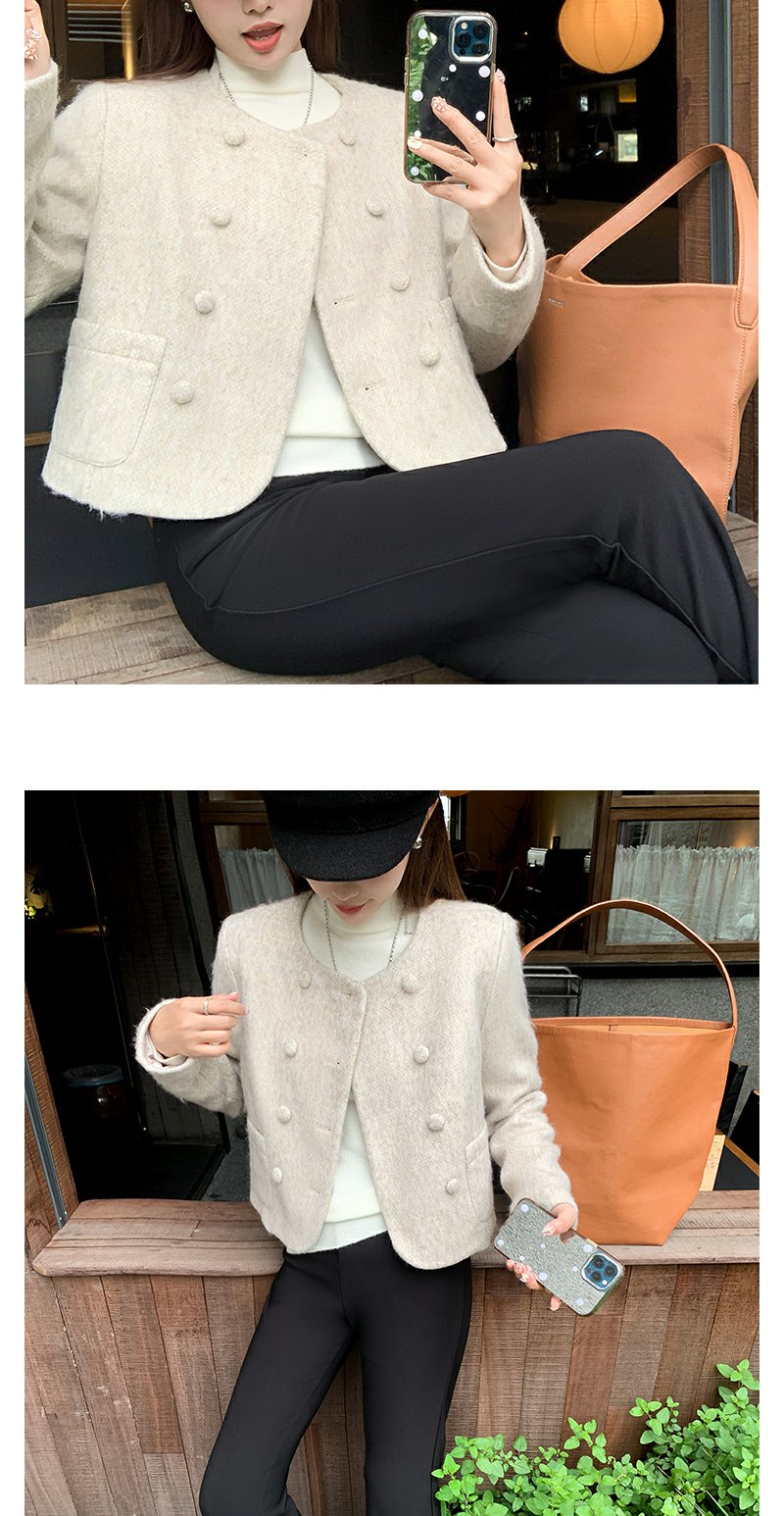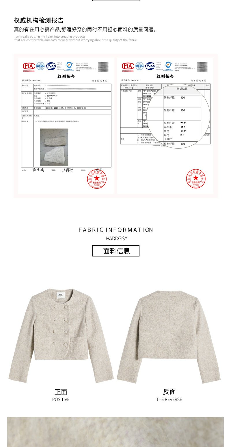 【269元任选2件】现货!成本巨贵,拍下包赚!绵羊毛双排扣燕麦色毛呢短款外套
