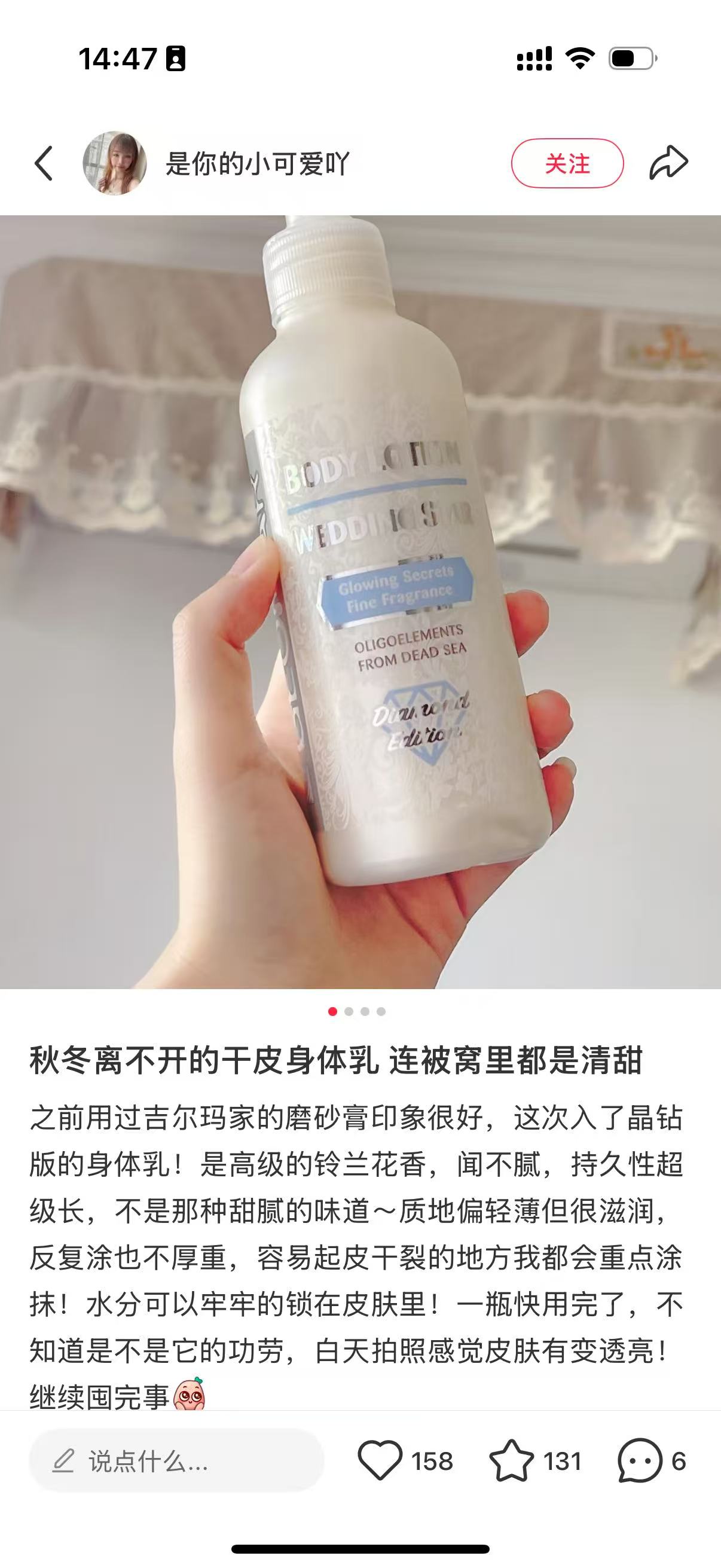 【品名】吉儿玛璀璨新娘焕肤身体乳250ml晶钻版/蜜桃清香